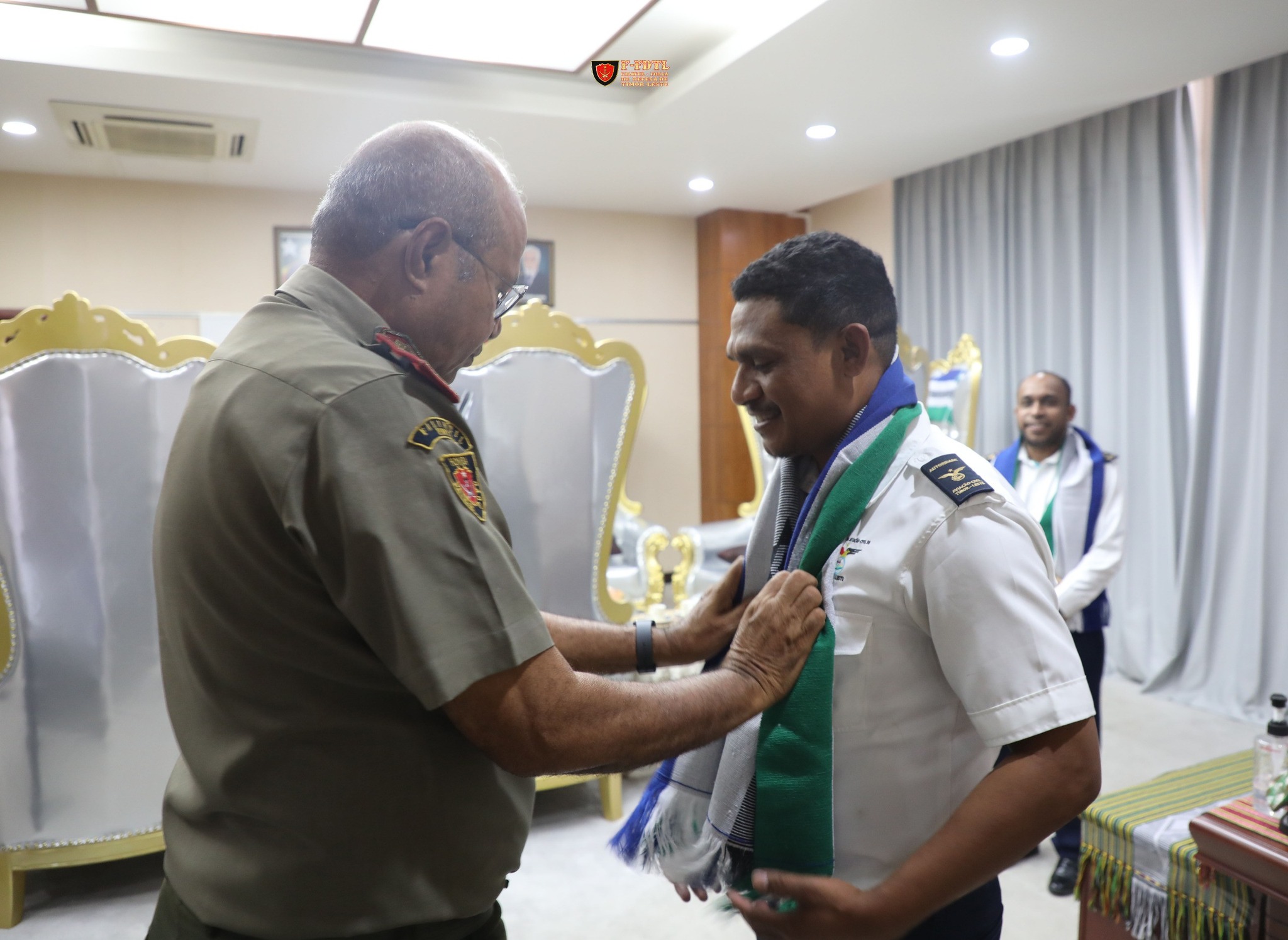 The Chief of the General Staff of the FALINTIL (Timor-Leste Defense Force), Lieutenant General Domingos Raúl "Falur Rate Laek," received a visit from the Technical Director of the ACCTL.IP, Cornelio Vasconselhos, of the Civil Aviation Authority of Timor-Leste (AACTL), at the General Headquarters in Fatuhada.