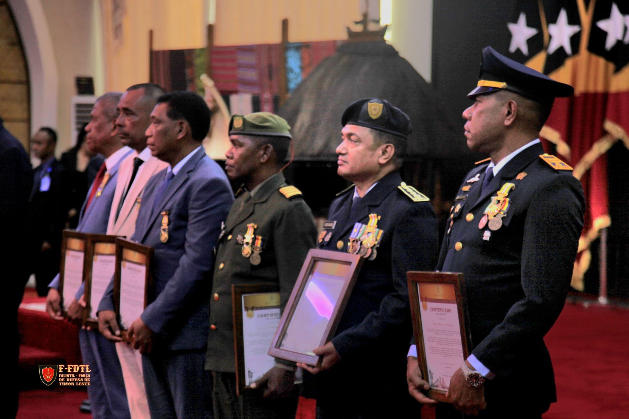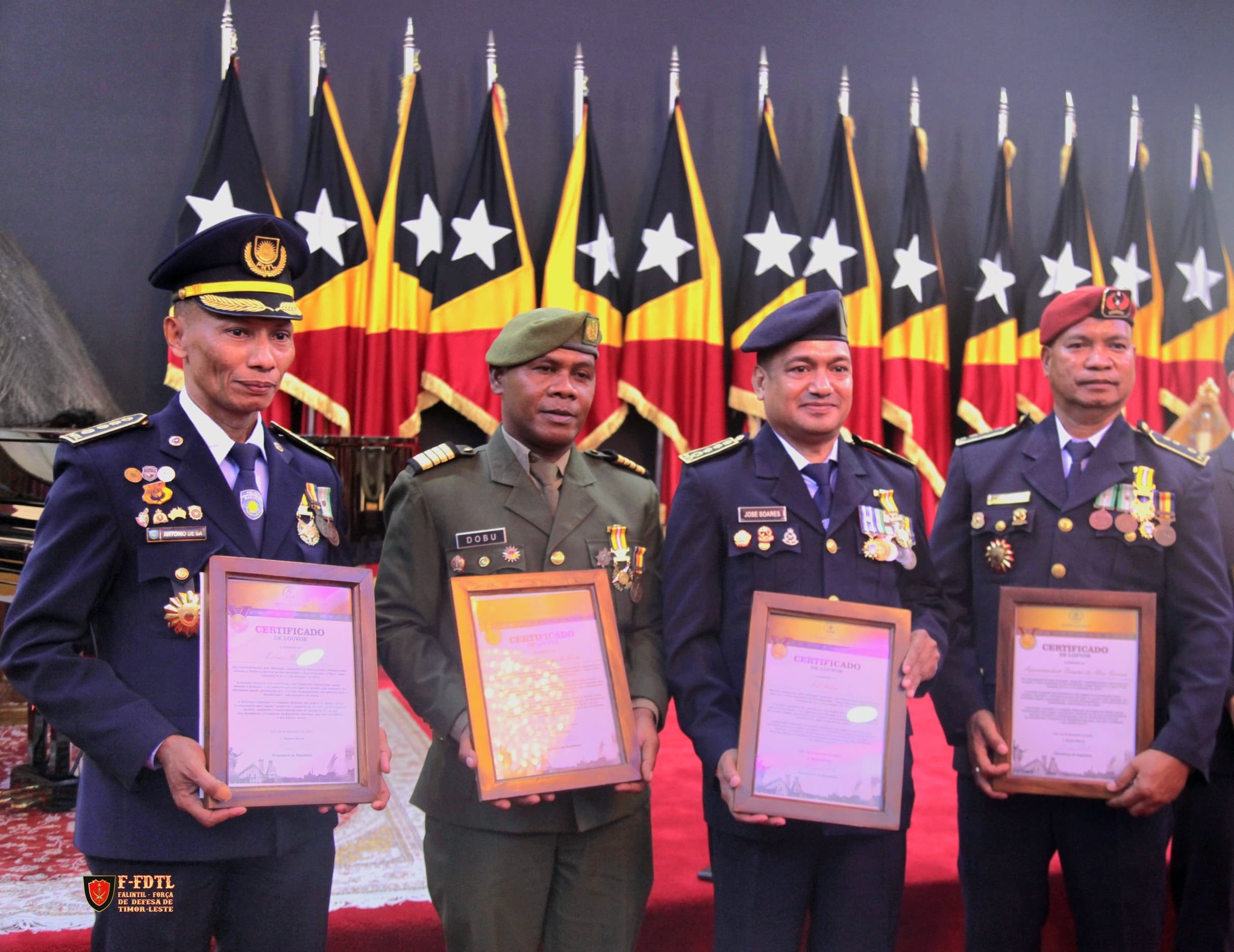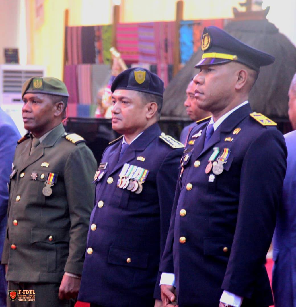 Special Operations Colonel Domingos da Costa Soares "DOBU", current Commander of the Ground Forces Component. Along with members of the 9th Government, members of the PNTL, including some religious leaders, received the Medal of the Order of Timor-Leste from the President of the Republic, Dr. J. Ramos Horta, at the Aitarak Laran Presidential Palace in Dili.