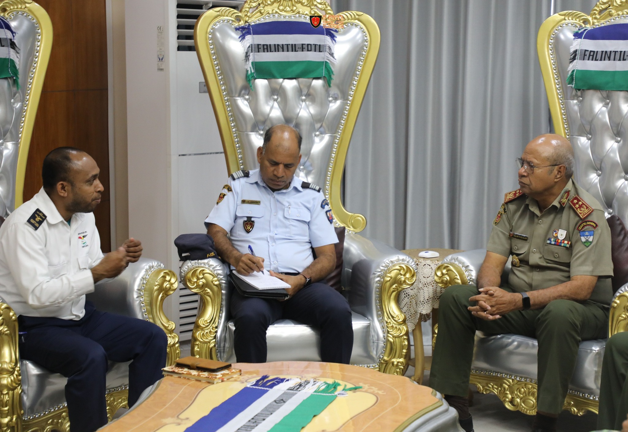 O Chefe do Estado-Maior General das FALINTIL-Força de Defesa de Timor-Leste (F-FDTL), Tenente-General Domingos Raúl "Falur Rate Laek", recebeu a visita do Vogal Técnico da ACCTL.IP, Cornelio Vasconselhos, da Autoridade de Aviação Civil de Timor-Leste (AACTL), no Quartel-General em Fatuhada.
