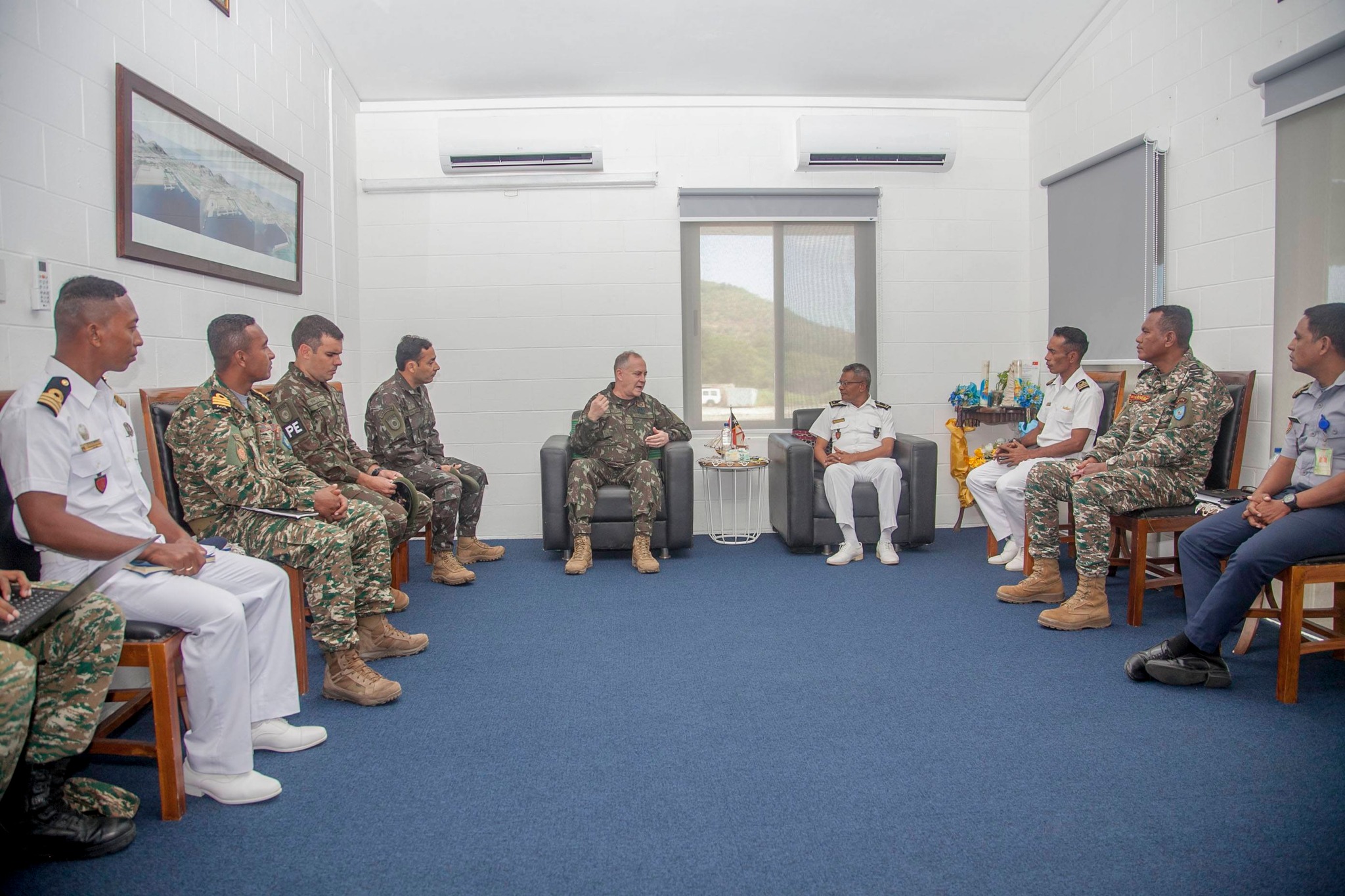 Comandante Componente Forsa Naval Comodoro Higino das Neves “SUPER - MAN” hamutuk ho Estrutura simu Vizita husi Adido Defeza Coronel Alexandre Polo no Delegasaun, iha Baze Naval Hera.