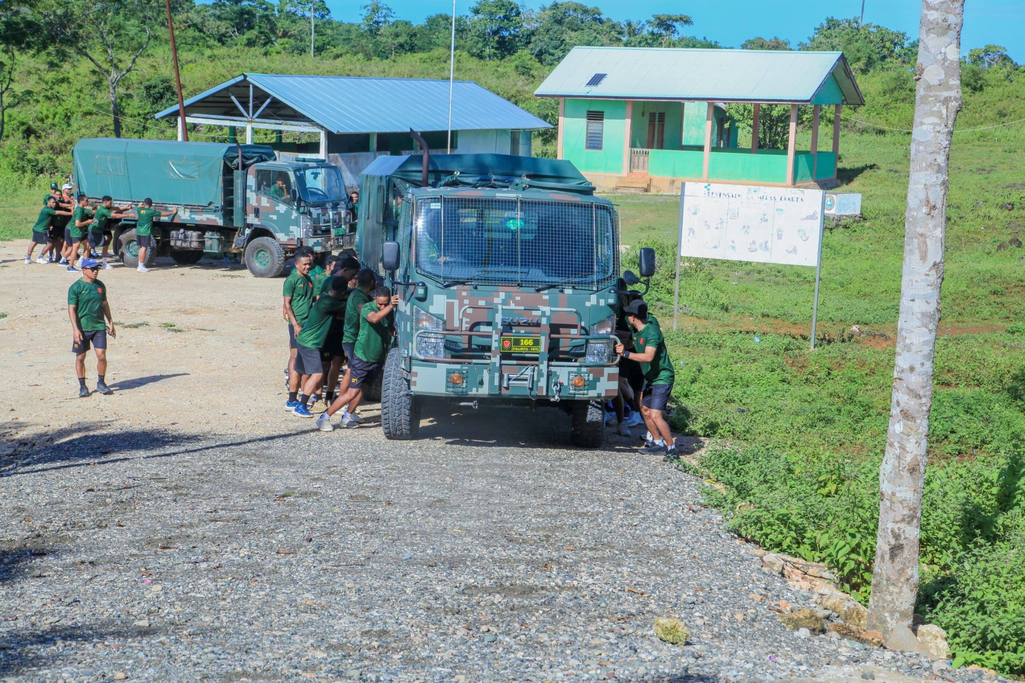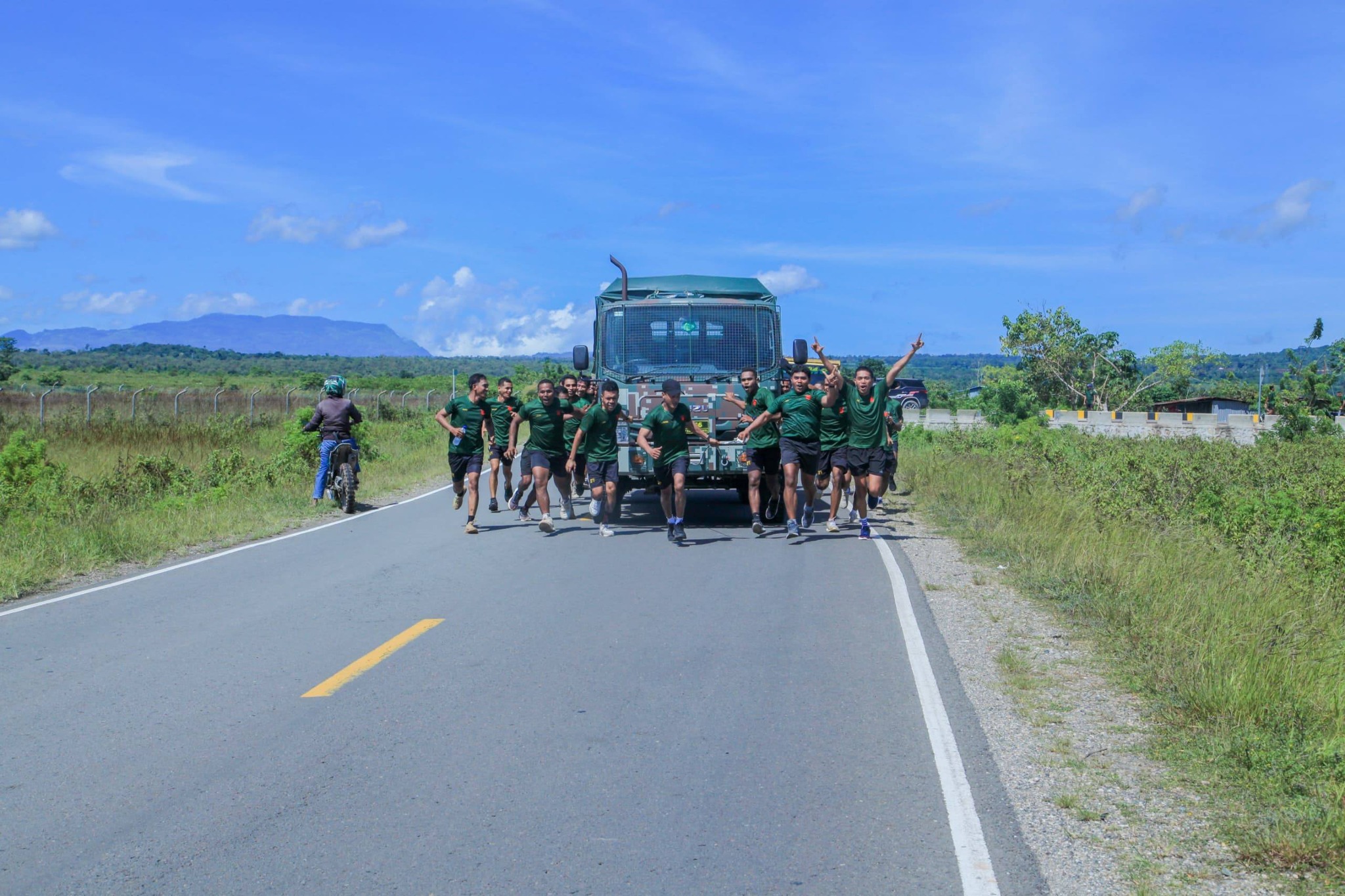 (𝐌𝐞𝐝𝐢𝐚 𝐂𝐓) Sabadu semana ida ne'e, militar F-FDTL husi Componente Terrestre (CT) hahu husi ofisiais to prasa, halo ezerisiu fiziku ,dudu kareta kamioneta ho kilo metru 6 km husi Kaisidu to baze CT Lanud Baucau.