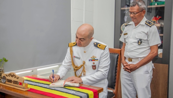 Comandante Componente Naval Comodoro Higino Das Neves “Super - Man” hamutuk ho estrutura simu visita husi Adido Defeza Turki Capitão ILKER BASMAZ, iha Baze Naval Hera.