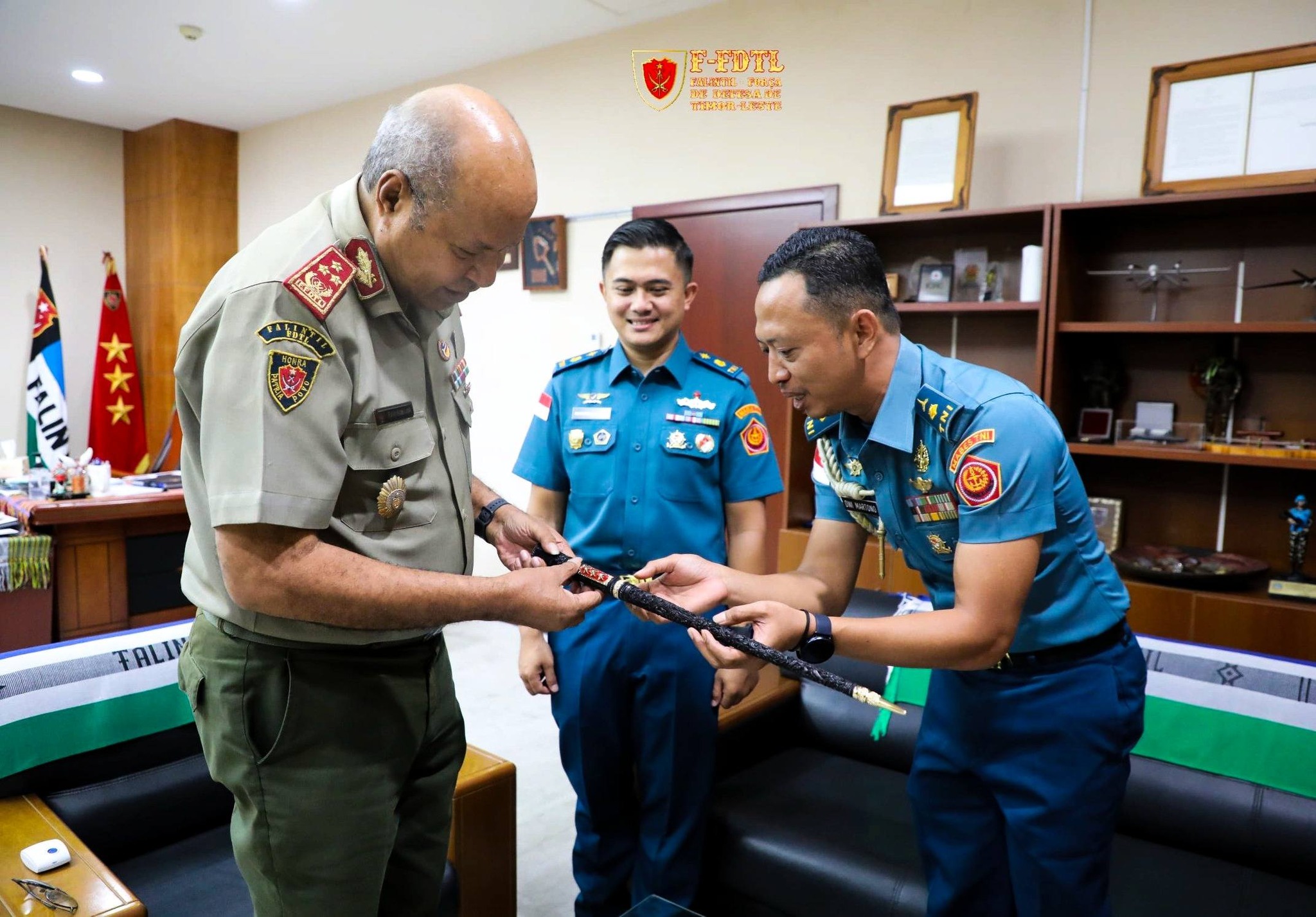 Komandu FALINTIL-Forsa Defeza Timor-Leste (F-FDTL) liuhosi Xefe Estadu Maior Jenerál F-FDTL Tenente Jenerál Falur Rate Laek, ohin simu vizita kortezia husi Adjunto Adido Defeza Tentara Nasionál Indonésia (TNI) Mayor Marinir Dwi Martono, iha Kuartel Jenerál F-FDTL, Fatuhada, Dili.
