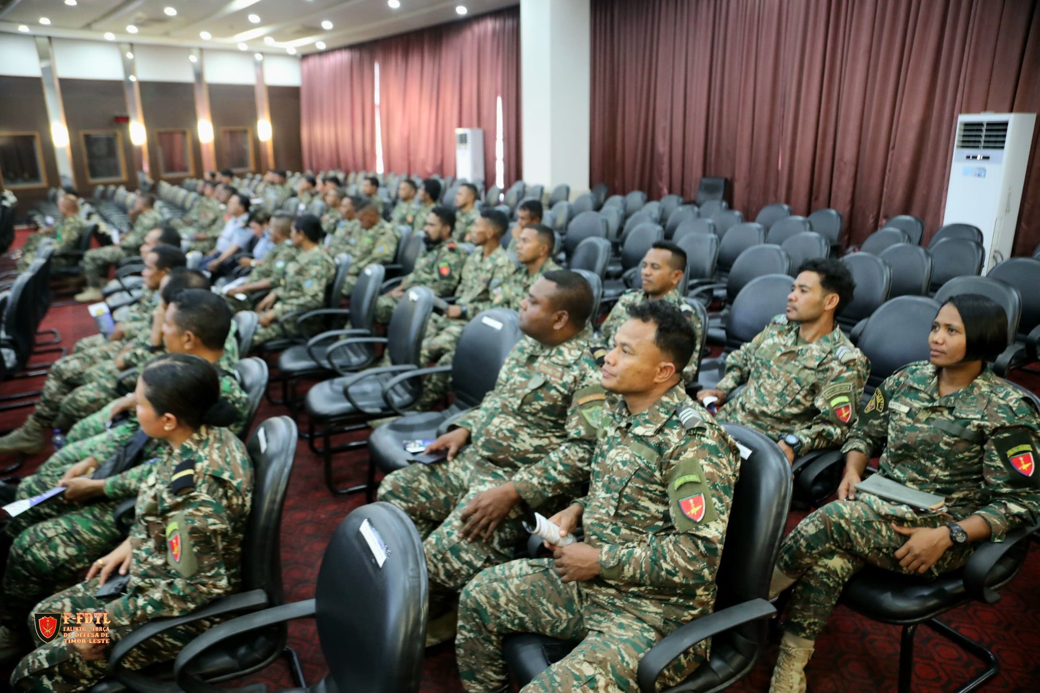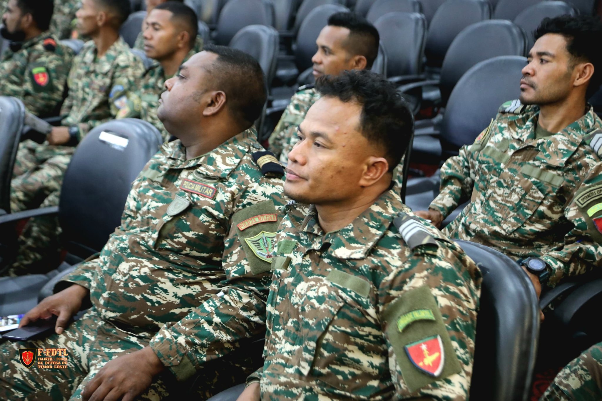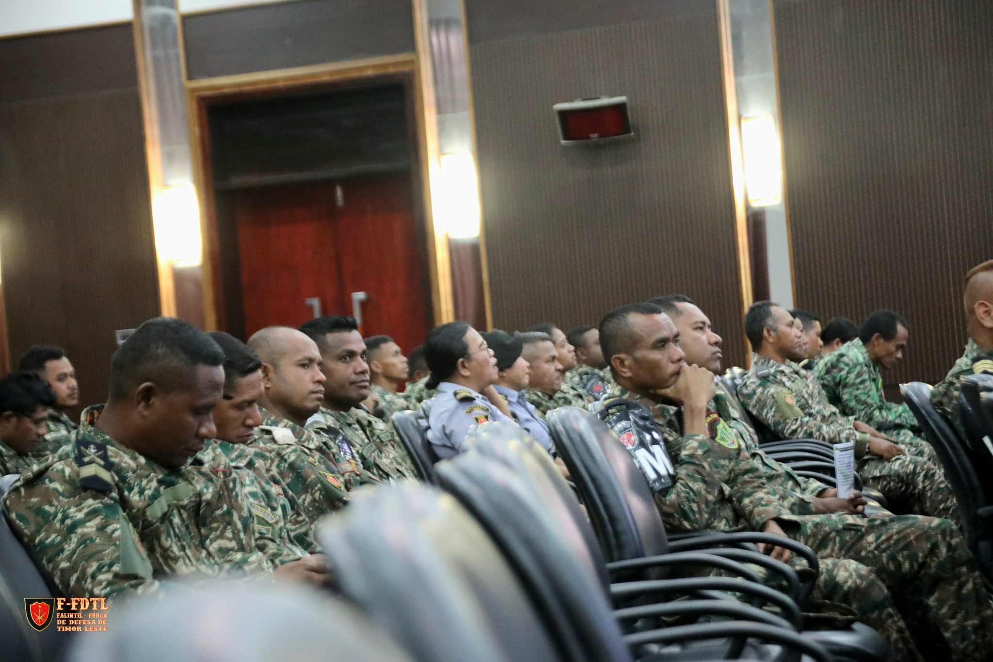 Membru FALINTIL-Forsa Defesa Timor-Leste(F-FDTL) husi Komponente Naval, Aereo, UF,PM no UAQ tuir sensibilizasaun kona ba Ezistensia Banco Nosso Futuro (BNF).
