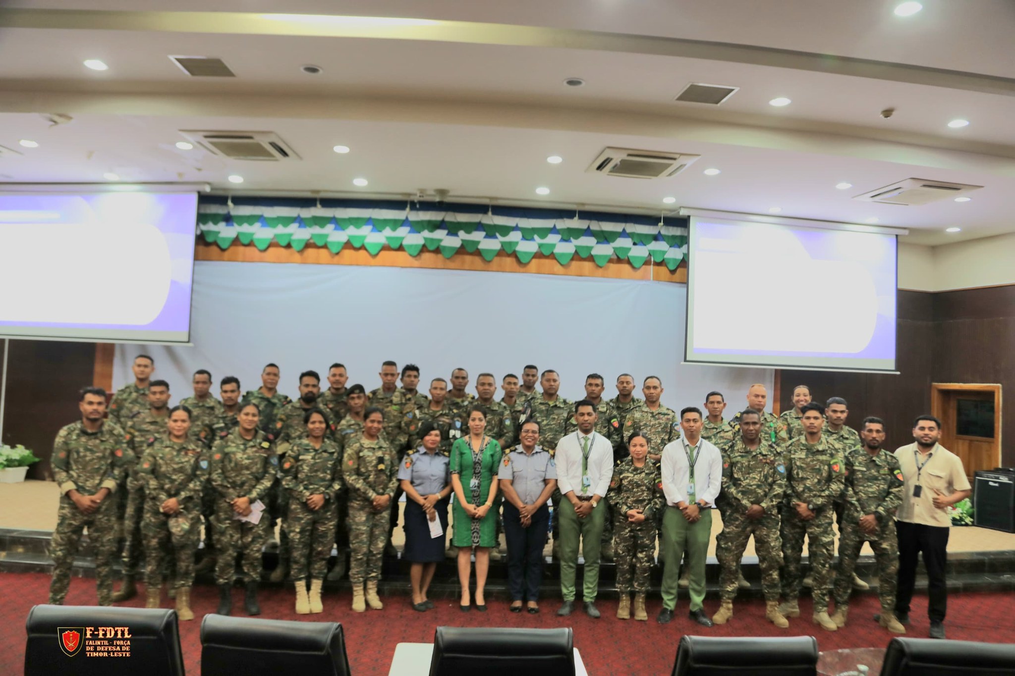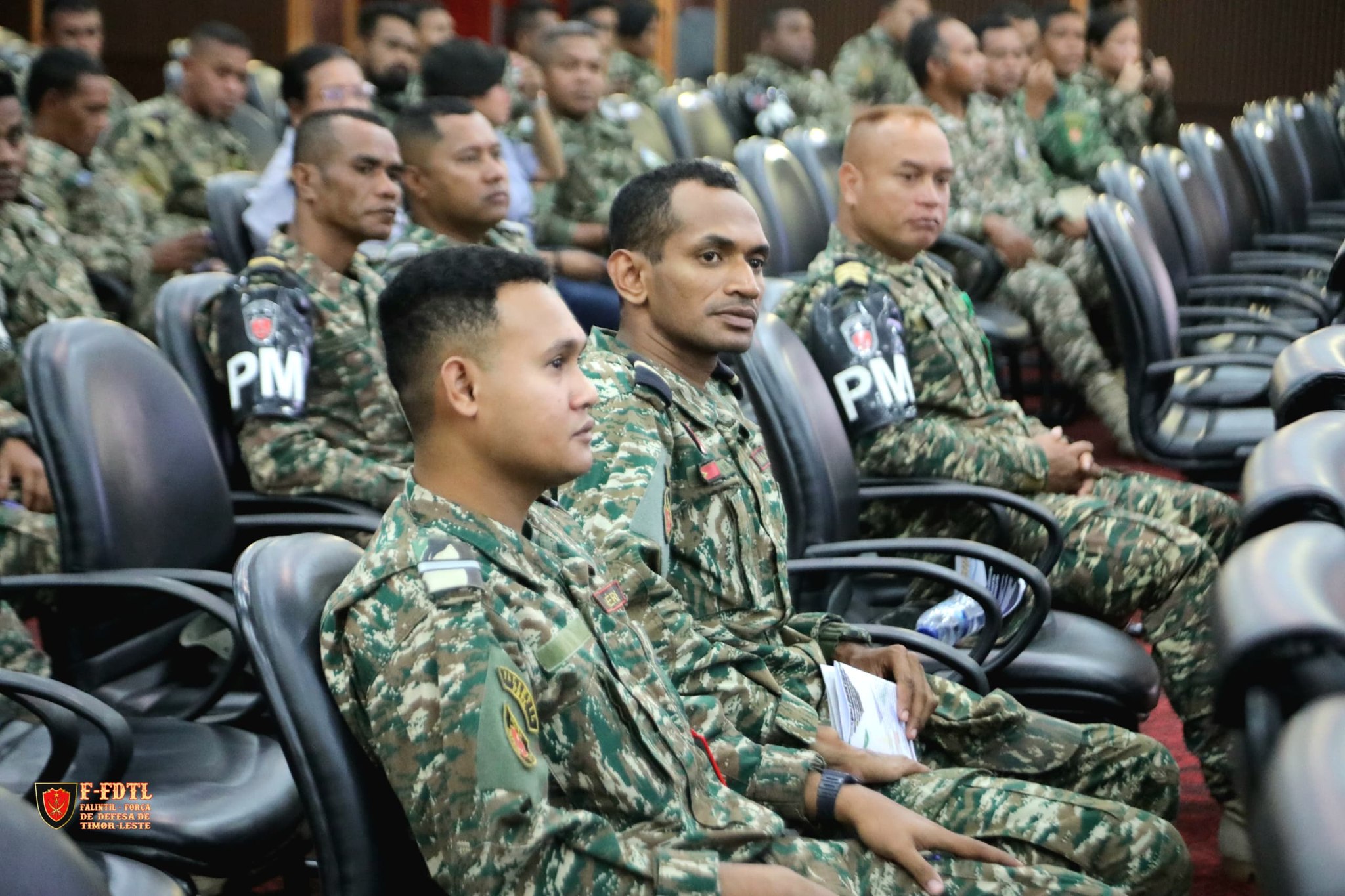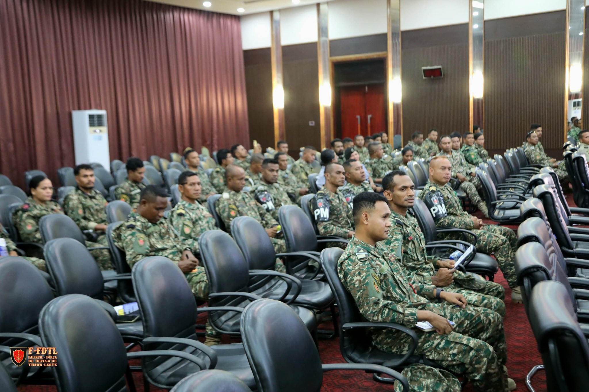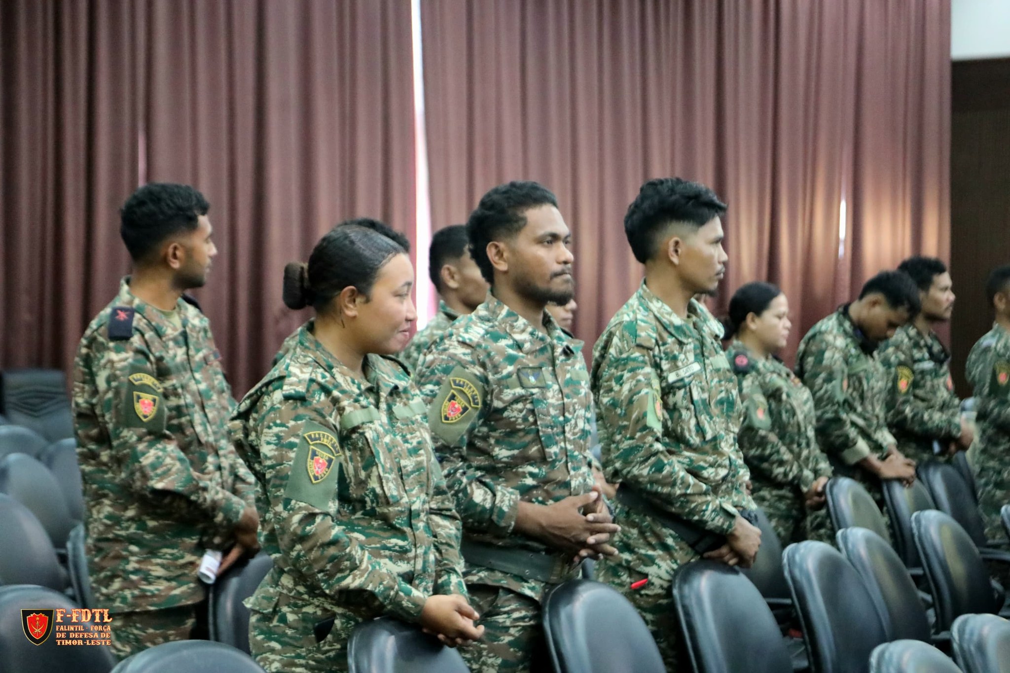 Membru FALINTIL-Forsa Defesa Timor-Leste(F-FDTL) husi Komponente Naval, Aereo, UF,PM no UAQ tuir sensibilizasaun kona ba Ezistensia Banco Nosso Futuro (BNF).