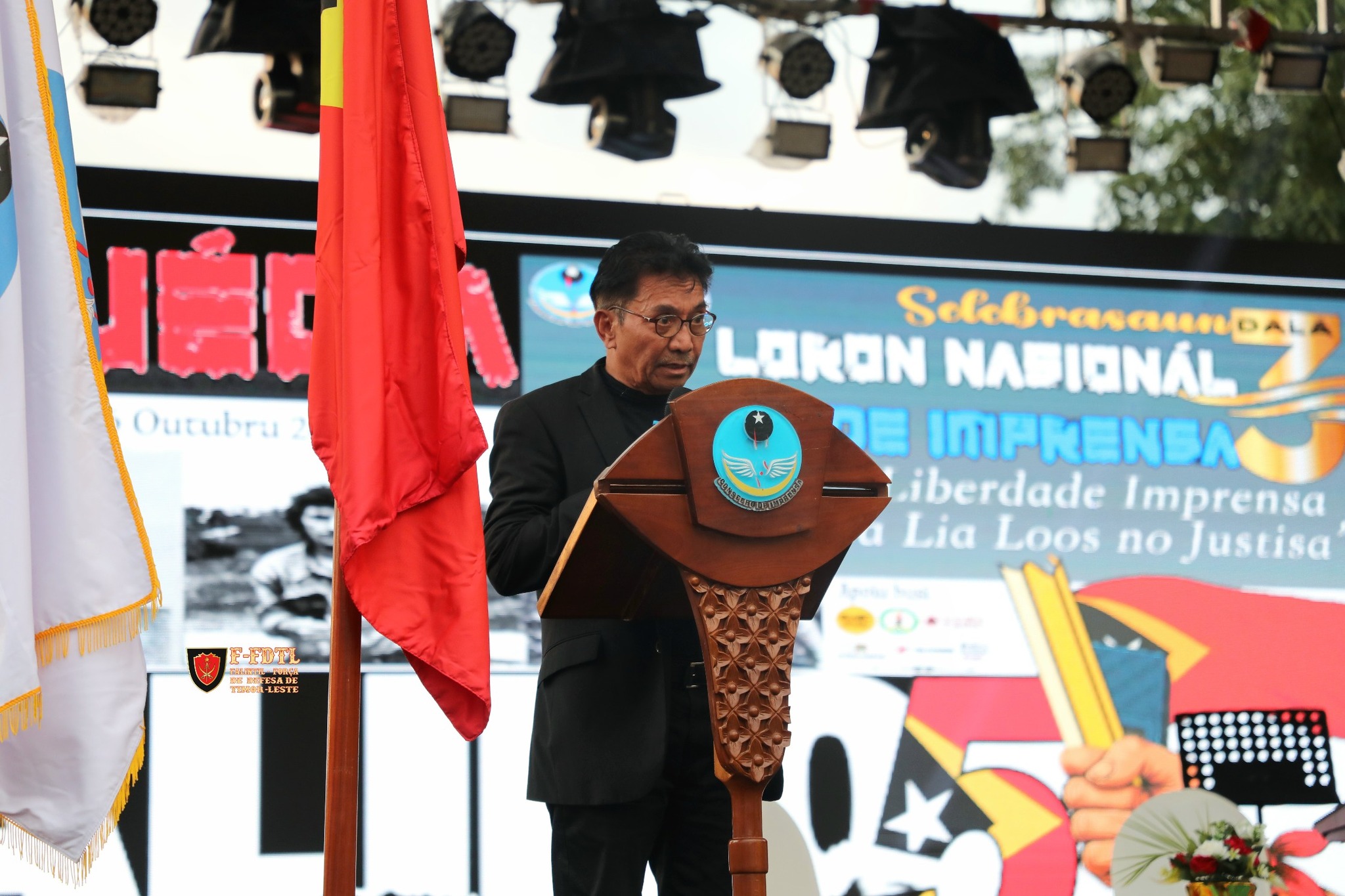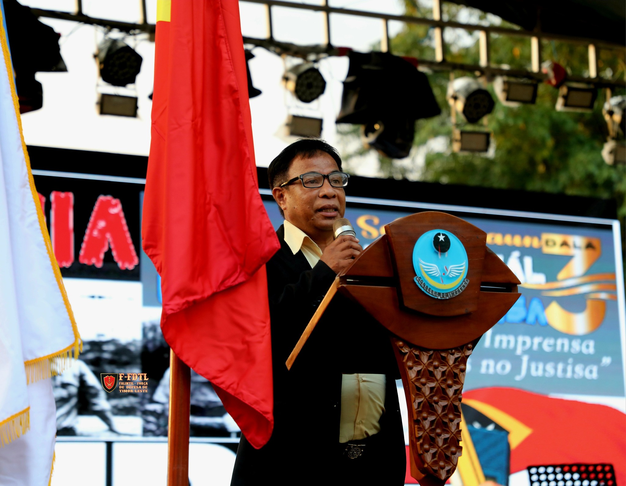 Nu'udar Xefe Estadu-Maiór Jenerál F-FDTL, ha'u hakarak afirma ho solene kompromisu ita-nia Forsa Armada nian hodi defende liberdade imprensa iha Timor-Leste. Kompromisu ida-ne'e la'ós de'it institusionál—ida-ne'e istóriku.