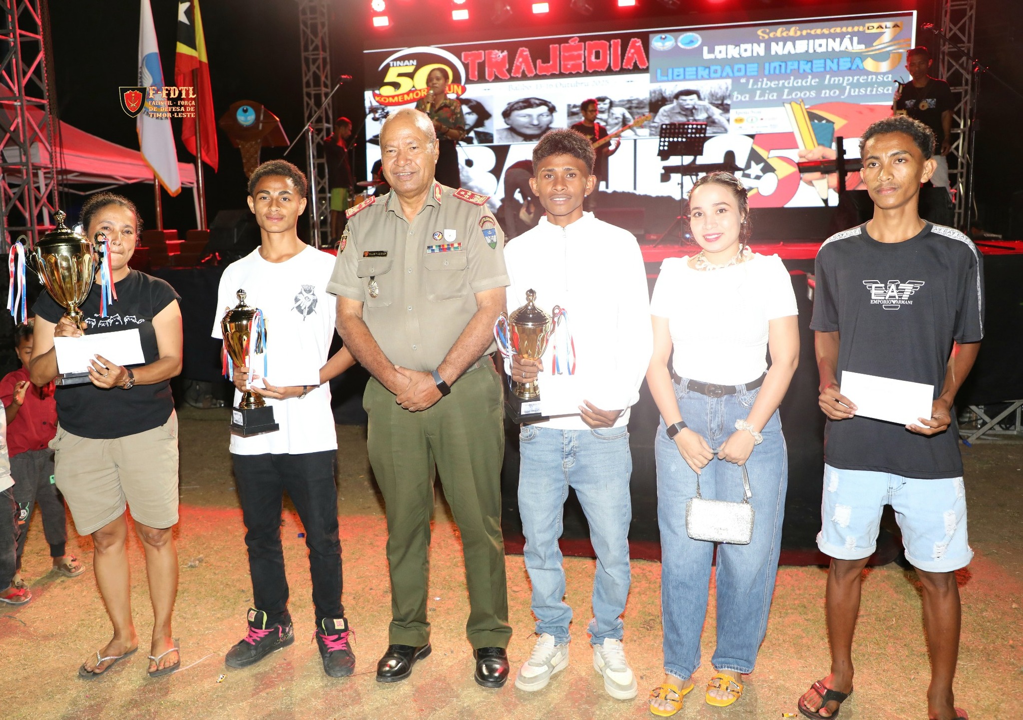 FALINTIL-FDTL, nu'udar instituisaun ne'ebé moris husi rezisténsia no iha servisu ba demokrasia timoroan nian, fó onra ba memória ema aten-barani sira-ne'e nian no reafirma kompromisu atu defende liberdade imprensa nu'udar valór fundamentál ba ita-nia nasaun independente.