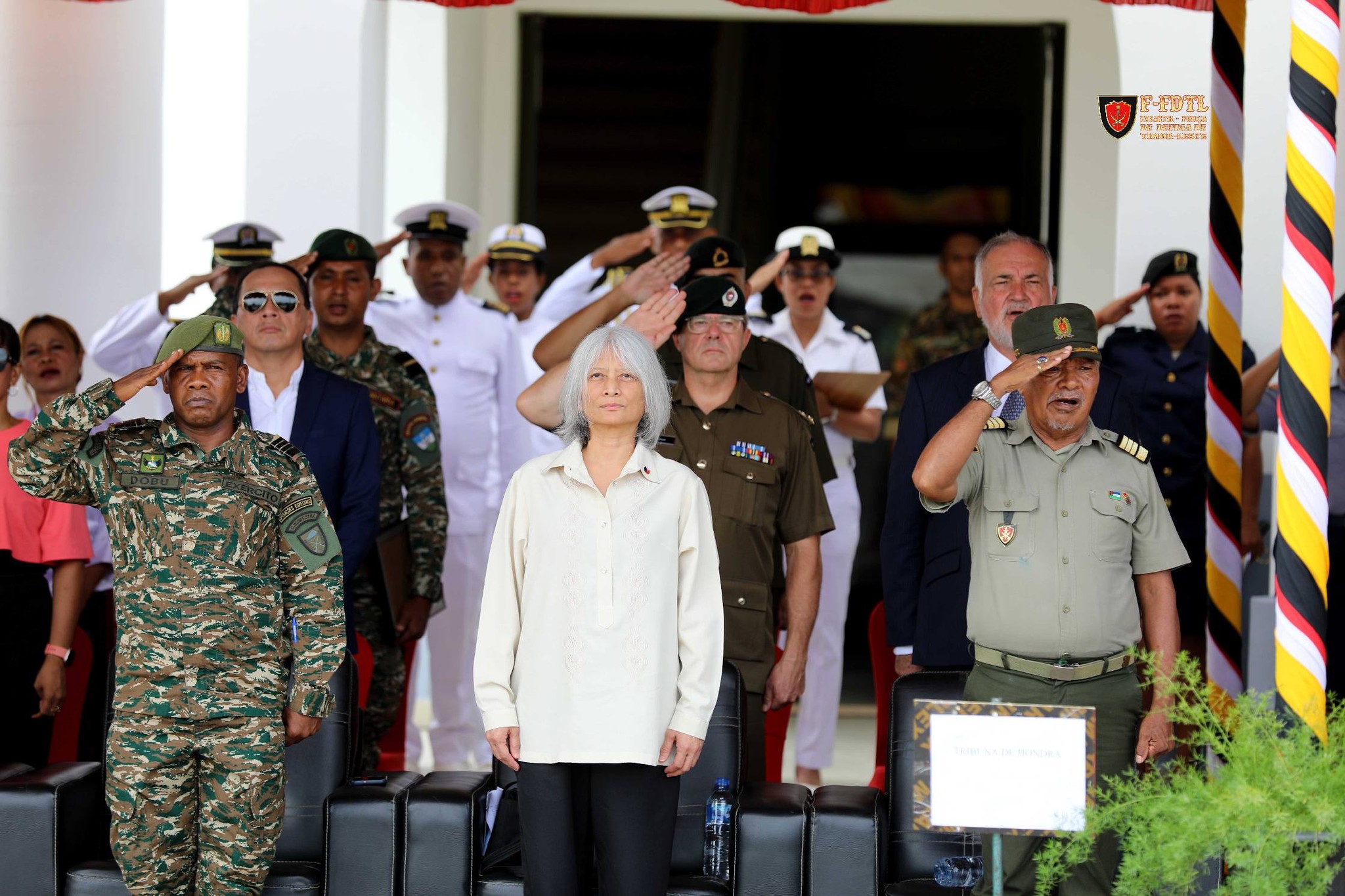 "Ami hato’o ami nia agradesimentu ba eis Xefe Estadu Maior Jenerál F-FDTL, Sua Exelénsia Tenente-Jenerál Lere Anan Timur, ba Sua Exelénsia, atuál Xefe Estadu Maiór Jenerál F-FDTL, Tenente-Jenerál Domingos Raúl “Falur Rate Laek”, nune’e mós ba komandante veteranu FALINTIL sira hotu".