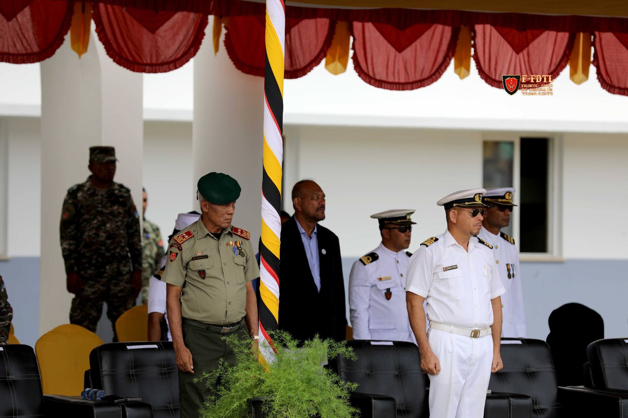 "Ami mós saúda Ofisiál Jerál sira F-FDTL nian, nomeadamente Sua Exelénsia Majór-Jenerál João Miranda “Aluc Descarte”, Sua Exelénsia Majór-Jenerál Américo Ximenes “Sabika Besi Kulit”, Sua Exelénsia Majór-Jenerál Cornelio Ximenes “Mau Nana”, Sua Exelénsia Ministru Defeza formuláriu Brigadier-Generál Filomeno da Paixão de Jesus, nune’e mós Sua Exelénsia atuál Ministru Defeza, Kontra-Almirante Donaciano Costa Gomes, Ph.D., Pedro Klamar Fuik, ne’ebé, iha momentu oioin iha istória nasionál, kontribui ba fortalesimentu institusionál, estratéjiku no operasionál defeza Timor-Leste nian, ho foku partikulár ba afirmasaun soberanu marítima no kontínua Navalidade nian Komponente, prepara nia ba futuru ida ne'ebé sustentável. Obrigadu ba dedikasaun, sakrifísiu, no vizaun hosi líder no kombatente sira-ne’e, Komponente Navál harii ofisialmente no sai nafatin, to’o ohin loron, nu’udar pilar fundamentál ida ba defeza marítima Timor-Leste nian".