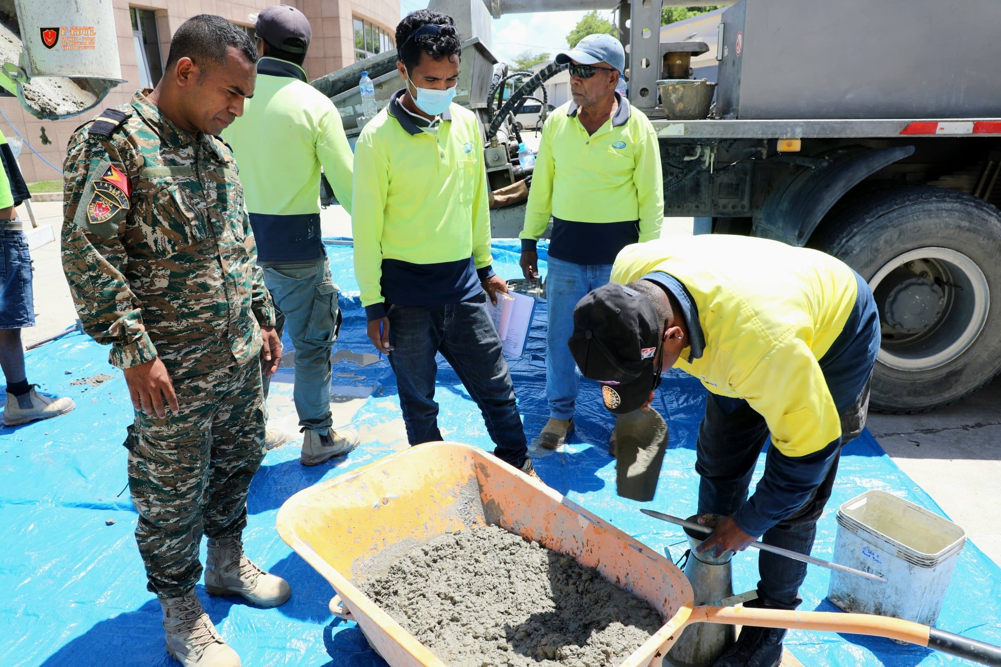 Xefe Estadu Maior FALINTIL-Forsa Defeza Timor-Leste (F-FDTL) Brigadeiro Jenerál José da Costa Soares "TRIX"" observa direta konstrusaun Edifísiu bá servisu Logistíka nian iha Kuartel Jenerál Kotuk.