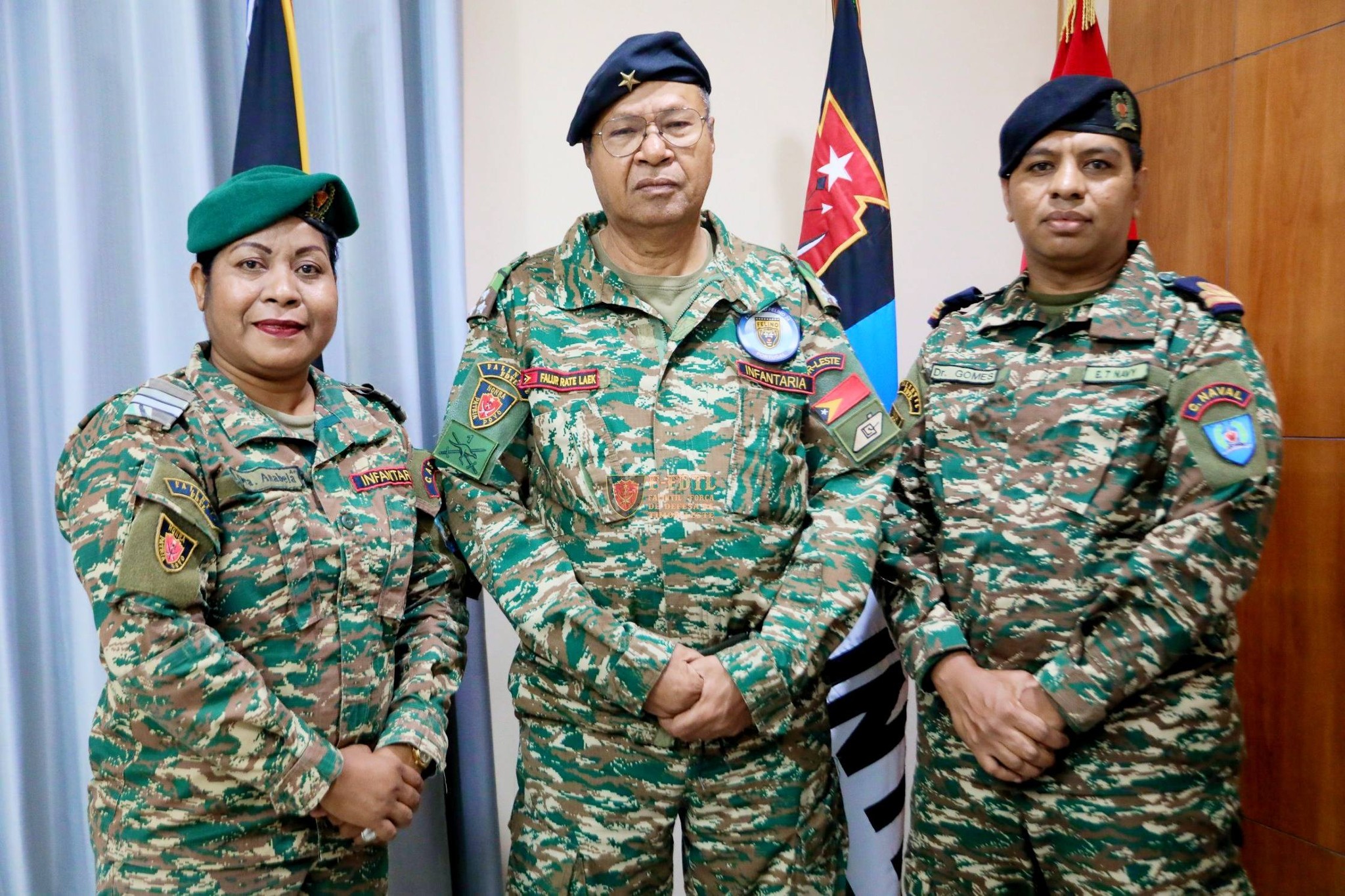 Membru FALINTIL-Forsa Defeza Timor-Leste (F-FDTL) na’in rua ne’ebé finaliza ona estudu iha Nasaun Cuba ohin hasoru malu ho Xefe Estadu Maior Jenerál F-FDTL Tenente Jenerál Falur Rate Laek, hodi aprezenta rezultadu husi estudu ne’ebé sira tuir durante tinan tolu iha Nasaun Cuba.