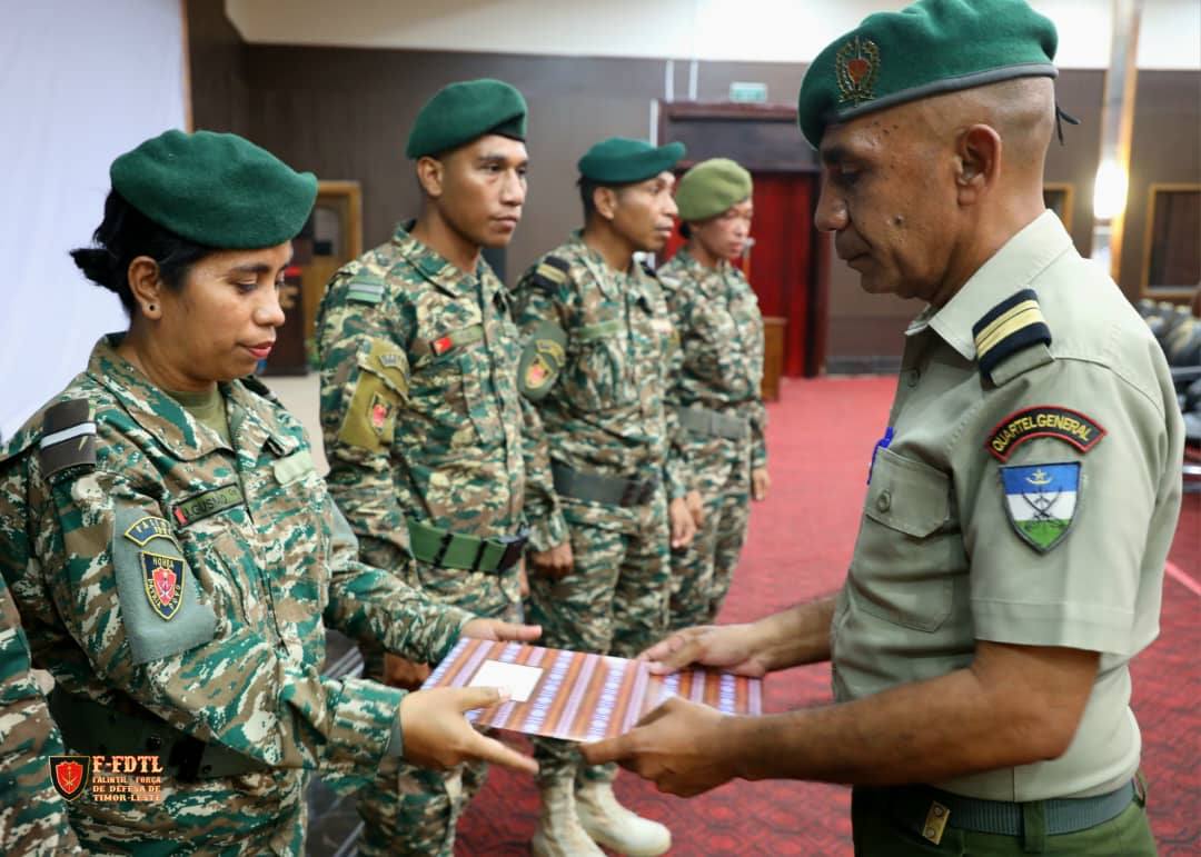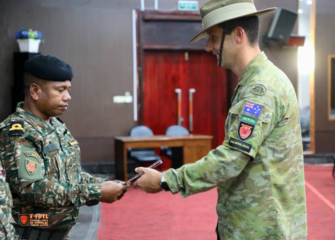 Membru FALINTIL-Forsa Defeza Timor-Leste (F-FDTL) hamutuk nain sanulu resin sia (19) remata ona kursu formasaun kona-bá Diskursu Publiku nian durante loron sanulu iha Eiros Group, programa ne’e hala’o tamba iha koperasaun entre FALINTIL-FDTL ho Defence Coorperation Programa Austrália (DCP).