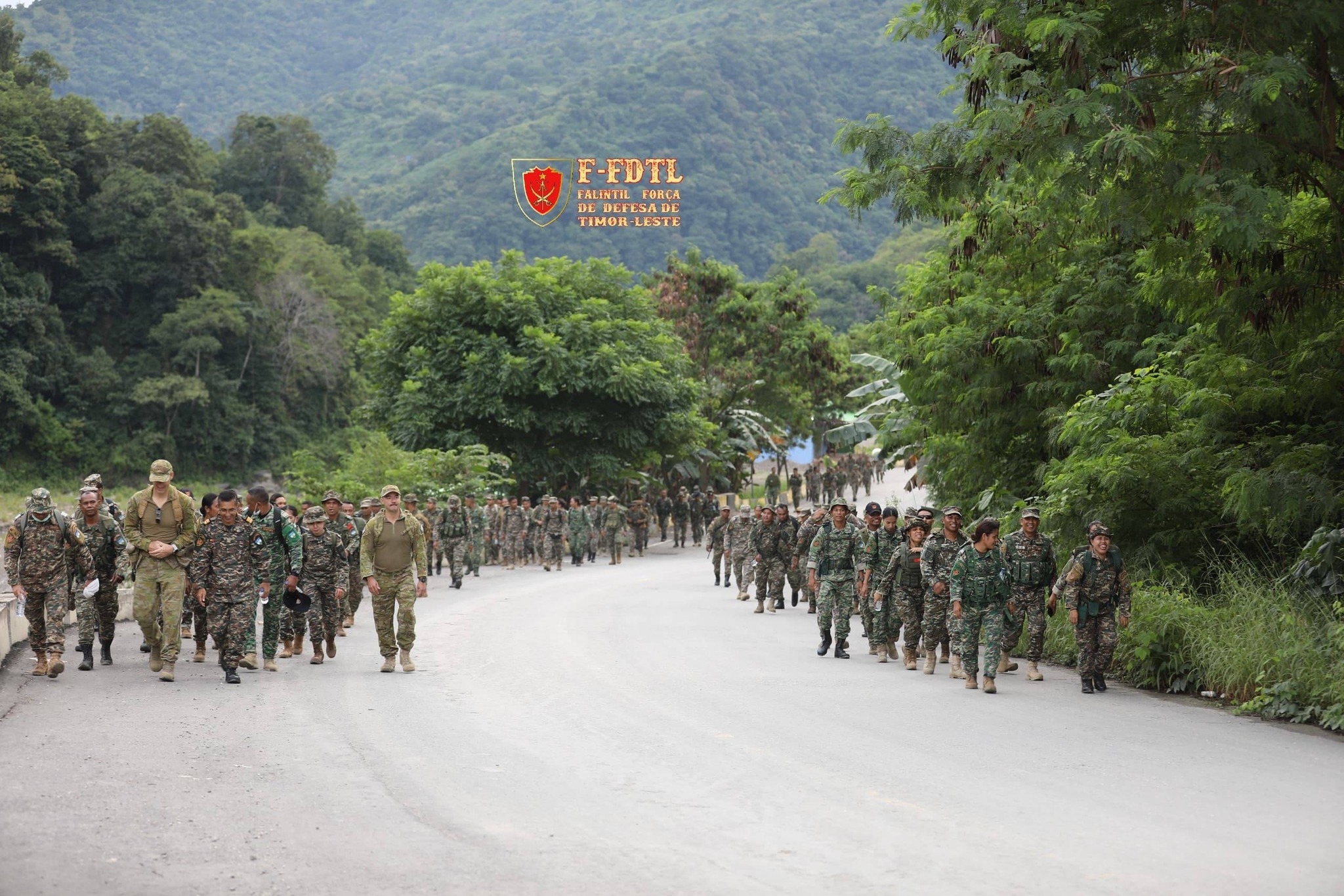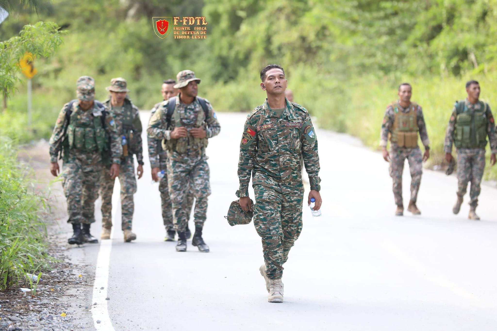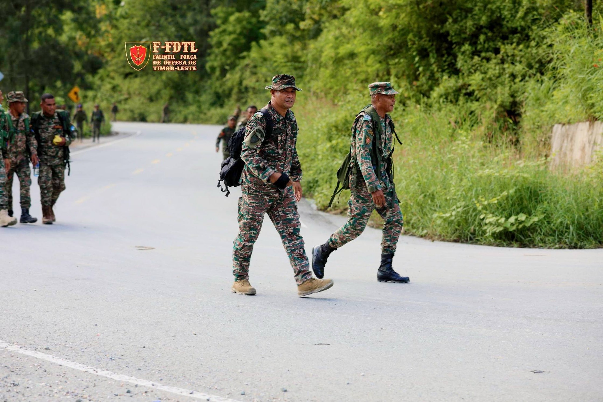 Membru FALINTIL-Forsa Defeza Timor-Leste (F-FDTL) husi Kuartel Jenerál, hamutuk ho asesor Austráliano sira, ohin realiza ezersísiu Marsa Forsada husi ponte Kasnafar to’o iha bee Tudak Fatisi.