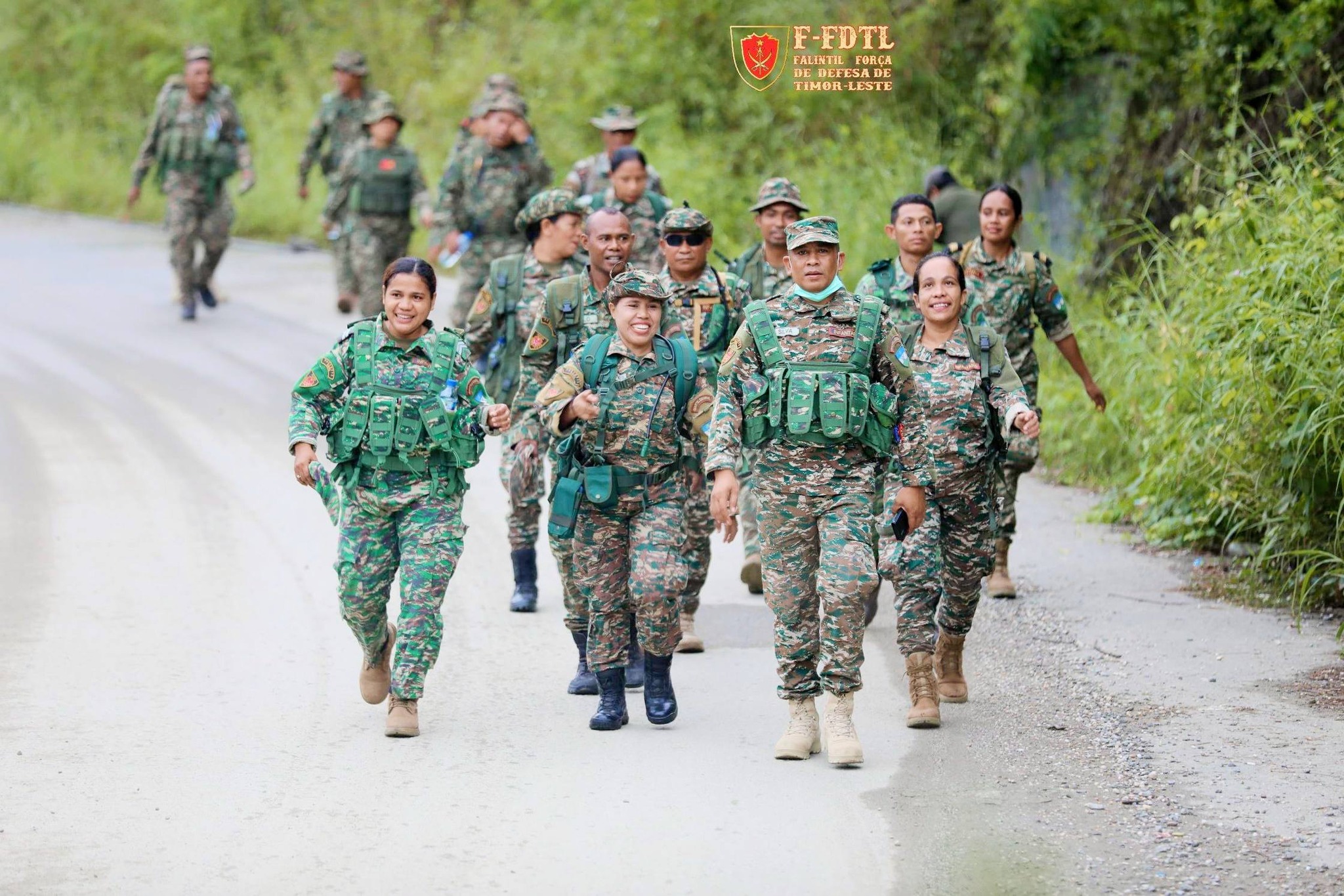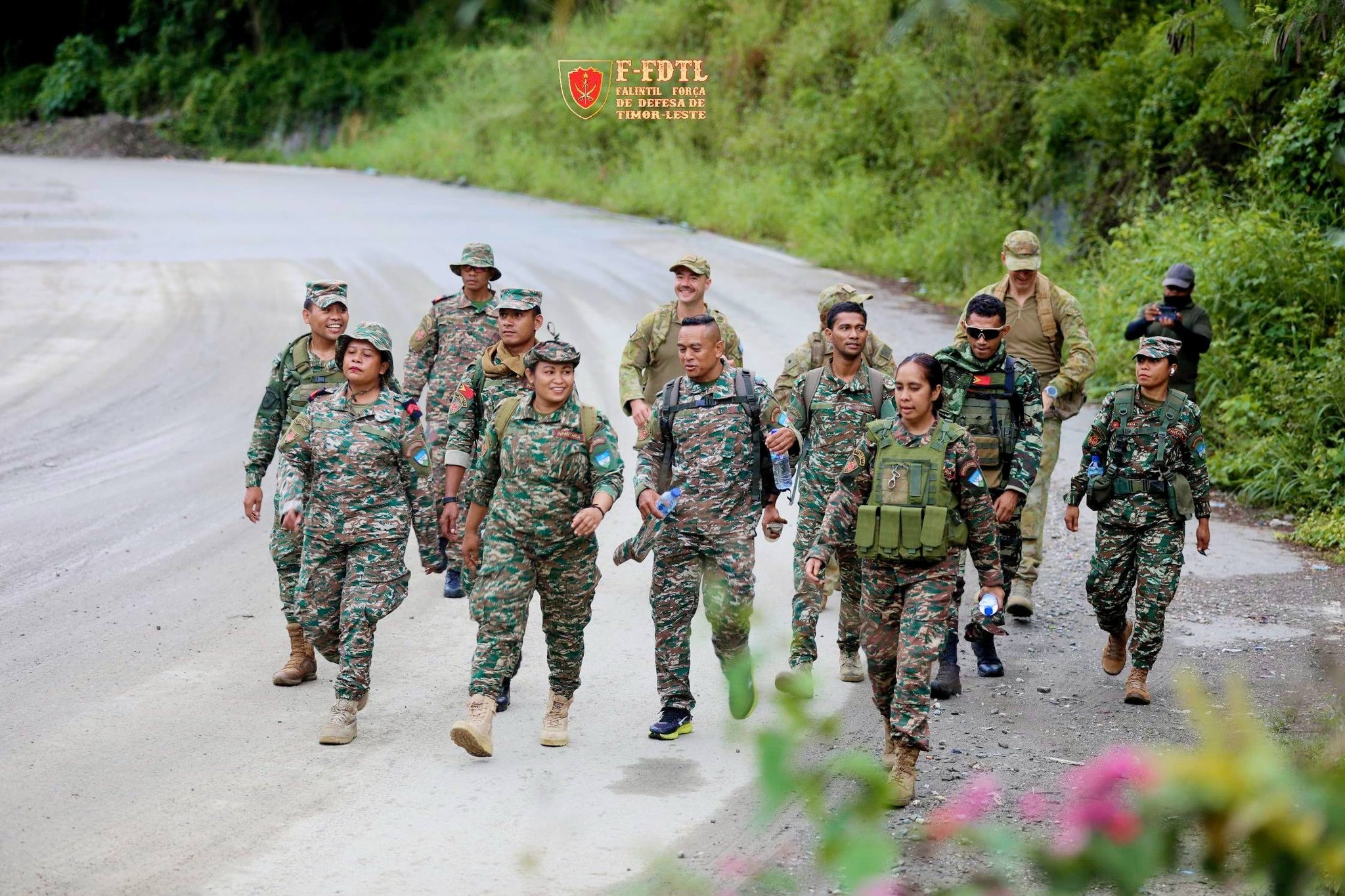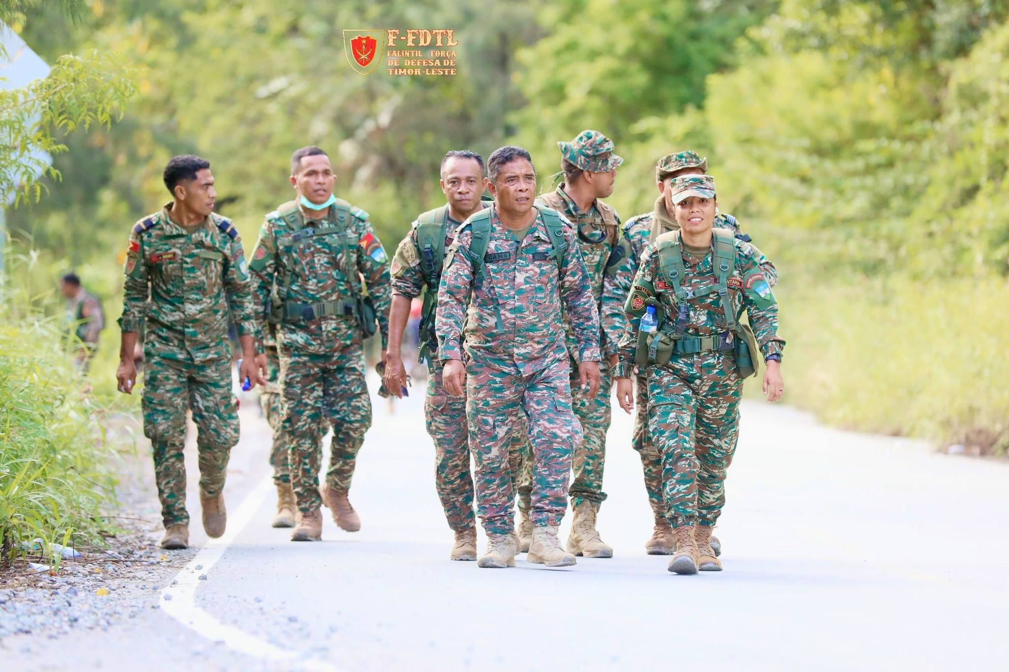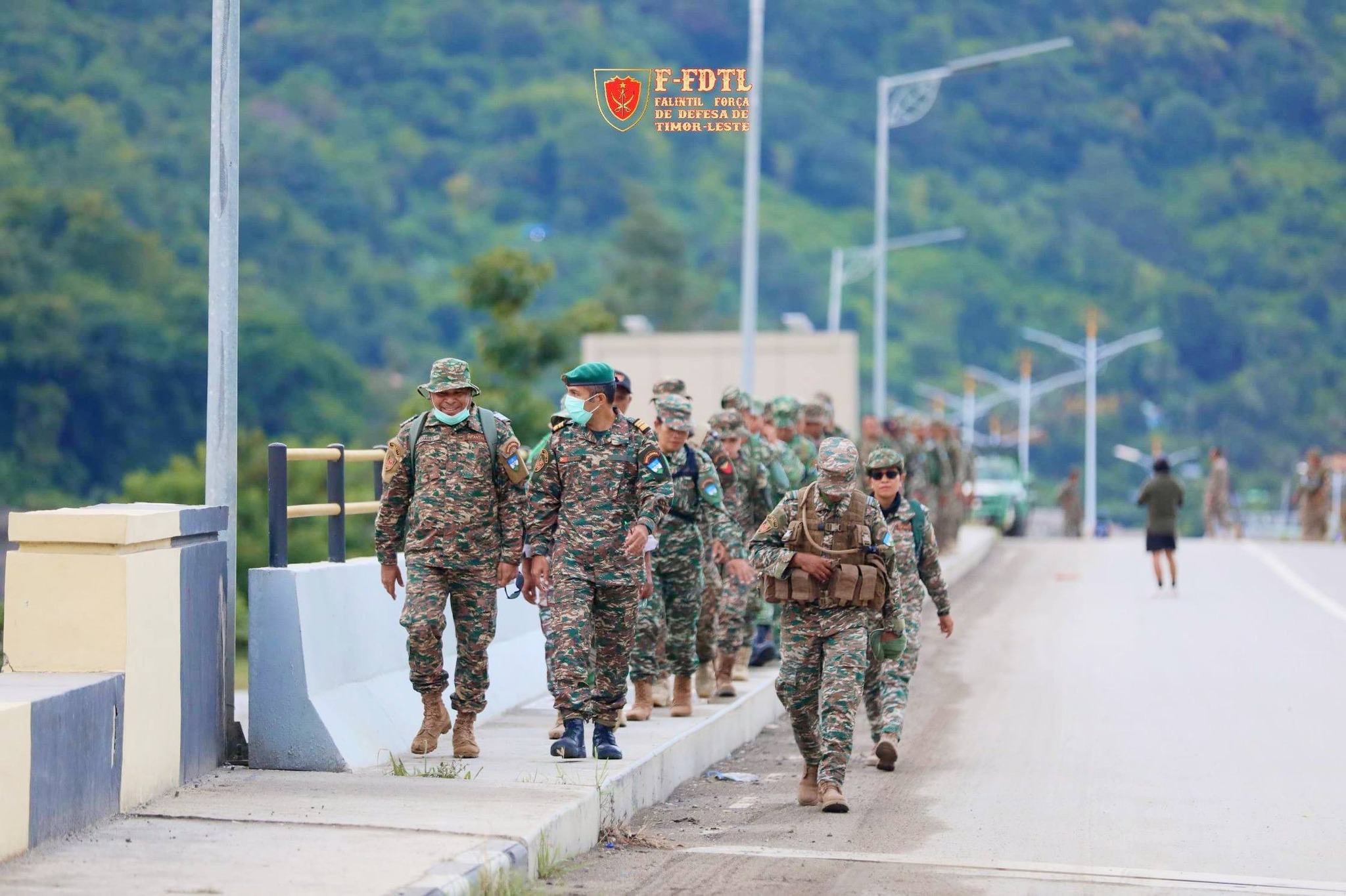 Membru FALINTIL-Forsa Defeza Timor-Leste (F-FDTL) husi Kuartel Jenerál, hamutuk ho asesor Austráliano sira, ohin realiza ezersísiu Marsa Forsada husi ponte Kasnafar to’o iha bee Tudak Fatisi.