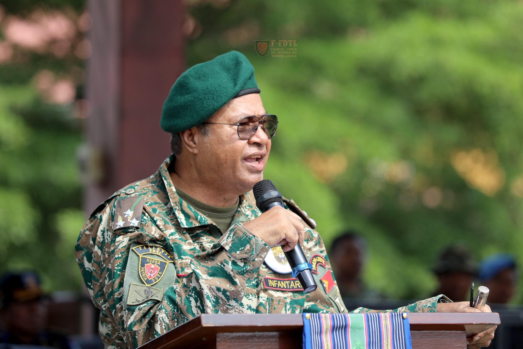 Iha Diskursu Xefe Estadu Maior Jenerál F-FDTL, Tenente Jenerál Falur Rate Laek, hatete, ohin ita halibur iha momentu istóriku ida ne'e, ultrapasa serimónia formatura simples ne'e momentu ohin, reprezenta sinteze institusionál ita-nia nasaun joven, ne'ebé inkorpora iha Forsa Tarefa Konjunta ne'ebé dezeña atu garante dame no hakmatek durante periódu krítiku sira iha ita-nia vida Nasionál.