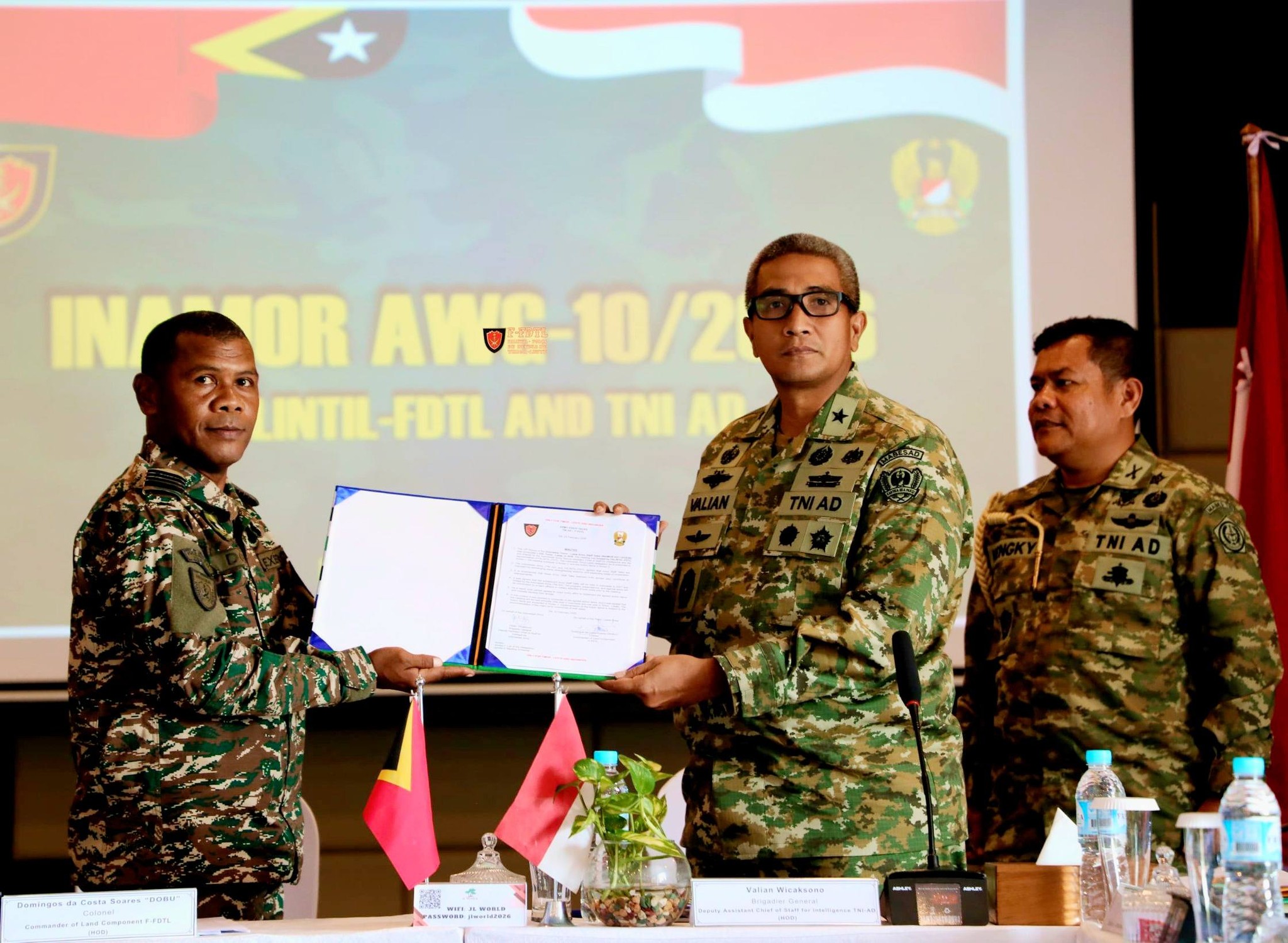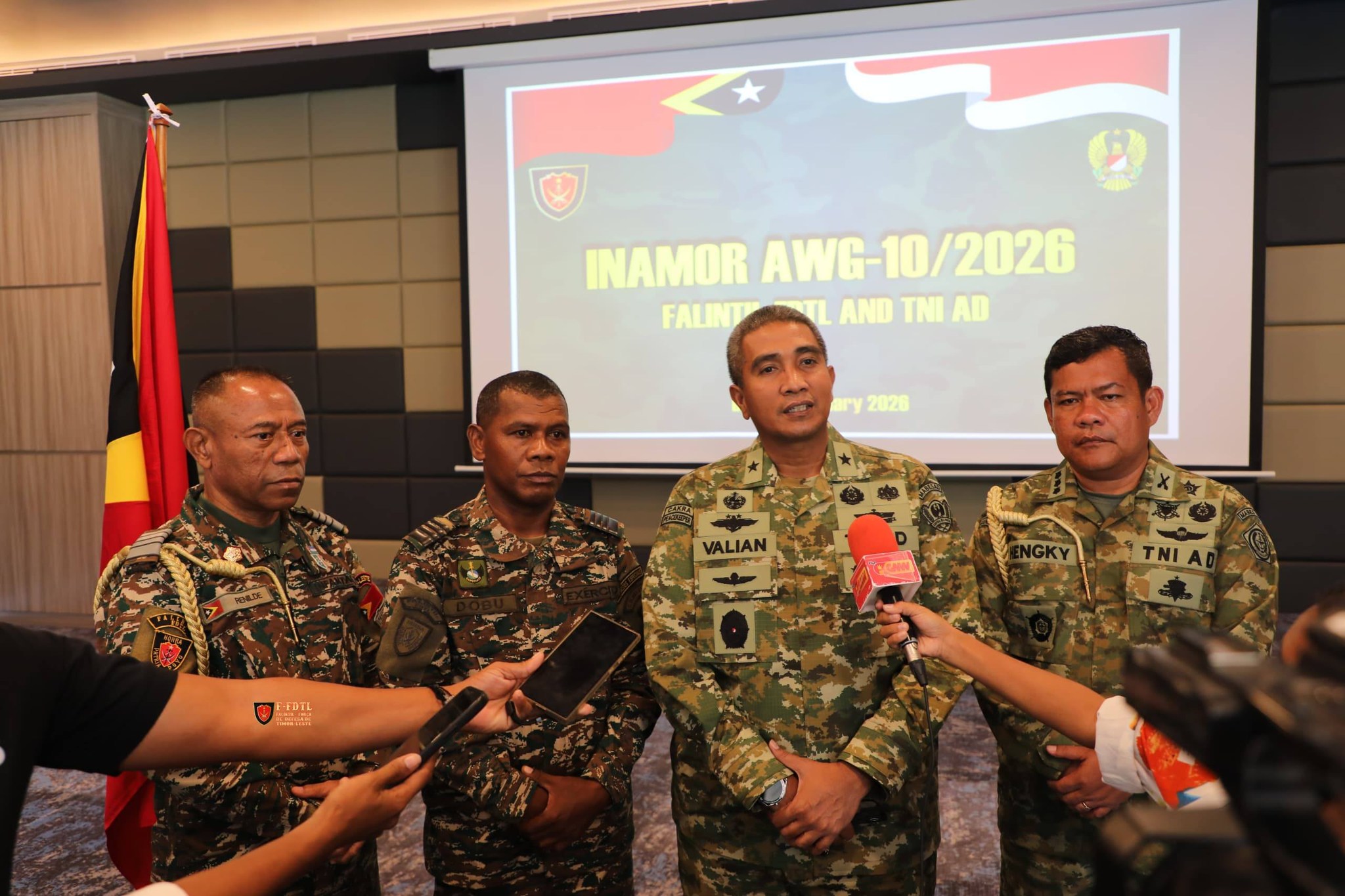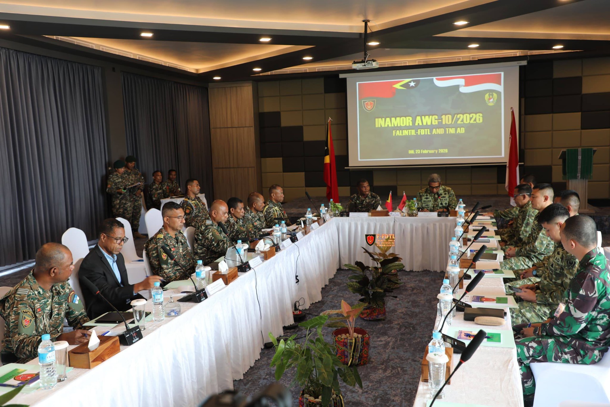 Komandu FALINTIL-Forsa Defesa Timor-Leste(F-FDTL) sai uma nain bá enkontru AWG INAMOR bá dala-10 ho delegasaun Tentara Nasionál Indonésia Angkatan Darat (TNI-AD) iha hotel JL Word Metiaut Dil.