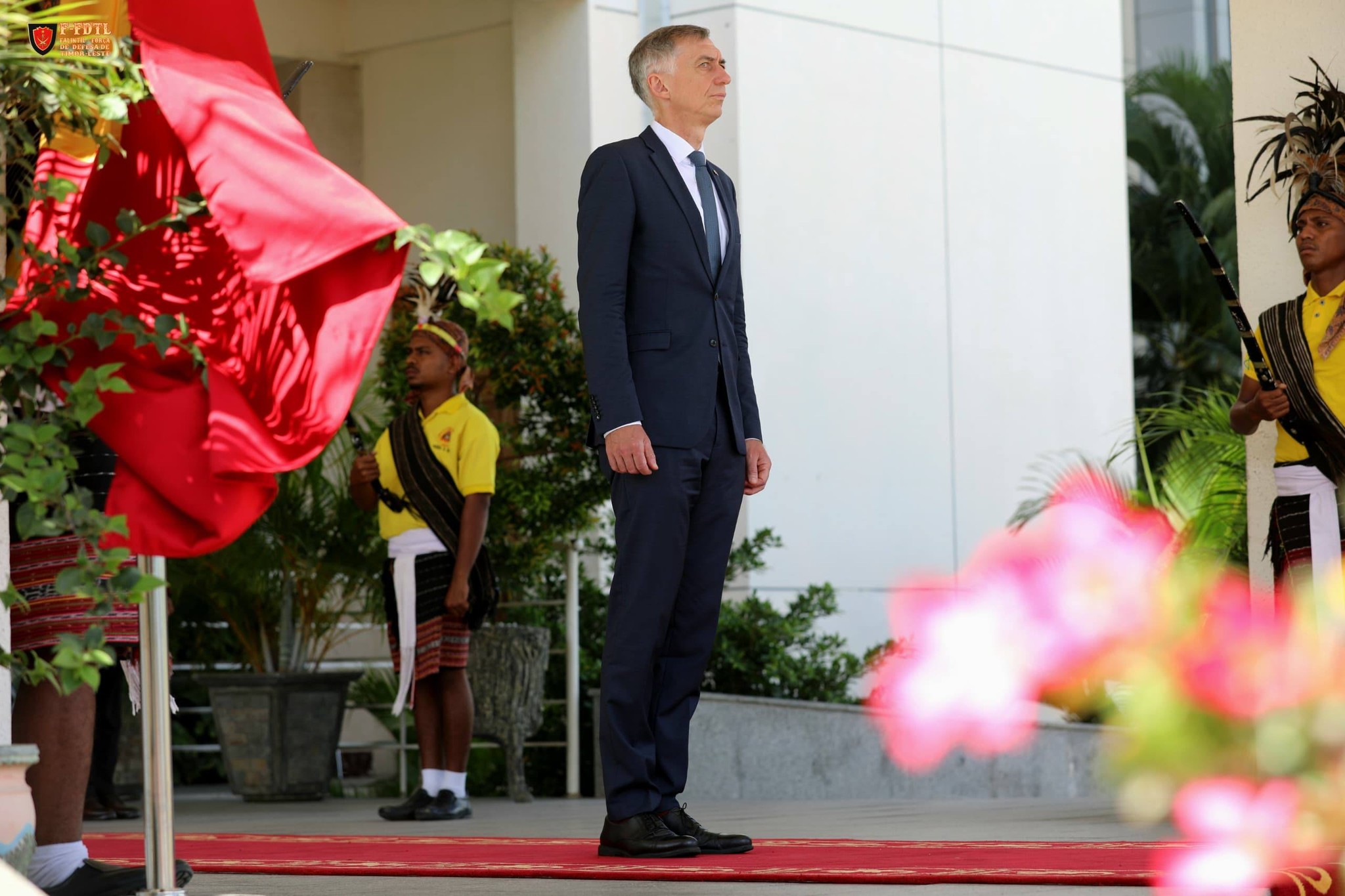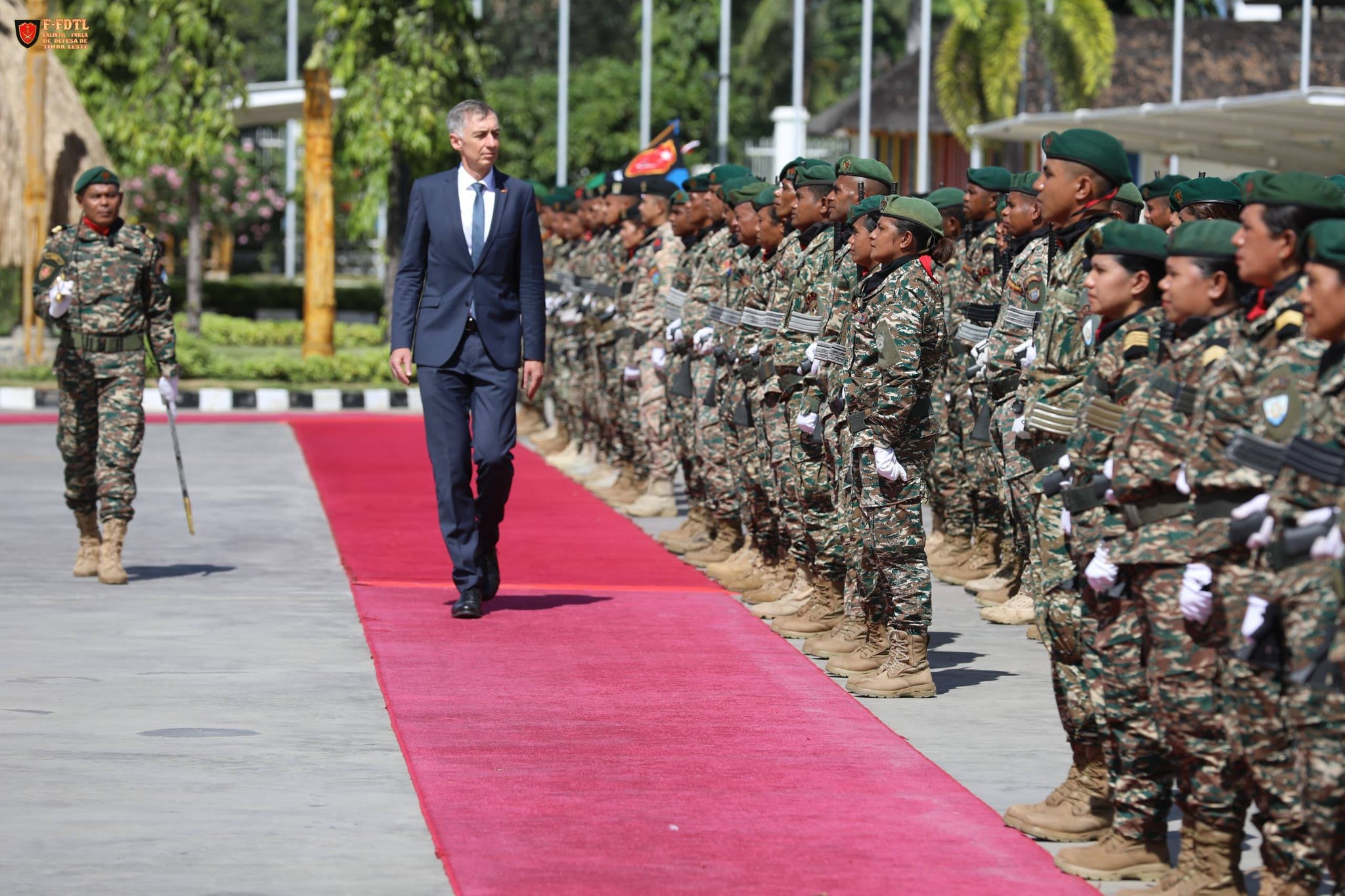 Sexta-Feira, 30 Janeiru ne'e FALINTIL-Forsa Defesa Timor-Leste (F-FDTL) Menus Kompaña ida husi Komponente Naval no mós husi Forsa Apoiu Geràl (FAG) hala'o parada militár iha Palasiu Prezidente Aitarak Laran Dili hodi simu Sua Exelénsia Sr. Ralf Beste, hanesan Embaixadór Estraordináriu no Plenipotensiáriu foun Repúblika Federál Alemaña nian hanesan Embaixadór foun ba Repúblika Demokrátika Timor-Leste (RDTL) nian.