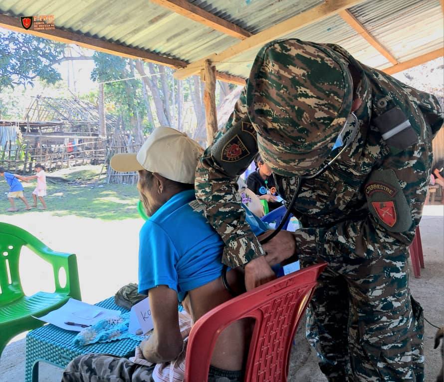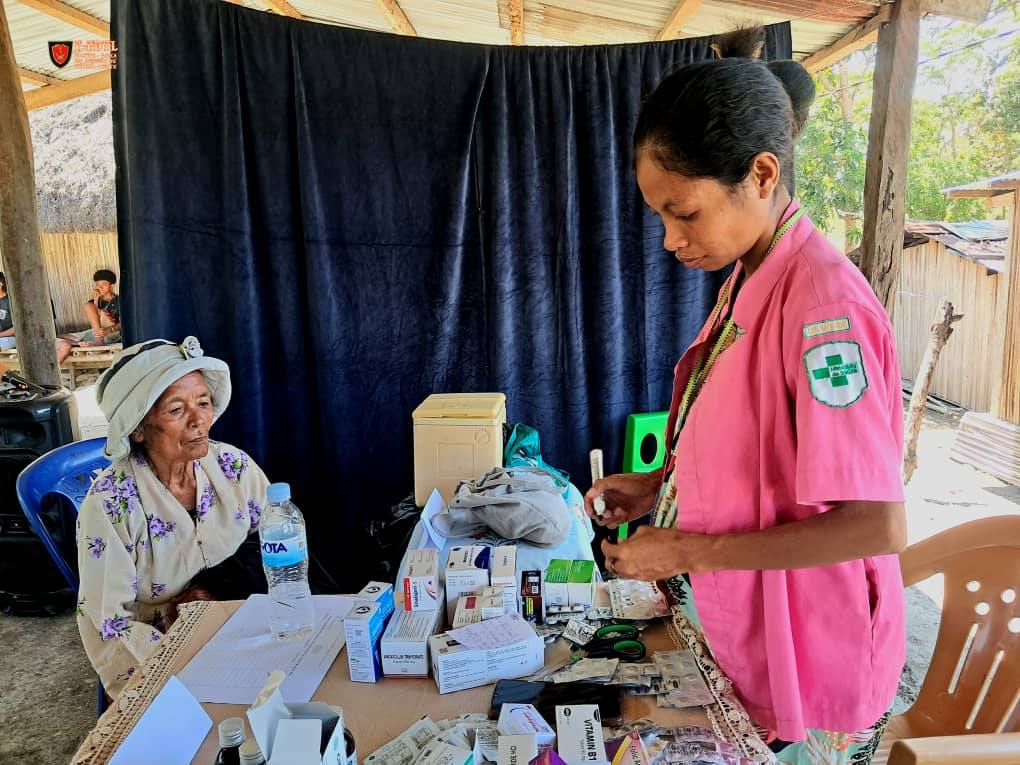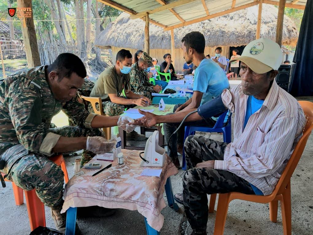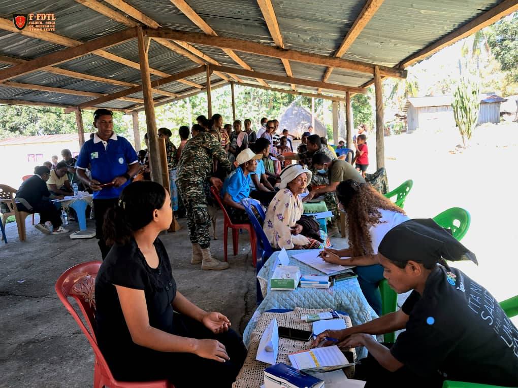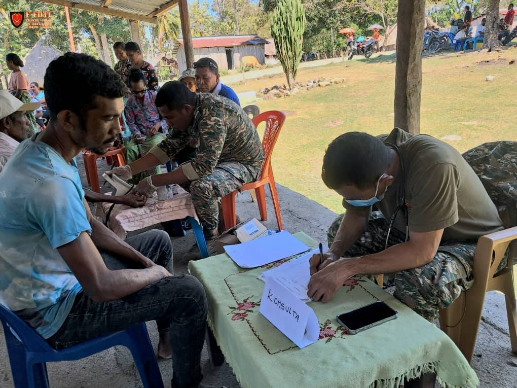 Pessoal Saúde husi F-FDTL junta ho Pessoal Saúde Postu Hatu-Udo kontinua halo tratamentu saúde bá komunidade sira iha Suku Leolima, Aldeia Hutseo, Postu Administrativu Hatu-Udo, Munisípiu Ainaro.