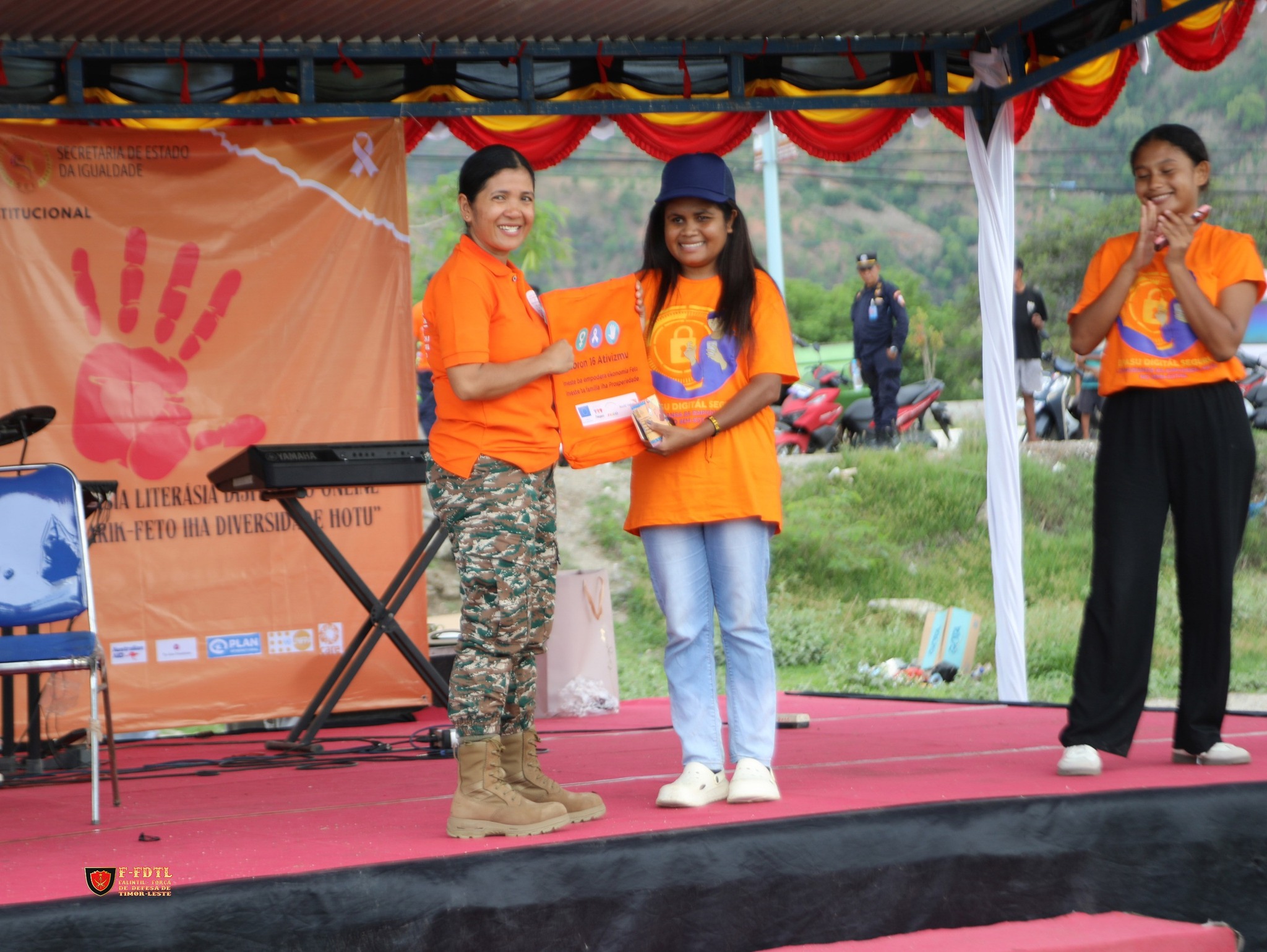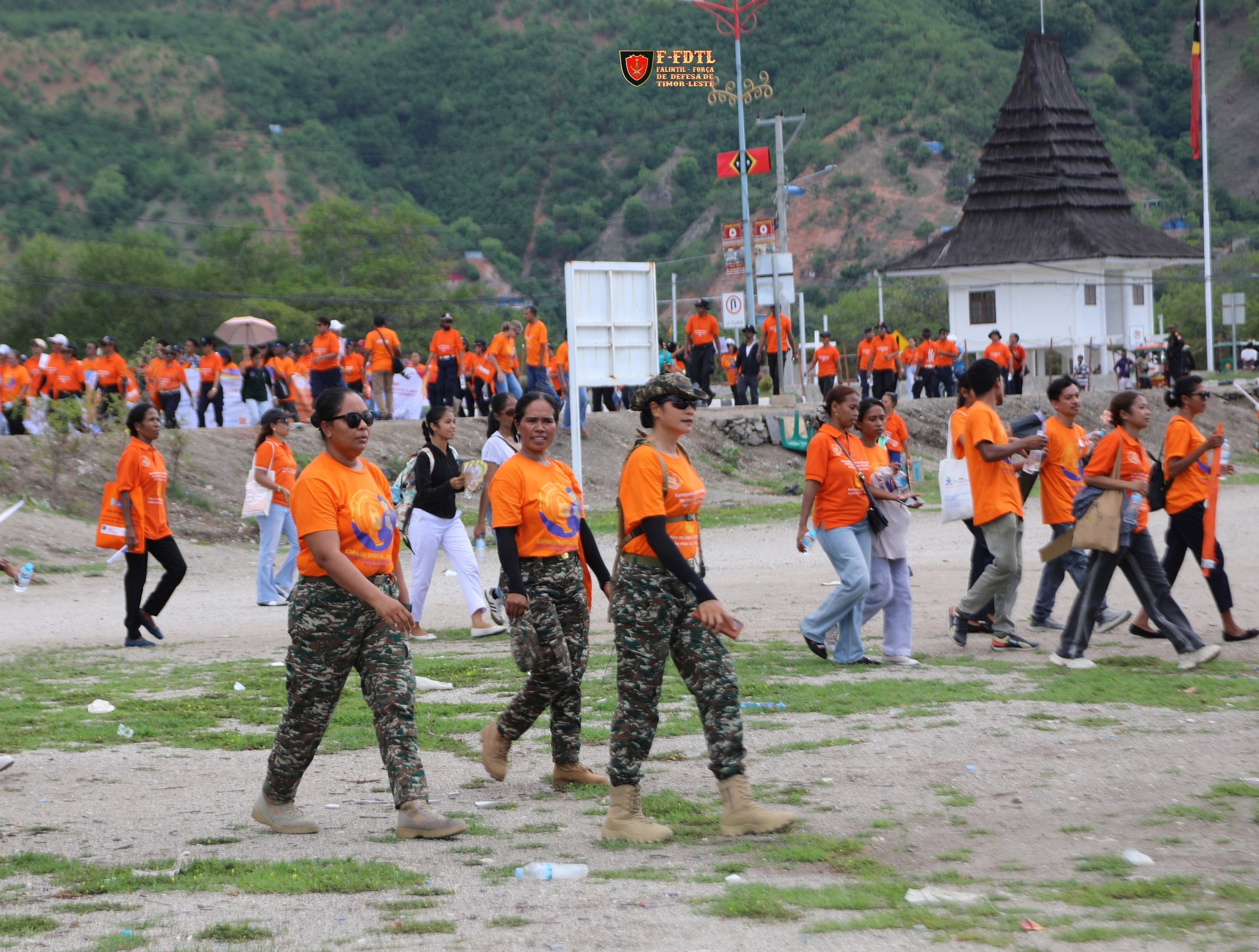 Ekipa FALINTIL-Forsa Defeza Timor-Leste (F-FDTL) husi seksaun Jéneru F-FDTL Partisipa iha marsa hodi Komemora kampanha loron 16 ativismu kontra violensia hasoru feto no labarik feto iha Timor-Leste.
