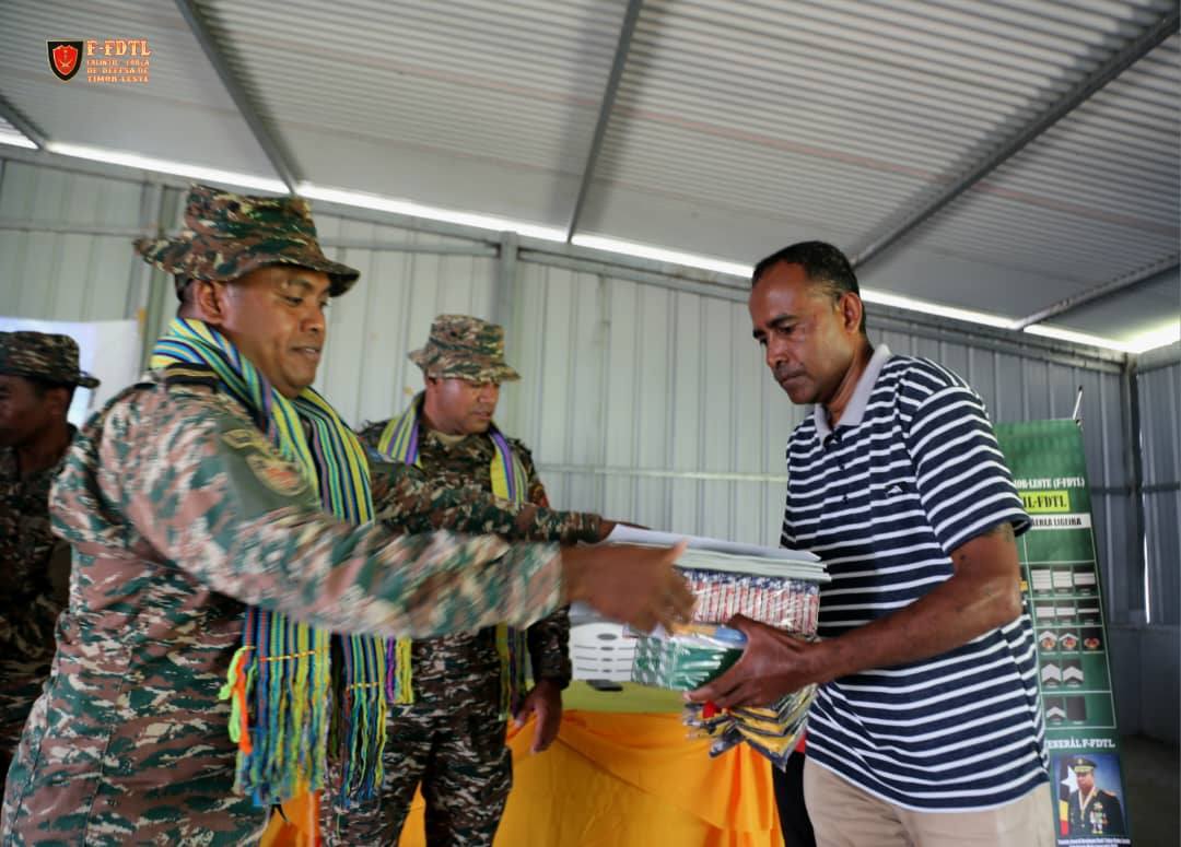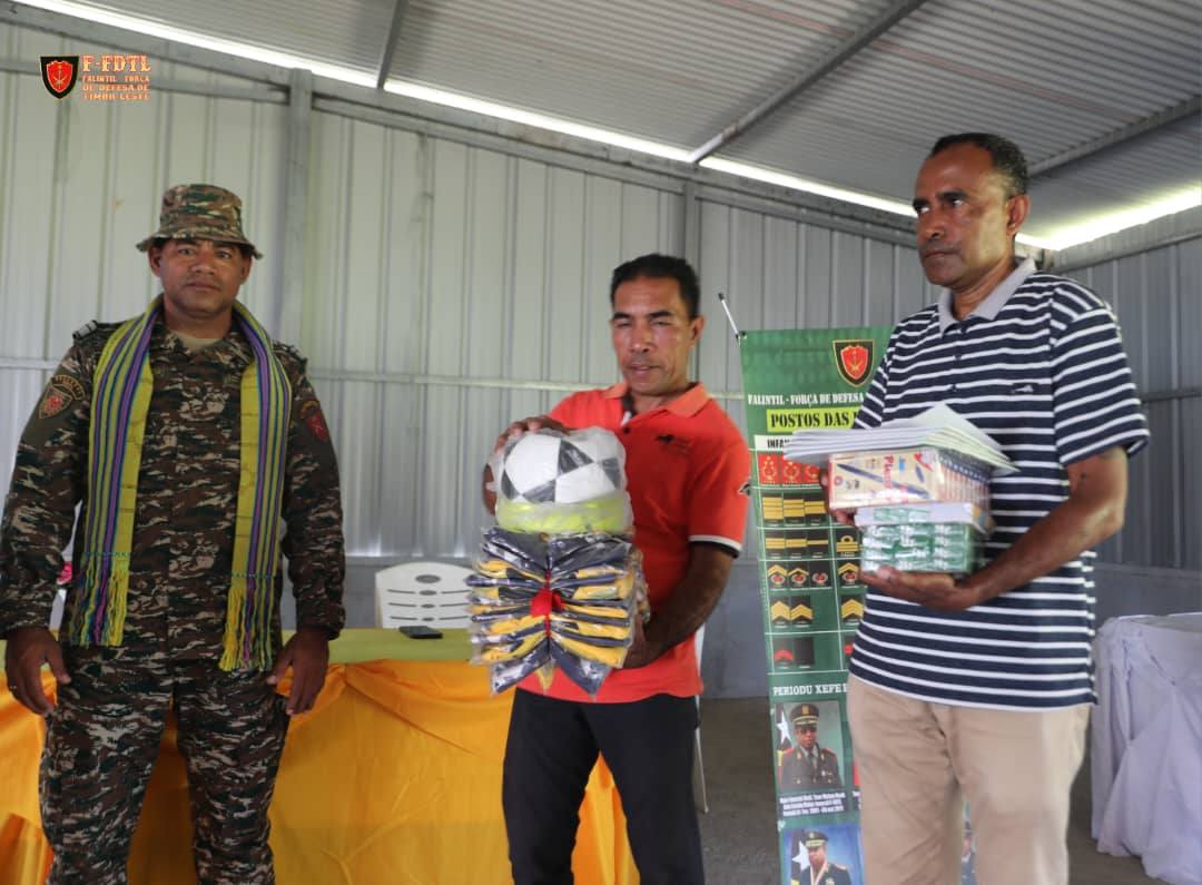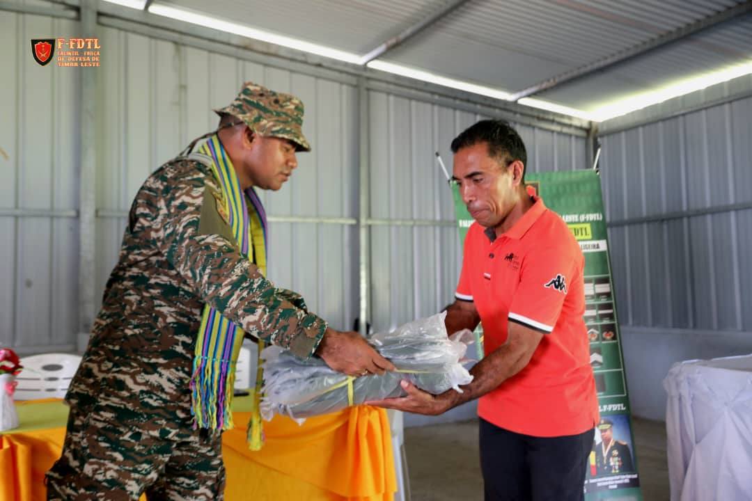 Hafoin Sesasaun Sosializasaun ne'e Komandu Tátiku Ezersísiu Cobra-25 entrega mós ekipamentus didátika hanesan Kazernu, Lapijeira, pasta, Bola, Farda joja Bola nst.