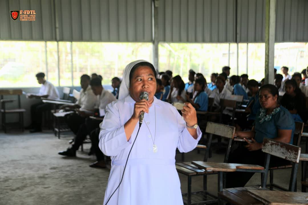 Relasiona ho Ezersísiu Cobra-25 ne'ebé realiza iha Munisípiu Ainaro, Postu Hatu-Udo, Suku Foho Ailiku ho nune'e F-FDTL Liu husi Komandu tátiku Ezersísiu Cobra-25 kontinua halo sosiliazaun iha Eskola ESG.Tastopa Hatu-Udo kona-bá Patriotismu, Nasionalismu inklui mós Saúde Militár.