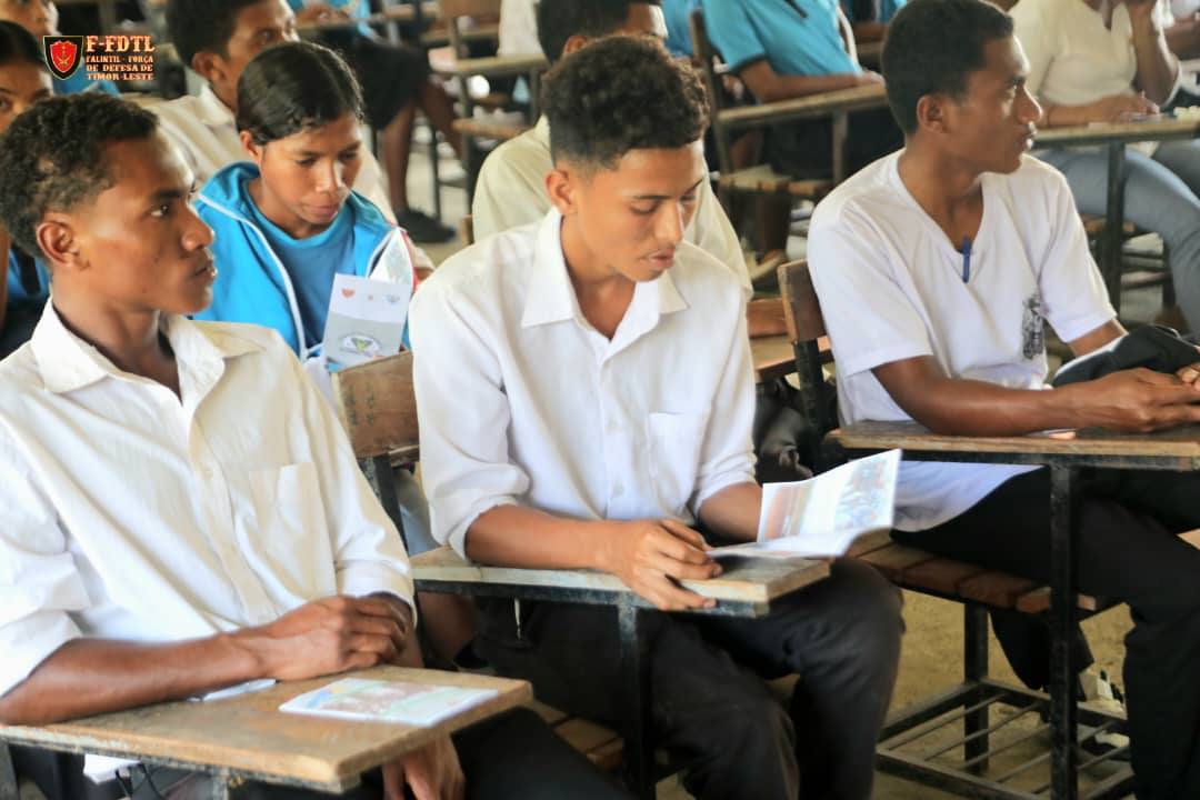 iha sesaun bá aktividade ne'e akompanha husi Komandu Tátiku Ezersísiu Cobra-25 Major Nugeira Quintas Larangina no hetan partisipasaun Maximu husi estudante inklui mós professores sira.