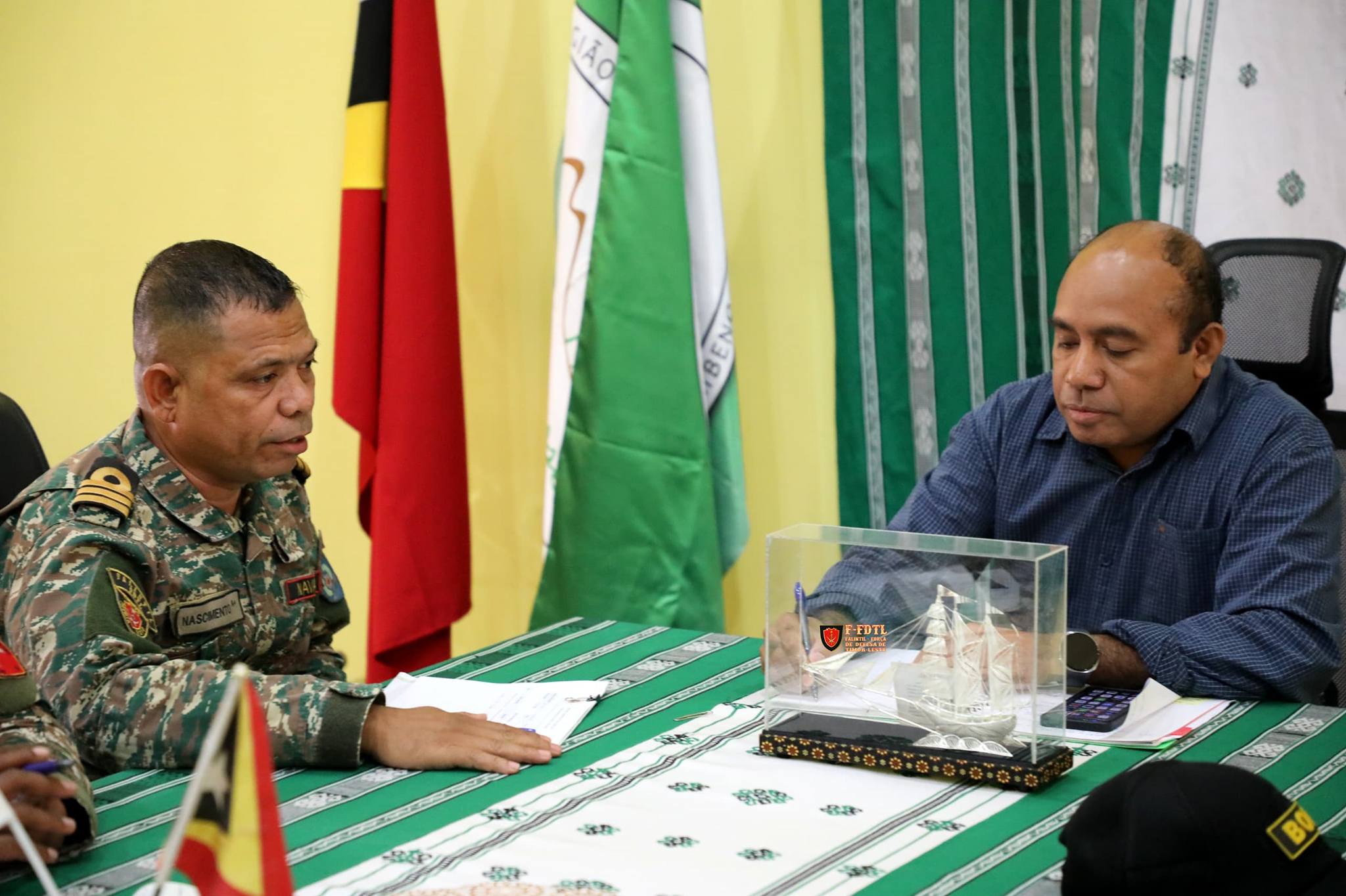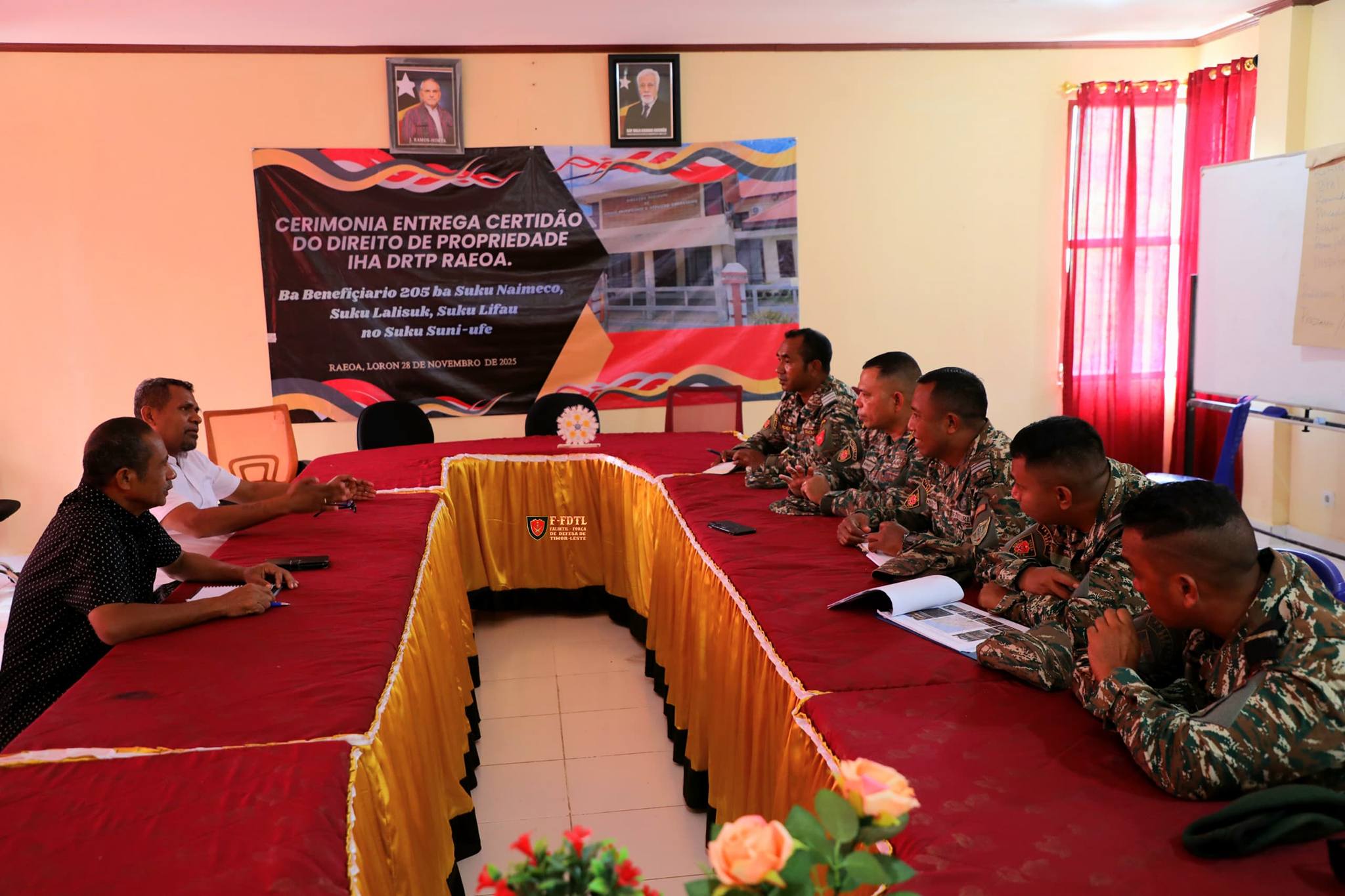 Hafoin to'o iha RAEOA 1° Tenente Nascimento ho Ekipa akompaña husi komandante Kompaña Postu Sikone kapitaun Infantaria Antonio Fonseca Borges hodi halo Audénsia ho Presidente Autoridade Regiaun Admistrativu Espesial Oekusse Ambeno (RAEOA) Dr.Regio da Cruz Salu hodi kolia liu kona-bá fatin ne'ebé mak Militár sira sei destaka bá hodi sai hanesan baze legal ida nune'e Forsa Enjinaria hodi kontinua halo servisu.