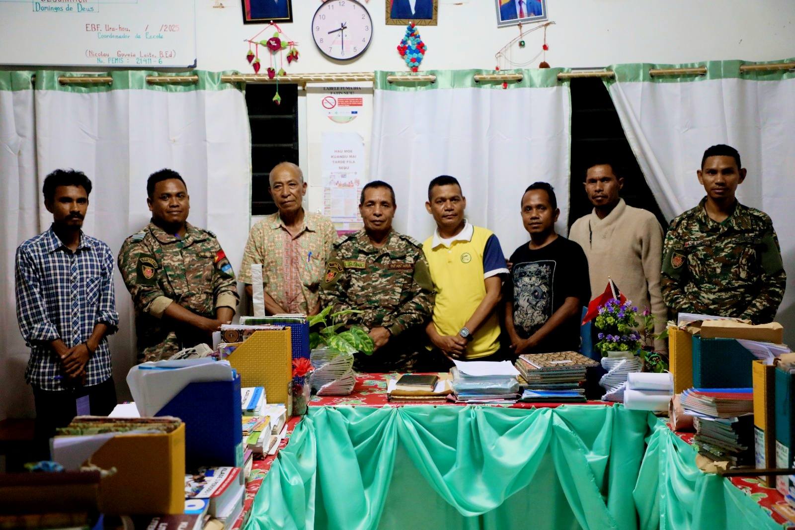 Objetivu husi enkontru kordenasaun ne'e maka iha tempo besik Komandu F-FDTL sei Lori ekipamentus didátiku sei bá distribui estudantes sira iha Munisípiu Ermera liuliu iha Eskola EBF Dato Soko Ura Hou.