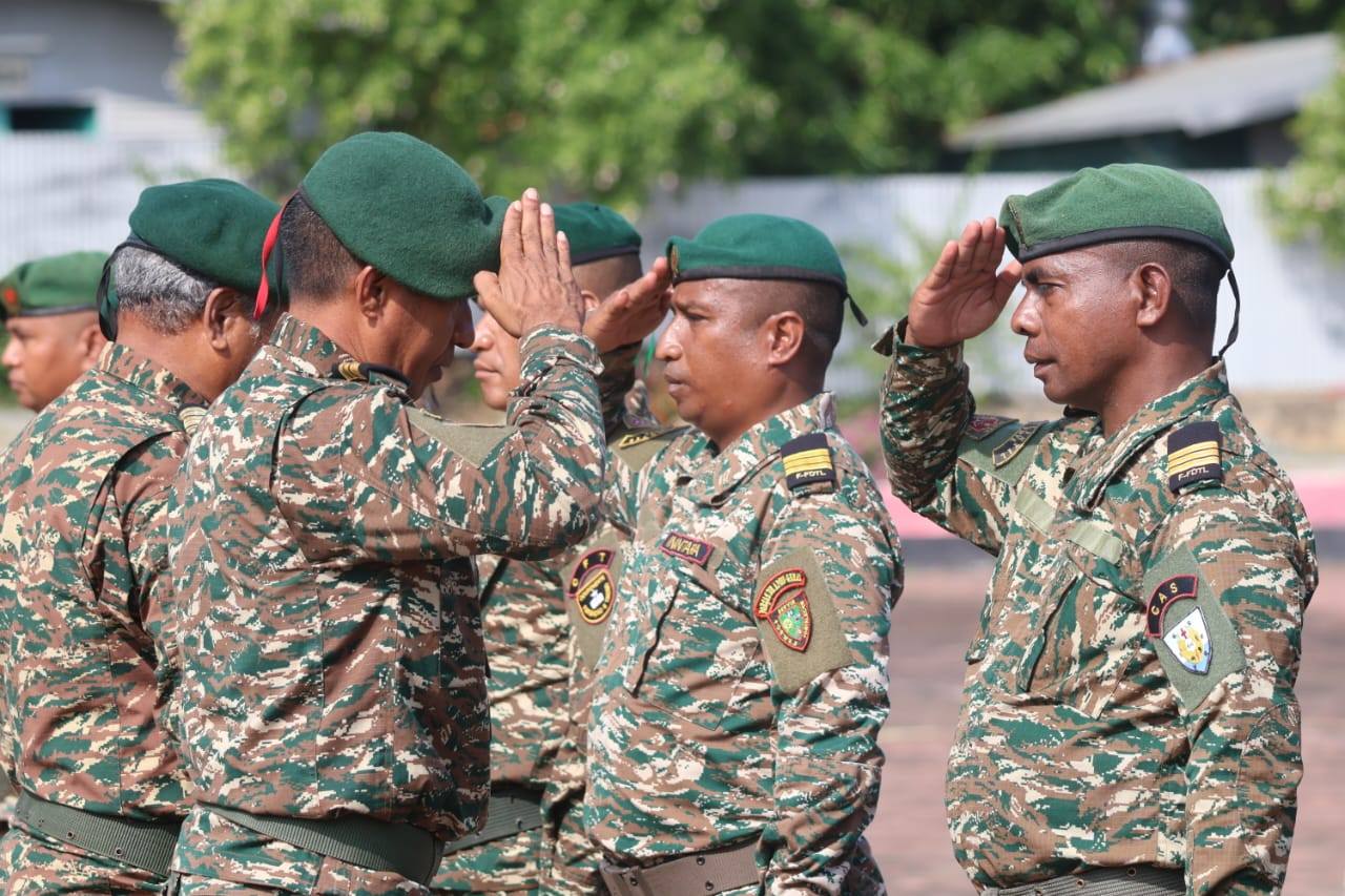 Komandu FALINTIL-Forsa Defeza Timor-Leste (F-FDTL) liu husi Forsa Apoiu Jeral ohin Realija serimónia promosaun no Kondekorasaun bá Militár sira iha Sentru Instrusaun Komandante Nicolau Lobato Metinaro.
