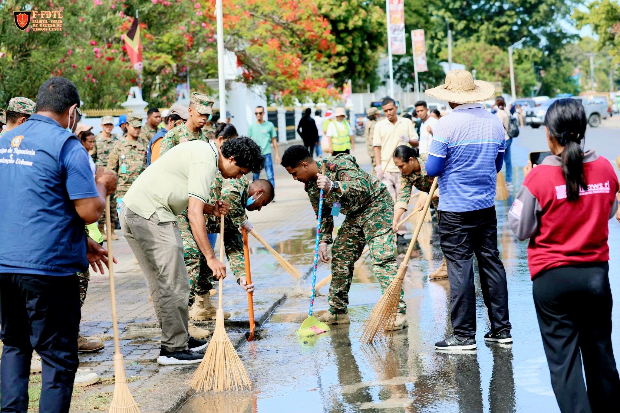 Komandu FALINTIL-Forsa Defeza Timor-Leste (F-FDTL) Liu husi Kuartel Jenerál F-FDTL ne'ebé lidera husi Tenente Infantaria Adalberto Viana, hamutuk ho Sekretariu Estadu Assunto Toponímia Organijasaun Urbana (SEATOU ) S.E Germano Santa Brites Dias, nomós Funsionariu tomak ohin halo Limpeja Jerál iha Dili laran, hahu husi Palasiu Prezidensiál Aitarak laran to'o iha Palasiu Governu.