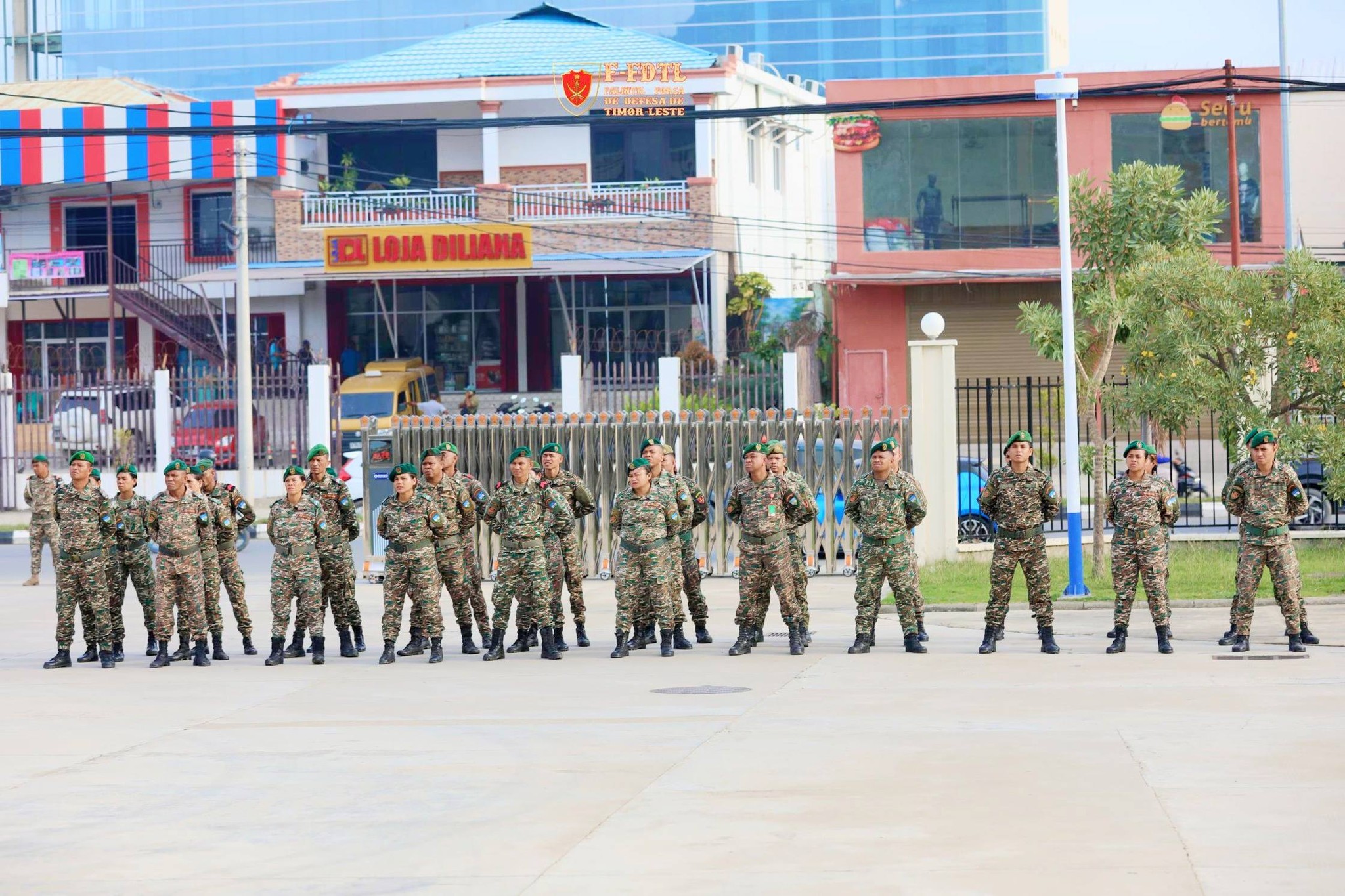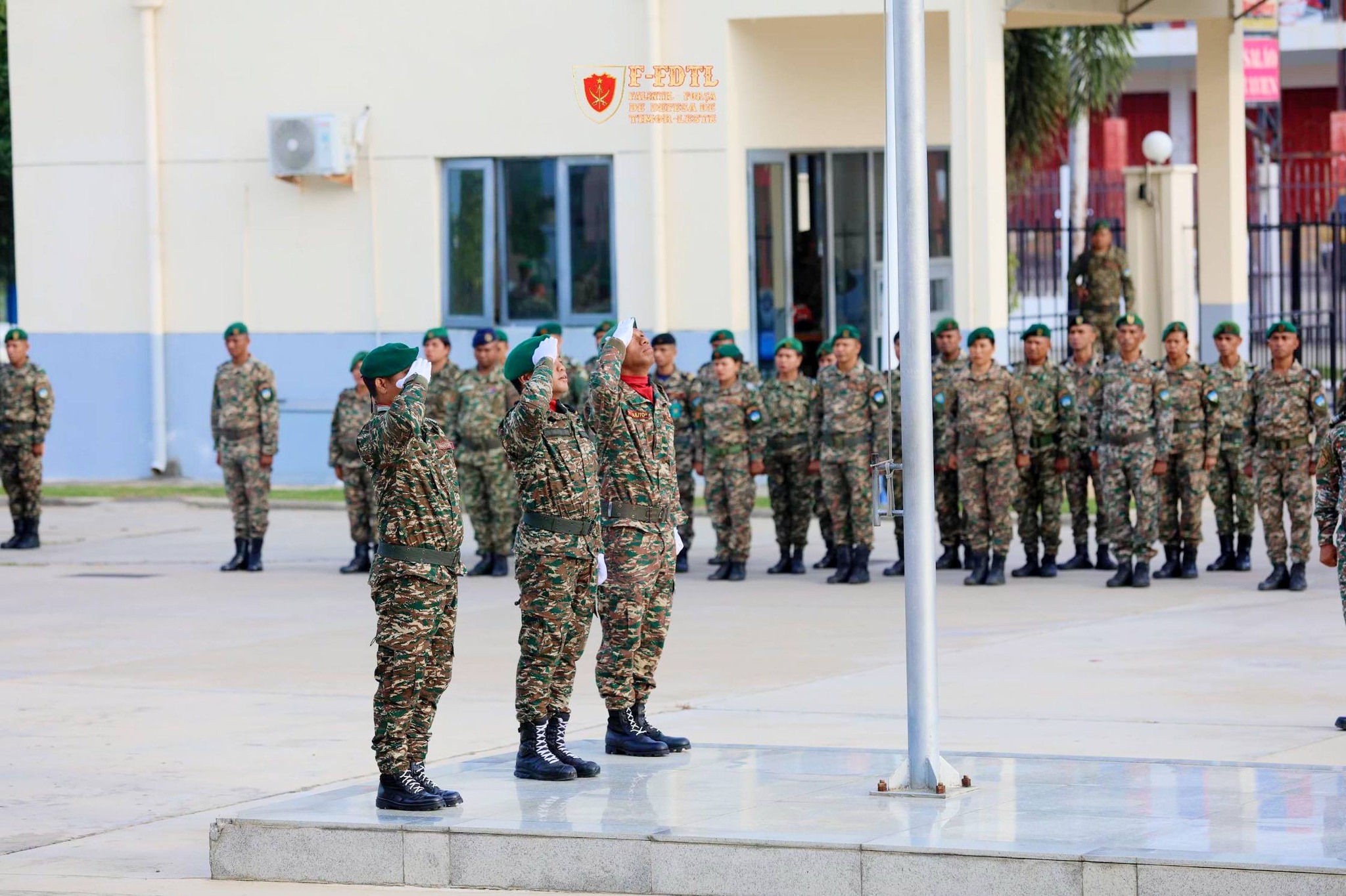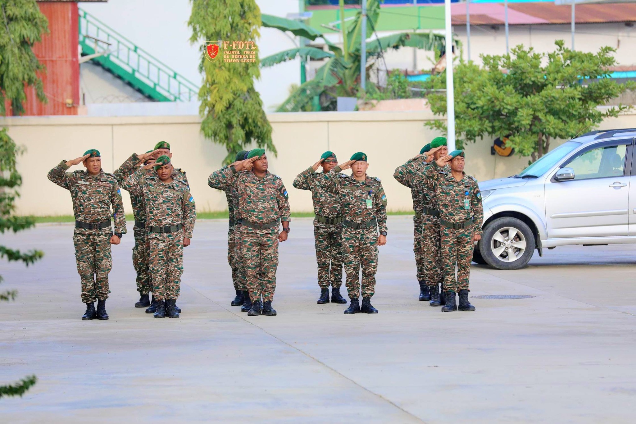FALINTIL-Forsa Defeza Timor-Leste (F-FDTL) hamutuk ho Funsionariu Ministériu Defesa (MD) Institutu Defeza Nasionál (IDN), Autoridade Marítima Nasionál (AMN) ohin realiza serimónia hasa'e Bandeira Nasionál bá semana dahuluk fulan marsu, iha resinto Kuartel Jenerál Fatuhada, Díli.