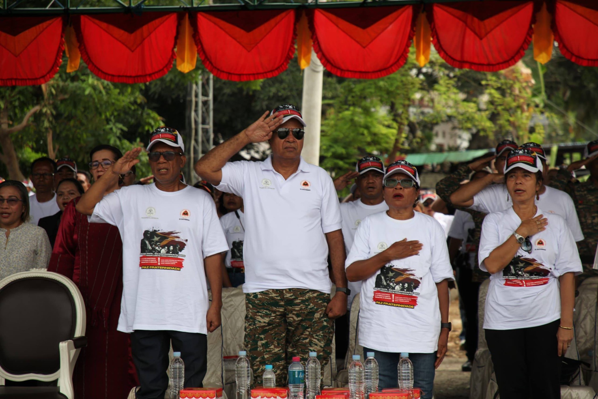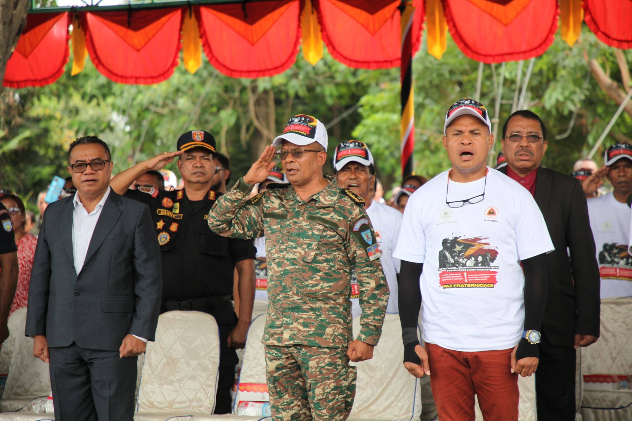 Xefe Estadu Maior Jenerál F-FDTL Tenente Jenerál Domingos Raúl "Falur Rate Laek" ho Estrutura F-FDTL partisipa iha selebrasaun loron erói Nasionál bá dala-VIII, 2017- 2025 hodi Komemora tinan 47 Saudozu prezidente Nicolau Lobato hakotu is husi arma-fogu inimigu nian iha rai Binani postu Admistrativu Turiscai.