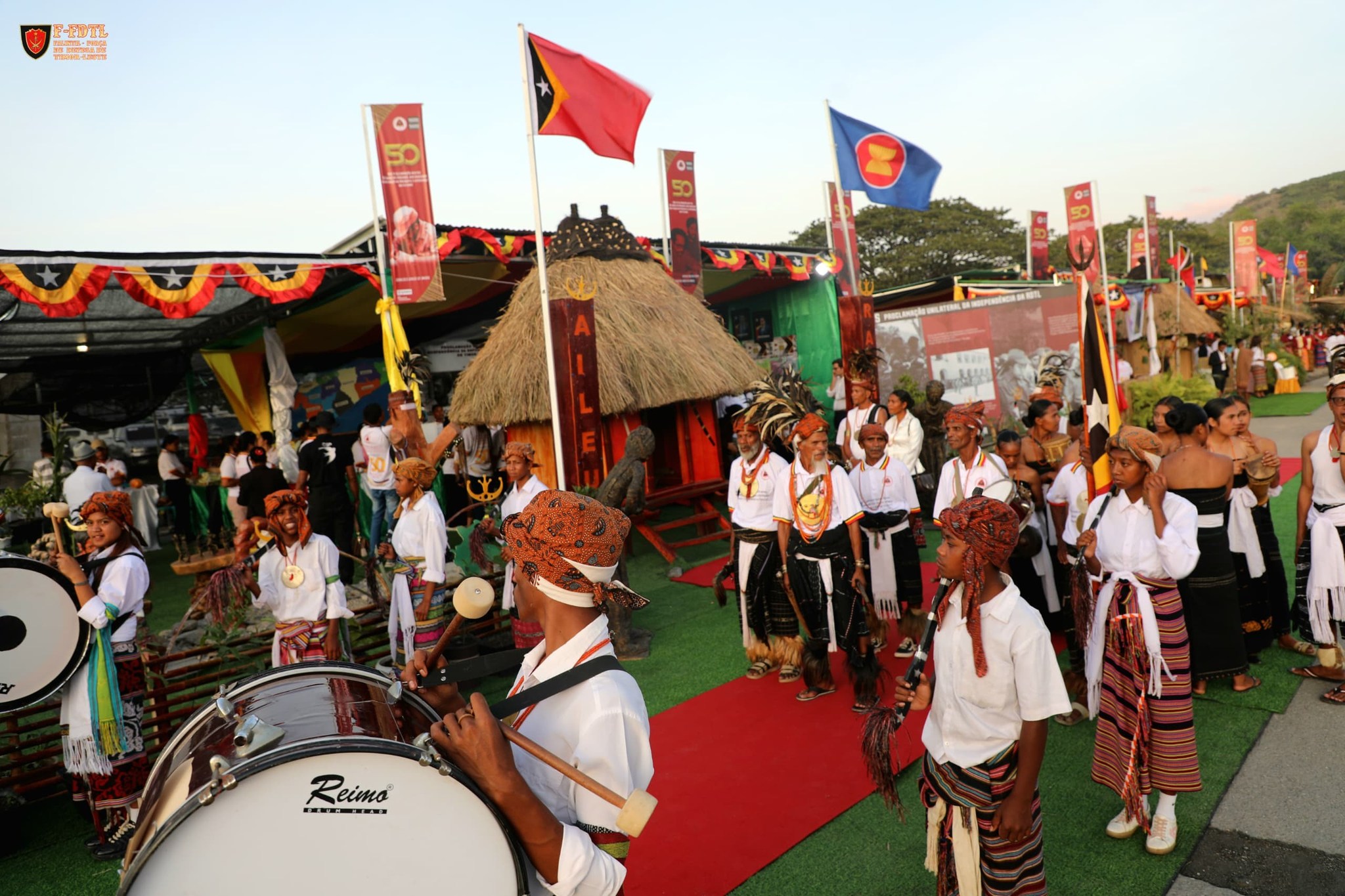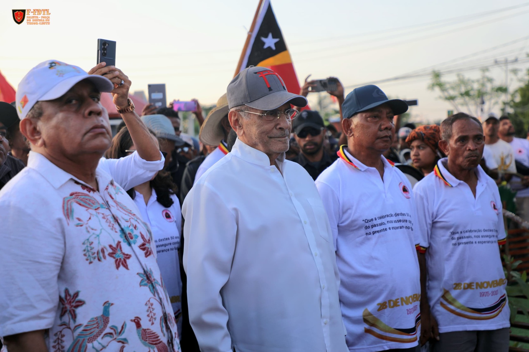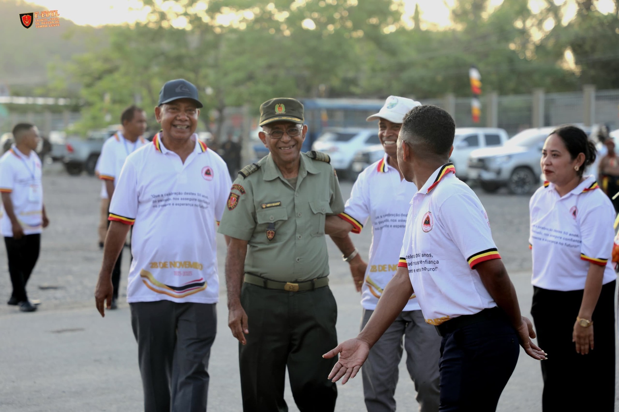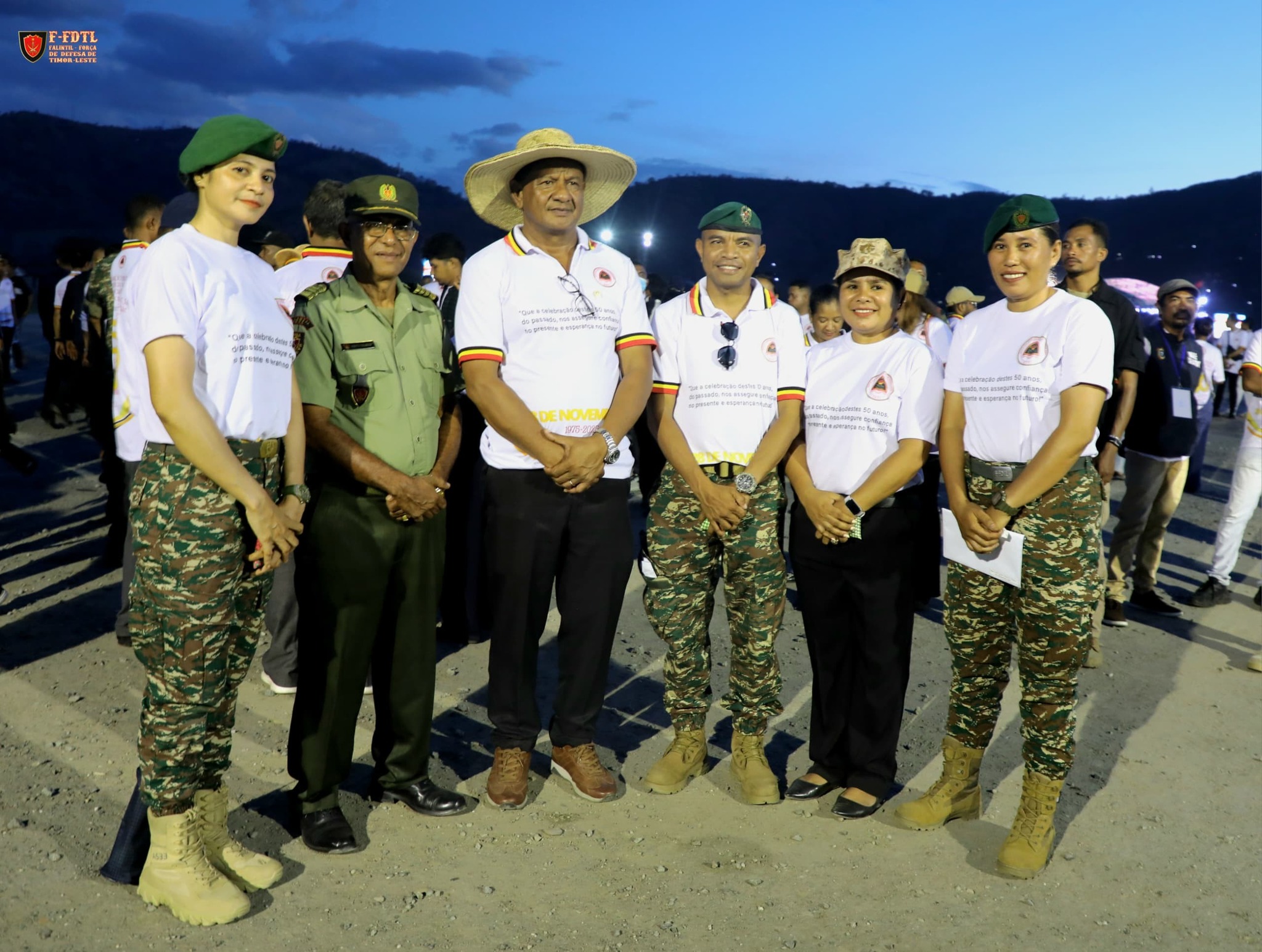 Komandu FALINTIL-Forsa Defeza Timor-Leste (F-FDTL) Liu husi Xefe Seksaun Apoiu jerál Coronel Alberto Pereira dos Santos akompaña husi Xefe Protokolu Major José Antonio Nunes da costa partisipa iha serimónia abertura Expozisaun iha Tasi tolu Dili hodi komemora loron Proklamasaun Independénsia Unilateralmente ba dala-50.