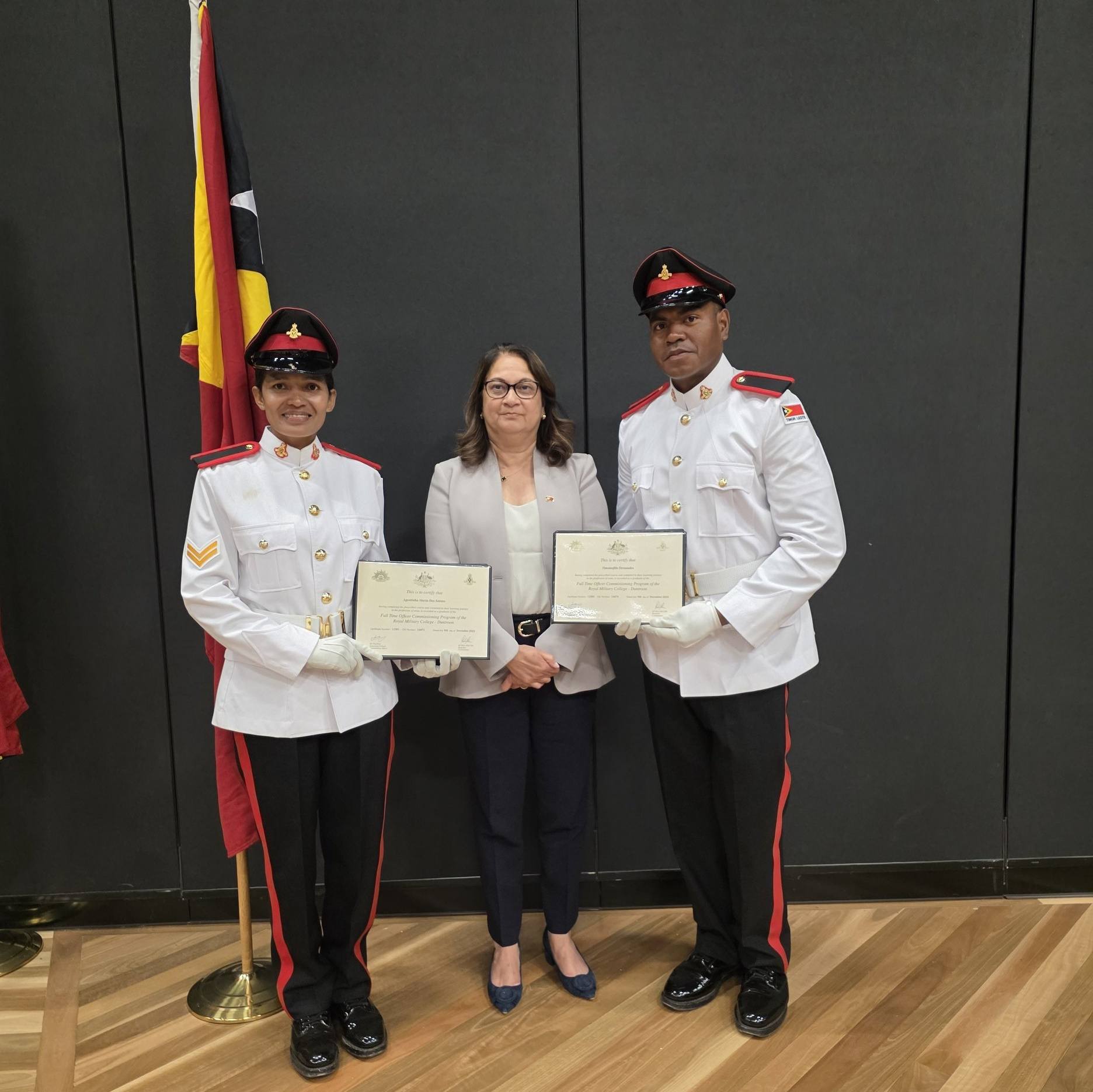 Iha serimónia graduasaun ne’e hetan prejensa husi Embaixador Timor-Leste bá Austrália Sra. Inês Almeida no Adido Defeza Timor-Leste bá Austrália Kapitaun Mar e Guerra João Silva.