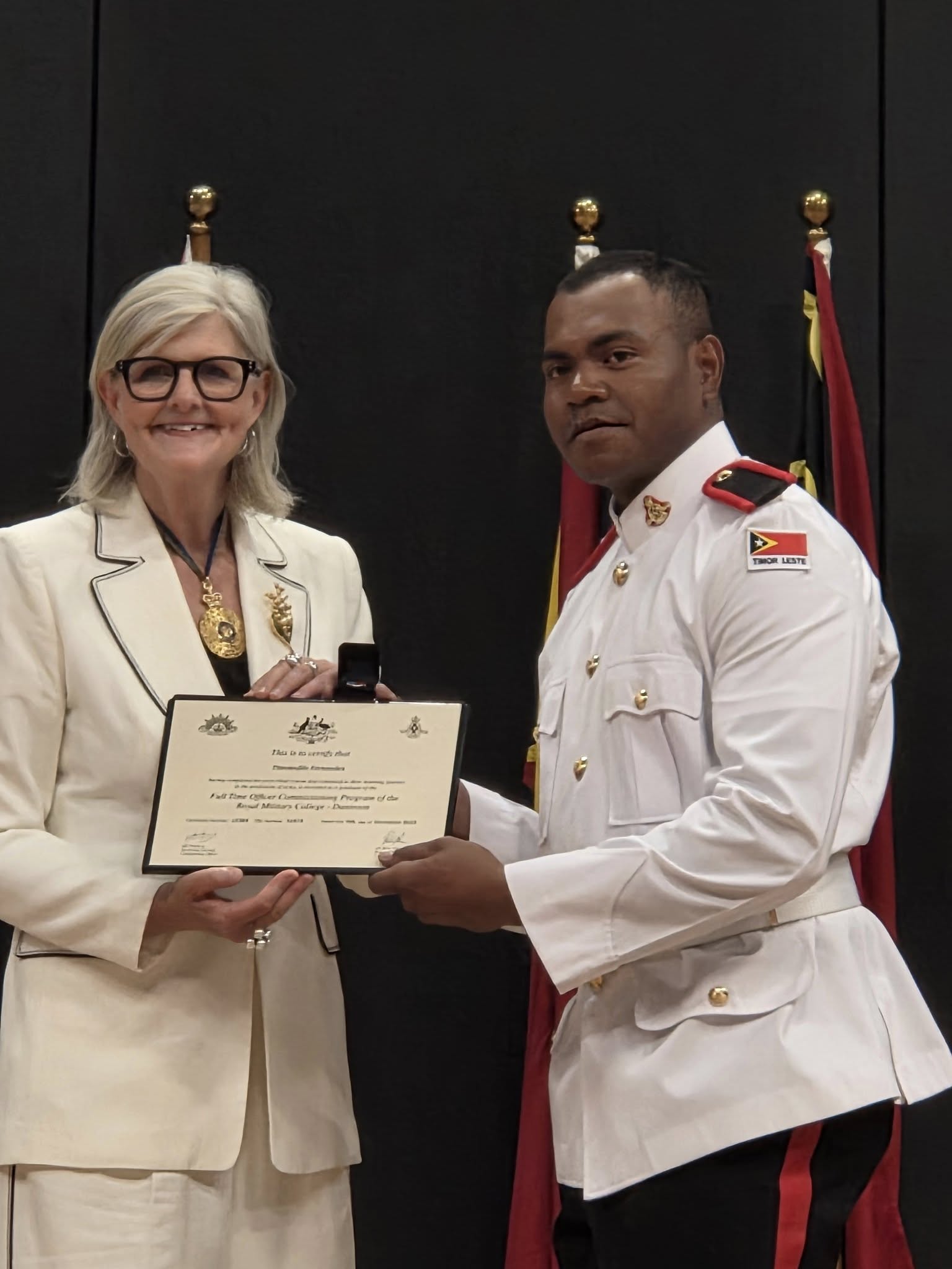 Marka Istória Iha Instituisaun F-FDTL Feto Dahuluk Remata Iha Eskola RMC Austrália
