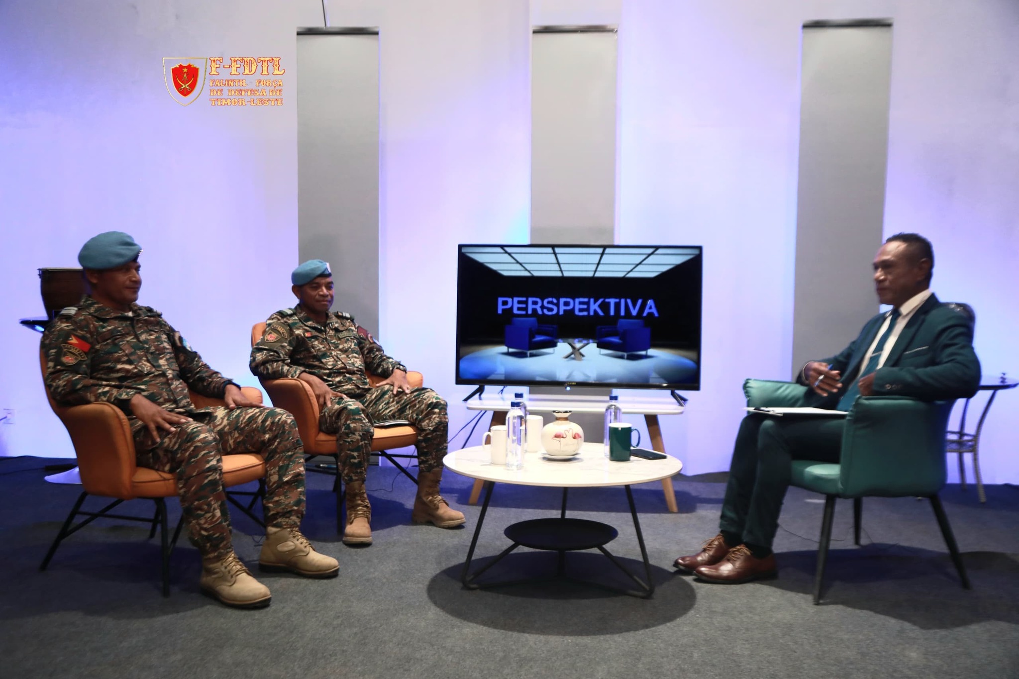Membru FALINTIL-Forsa Defeza Timor-Leste (F-FDTL) kompostu husi Ofisiais Superior nain rua ohin prense programa perspektiva iha Radio Televisão Timor-Leste ( rttl ep) mak hanesan Major Engenharia José António Nunes da Costa "Jeto" no Major Comandos Petrus Ceumfim.