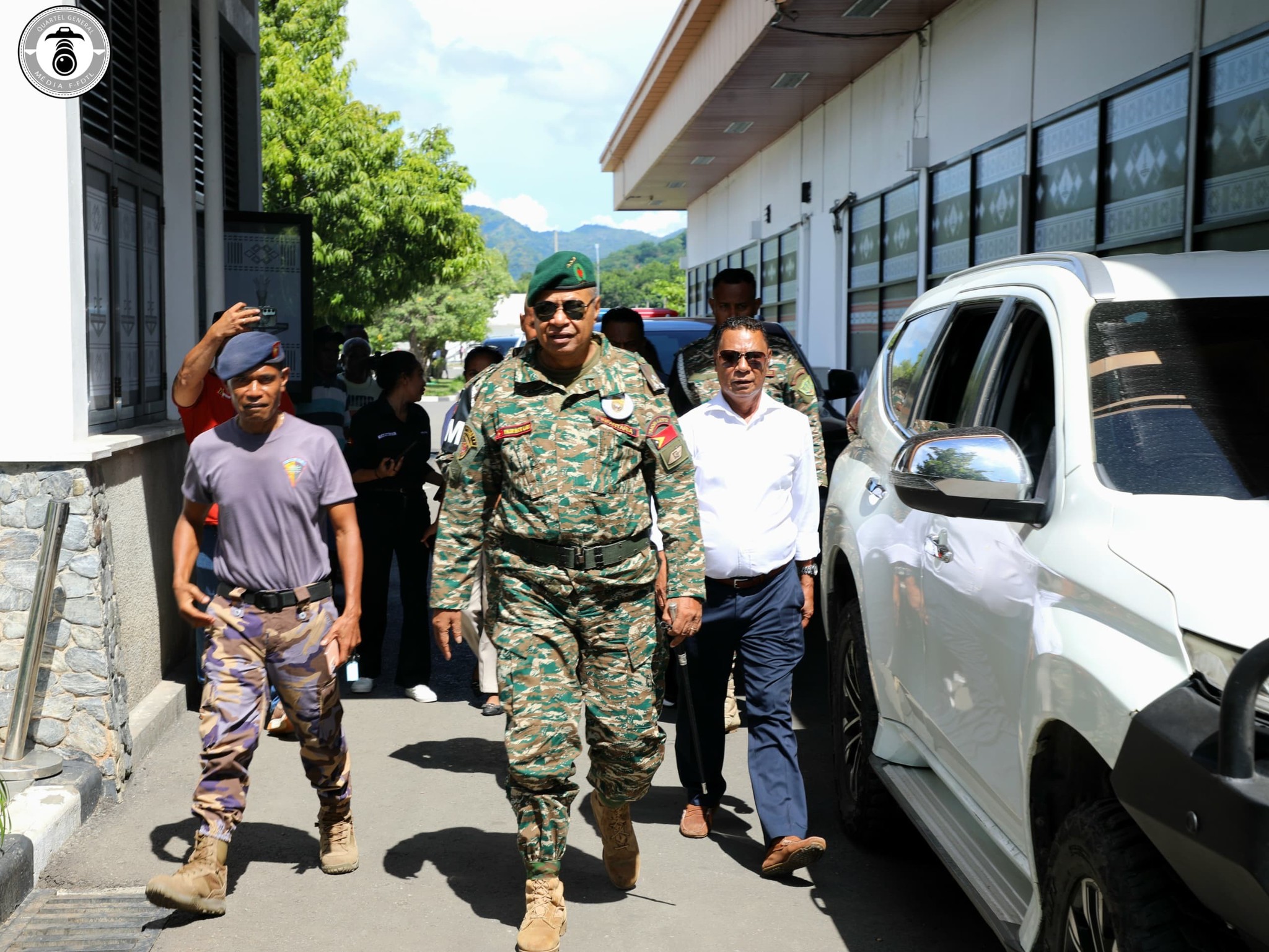 Xefe Estadu Maior Jenerál FALINTIL-Forsa Defeza Timor-Leste (F-FDTL) Tenente Jenerál Falur Rate Laek molok hala'o vizita servisu bá Rejiaun Administrativa Espesial Oekuse AMBENO (RAEOA) liu husi fronteira Terrestre to'o iha Mota-ain simu direta husi Konsul Timor-Leste bá Atambua Sr. Bonifacio Fatima Martins Belo ho ekipa no sei hasai foto hamutuk molok desloka bá RAEOA.