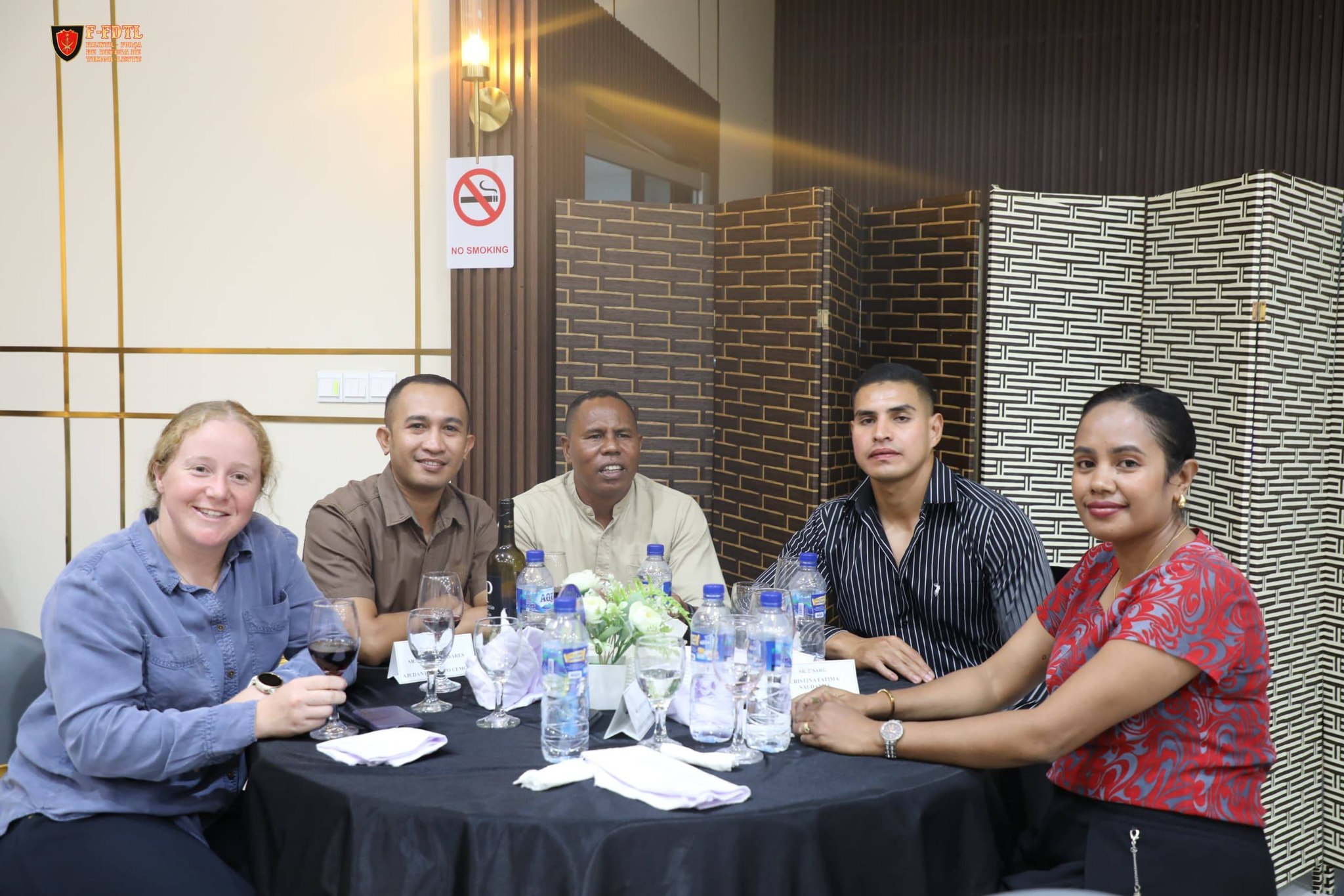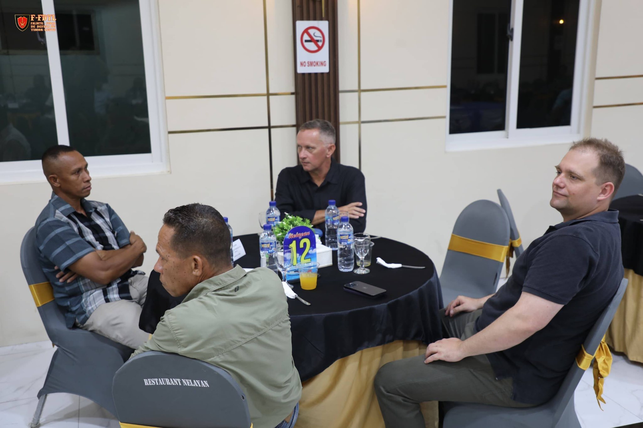 Jantar Konfraternizasaun ne'e hanesan. simbolu agradesimentu parseiru Internasionál sira nia servisu no kooperasaun ho F-FDTL Durante servisu hamutuk, Serimónia agradesimentu ne'e hala'o iha Nelayan Restaurant Bidau Partisipa husi Xefe Estadu Maior Jenerál F-FDTL Tenente Jenerál Falur Rate Laek, Xefe Estadu Maior F-FDTL Brigadeiro Jenerál José da Costa Soares"Trix", Representante Ministru Defeza, Komandante Componentes no Unidades Adidu Defeza sira, asesor internasionál inklui Ofisiais Superiores sira iha F-FDTL.