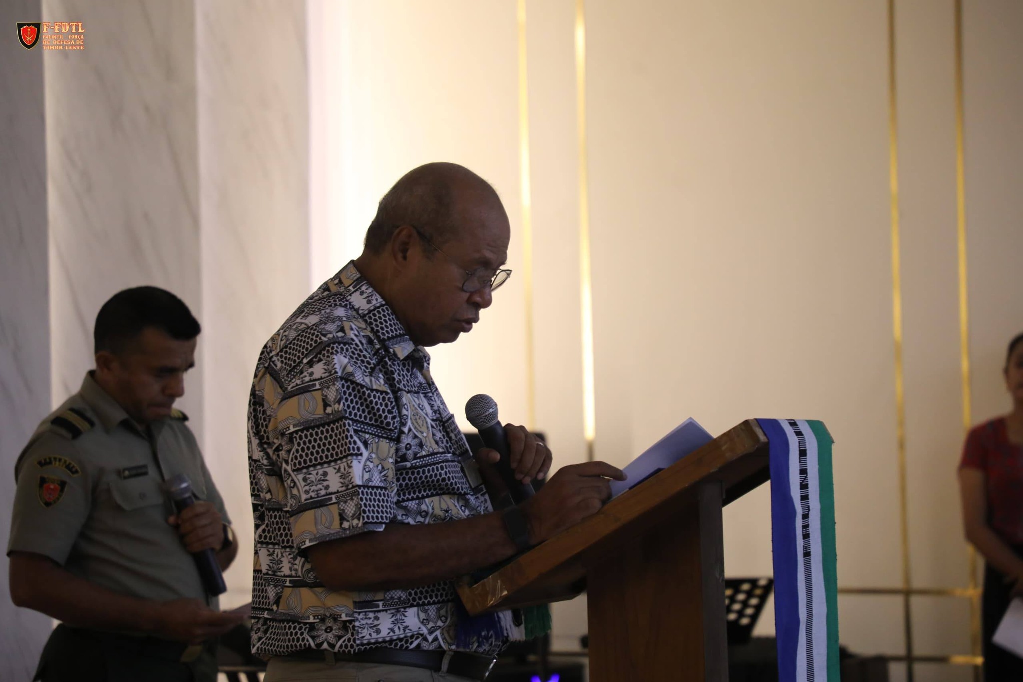 "Ita-boot sira nia prezensa iha ne'e hanesan testemuña ba kompromisu ida ne'ebé kontínua Evolusaun husi ami-nia Forsa Armada, husi tempu rezisténsia nian atu instituisaun moderna no profisionál ne'ebé ita iha ohin loron, deve barak ba ita-boot sira-nia apoiu tékniku, ita-boot sira-nia konsellu estratéjiku, no laran-luak husi ita-boot sira-nia nasaun no organizasaun sira. Ba deit konstante ida-ne'e, hato'o pesoál militár F-FDTL tomak nia naran, ami-nia rekoñese ne'ebé klean".