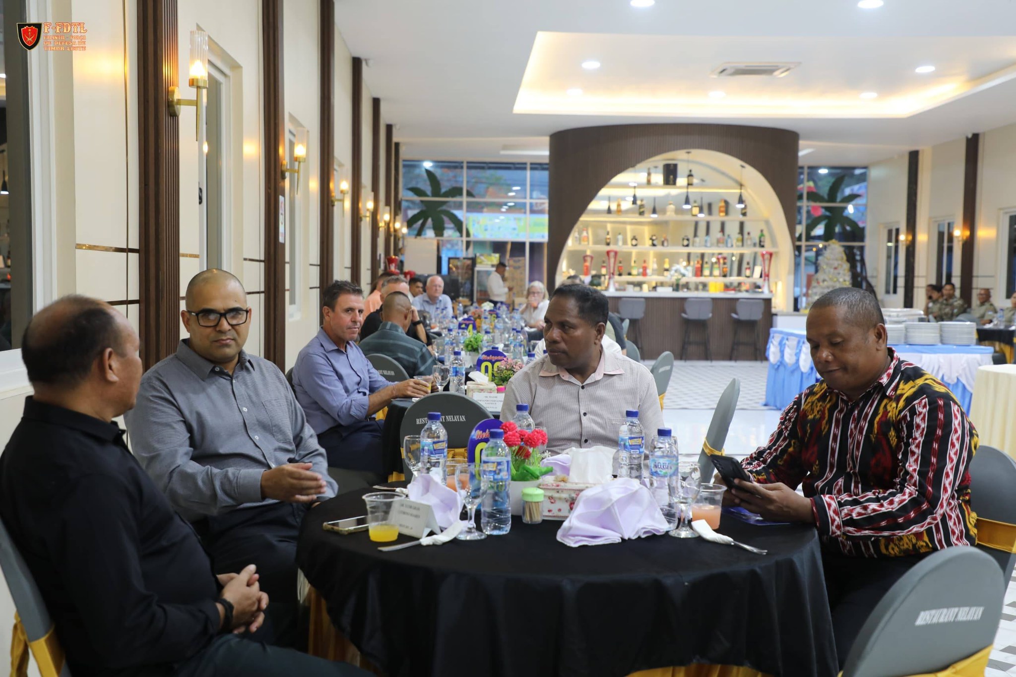 Xefe Estadu Maior Jenerál F-FDTL Tenente Jenerál Domingos Raúl " Falur Rate Laek" no Xefe Estadu Maior F-FDTL Brigadeiro Jenerál José da Costa Soares "Trix" akompaña mós husi Xefe Gabinete Ministru Defeza Hamutuk ho Komandante Komponente no Unidades Inklui Ofisiais Superiores sira iha Instituisaun F-FDTL Jantar konfraternizasaun ho parseiru dezenvolvimentu sira, asesor internasional sira iha Timor-Leste inklui Adidu defeza sira iha TL hanesan simbolu agradesimentu ida ho parseiru Internasional sira ne'ebé durante ne'e hala'o misaun iha Timor-Leste liu-liu kooperasaun ne'ebé diak ho Instituisaun F-FDTL molok simu tinan foun 2026.