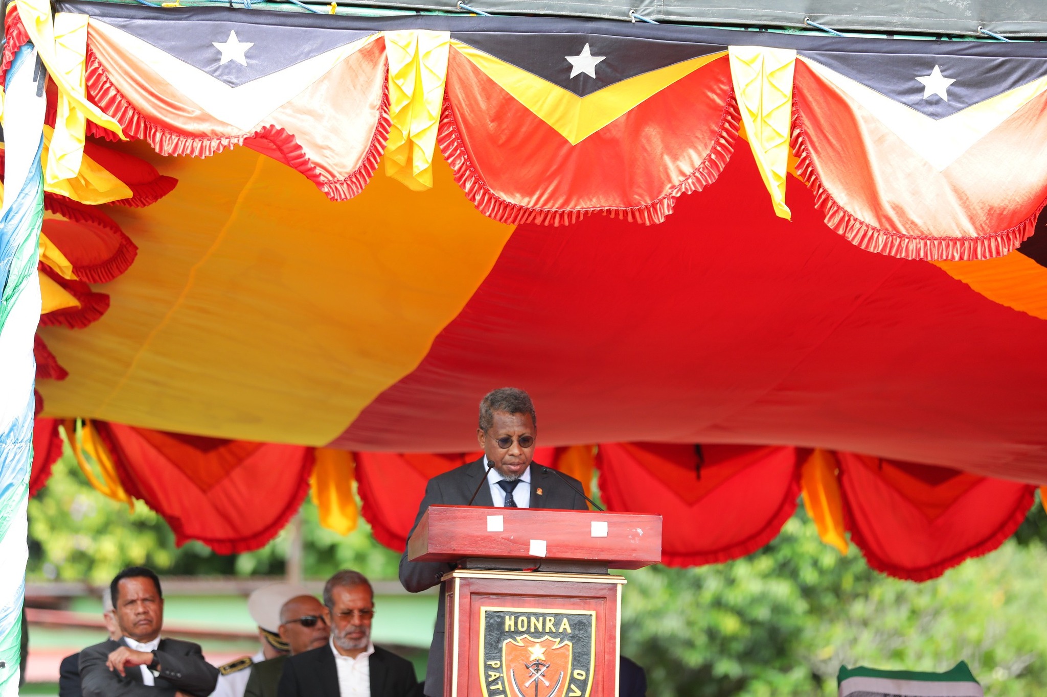 "Hau nia Agradesementu klean bá Koronel José Manuel Afonso no Luis Manuel Bernardino ne’ebé ho sira nia prezensa fó onra bá seremónia ida ne’e tanba sira nia Dedikasaun kompetensia no kapasidade relasiona ho libertasaun Forsa Fundasaun ida ne’ebé ita harii F-FDTL."