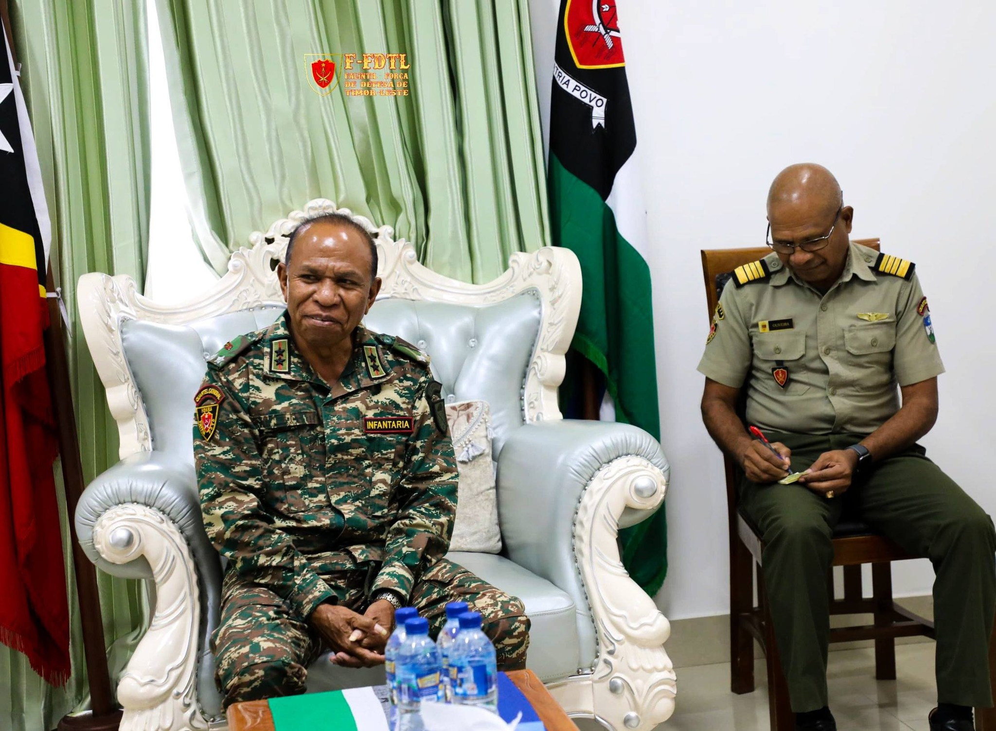 Vise Xefe Estadu Maior Jenerál FALINTIL-Forsa Defeza Timor-Leste (F-FDTL) Major Jenerál Calisto Santos 'Coliati' ohin simu vizita kortezia husi Adido Defesa Naval do Exército no Aeronáutika, bá Indonésia Vietnam inklui Timor-Leste Koronel Vitor Hugo BERGAMASCH, Husi Nasaun Brazil, iha kna'ar fatin Kuartel Jenerál F-FDTL, Fatuhada, Dili.