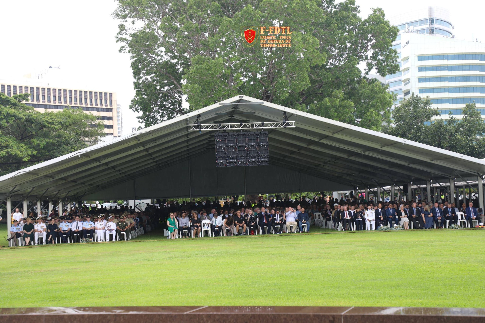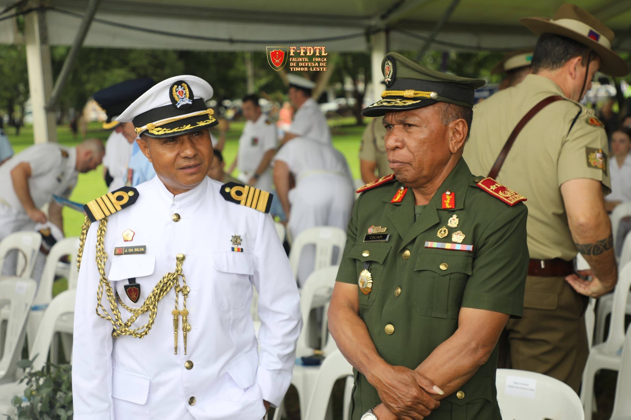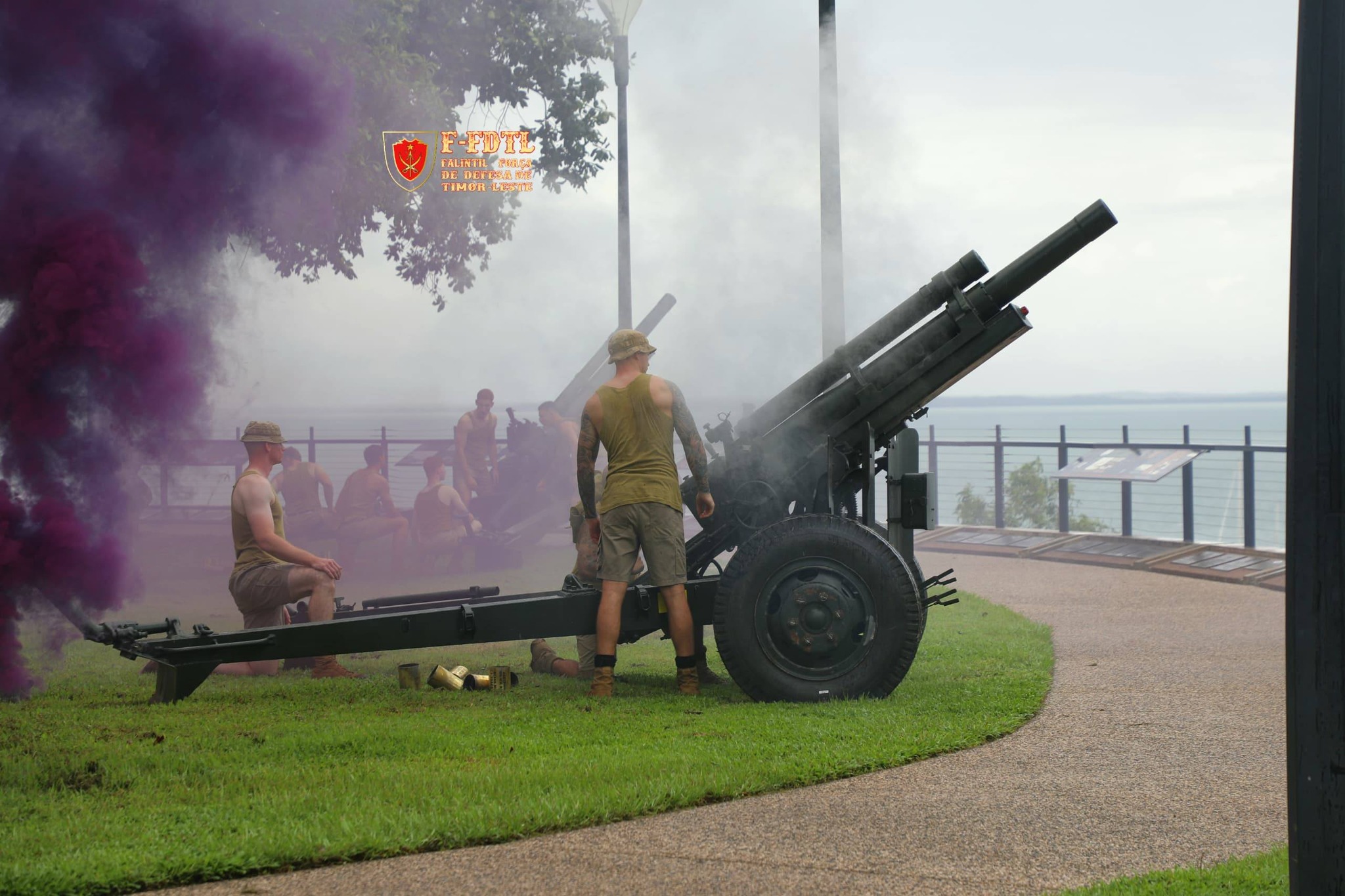 Iha serimónia komemorasaun Bombardimentu ne’e, Vise Xefe Estadu Maior Jenerál FALINTIL-Forsa Defeza Timor-Leste (F-FDTL) Major Jenerál Calisto Santos ‘Coliati’ hetan akompanha mós husi Adido Defeza Timor-Leste bá Austrália Kapitaun Mar e Guerra João da Silva.