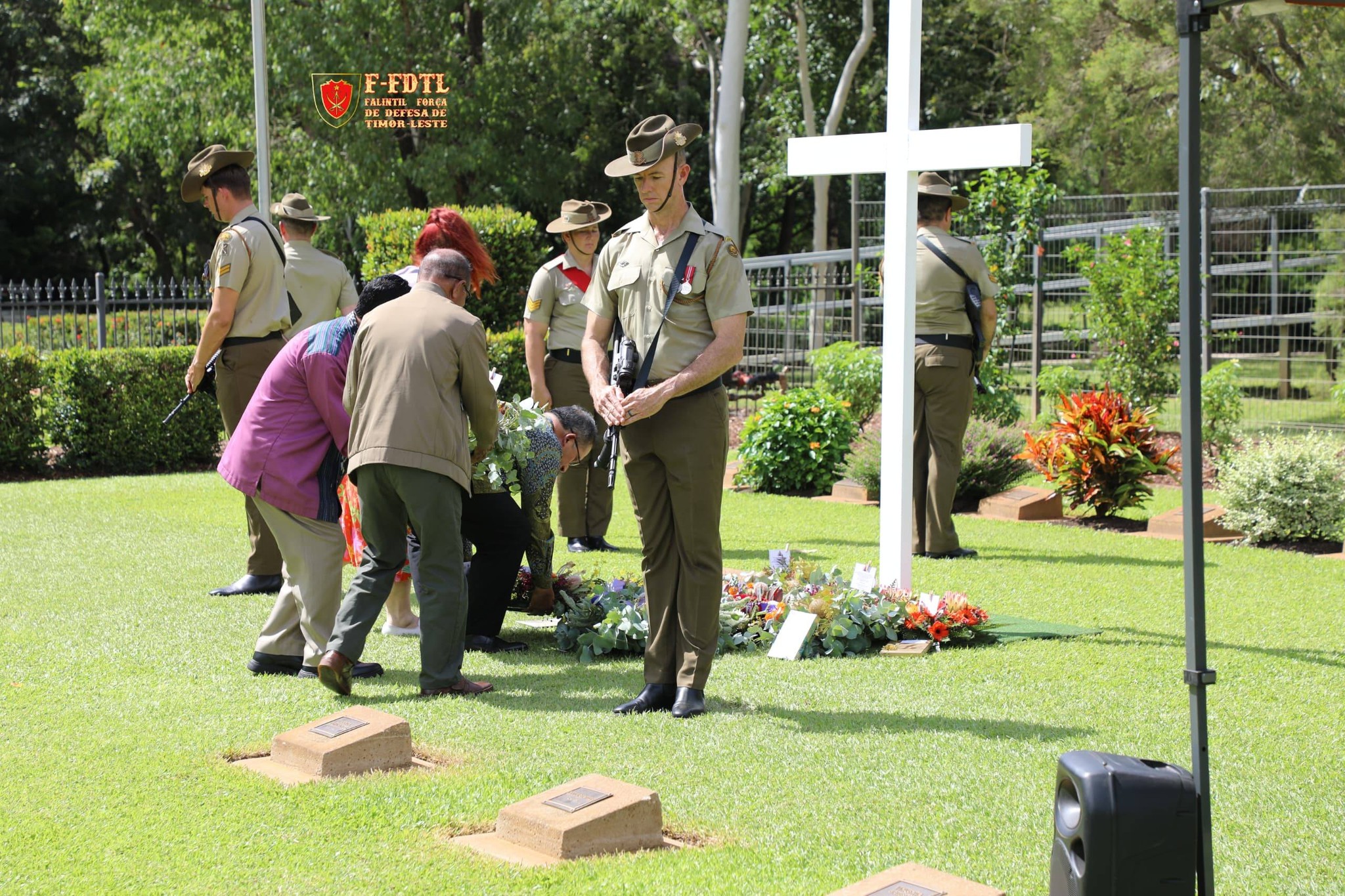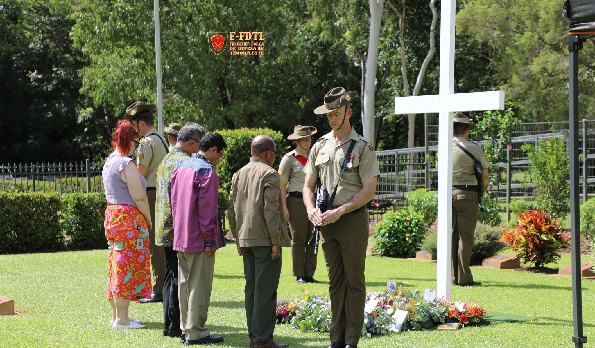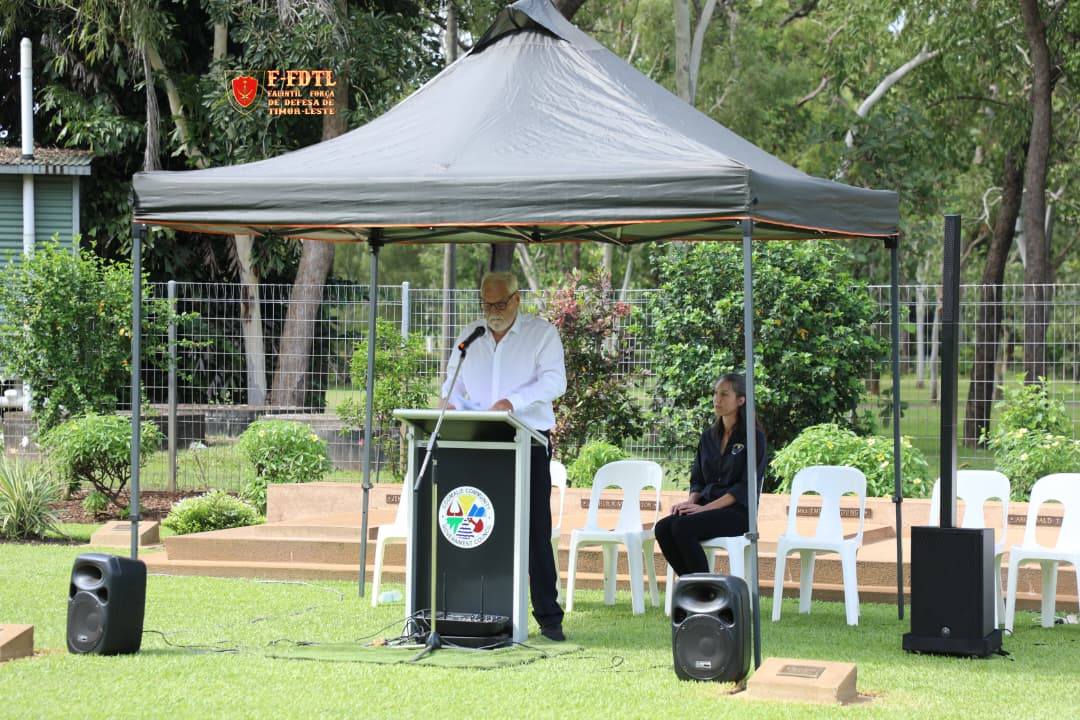 Vise Xefe Estadu Maior Jenerál FALINTIL-Forsa Defeza Timor-Leste (F-FDTL) Major Jenerál Calisto Santos ‘Coliati’ halo vijita bá semiteriu Militár hodi tau Aifunan no presta omenajem bá heróis sira, wainhira partisipa iha serimónia komemorasaun loron Bombardimentu iha Darwin Austrália.