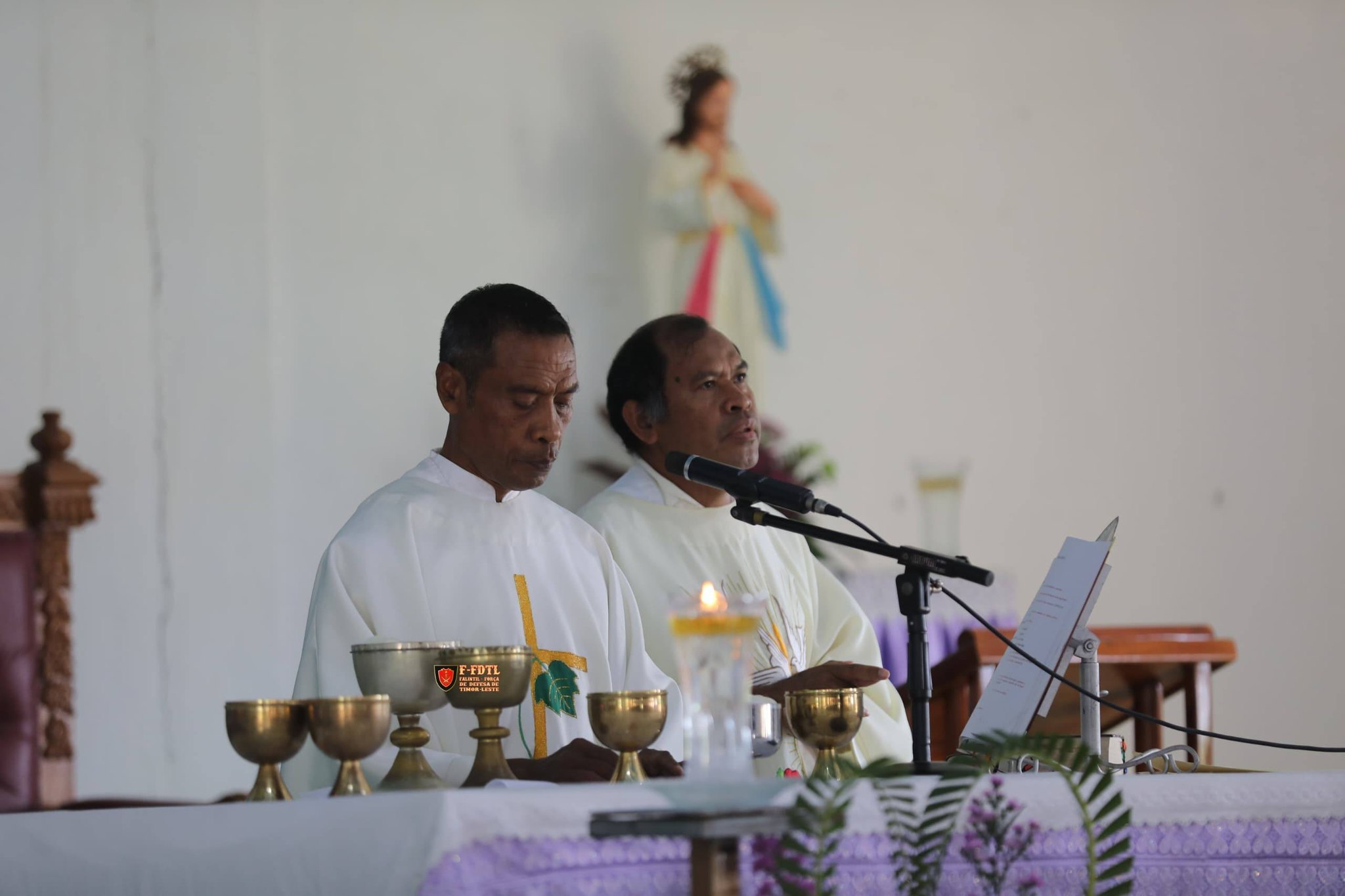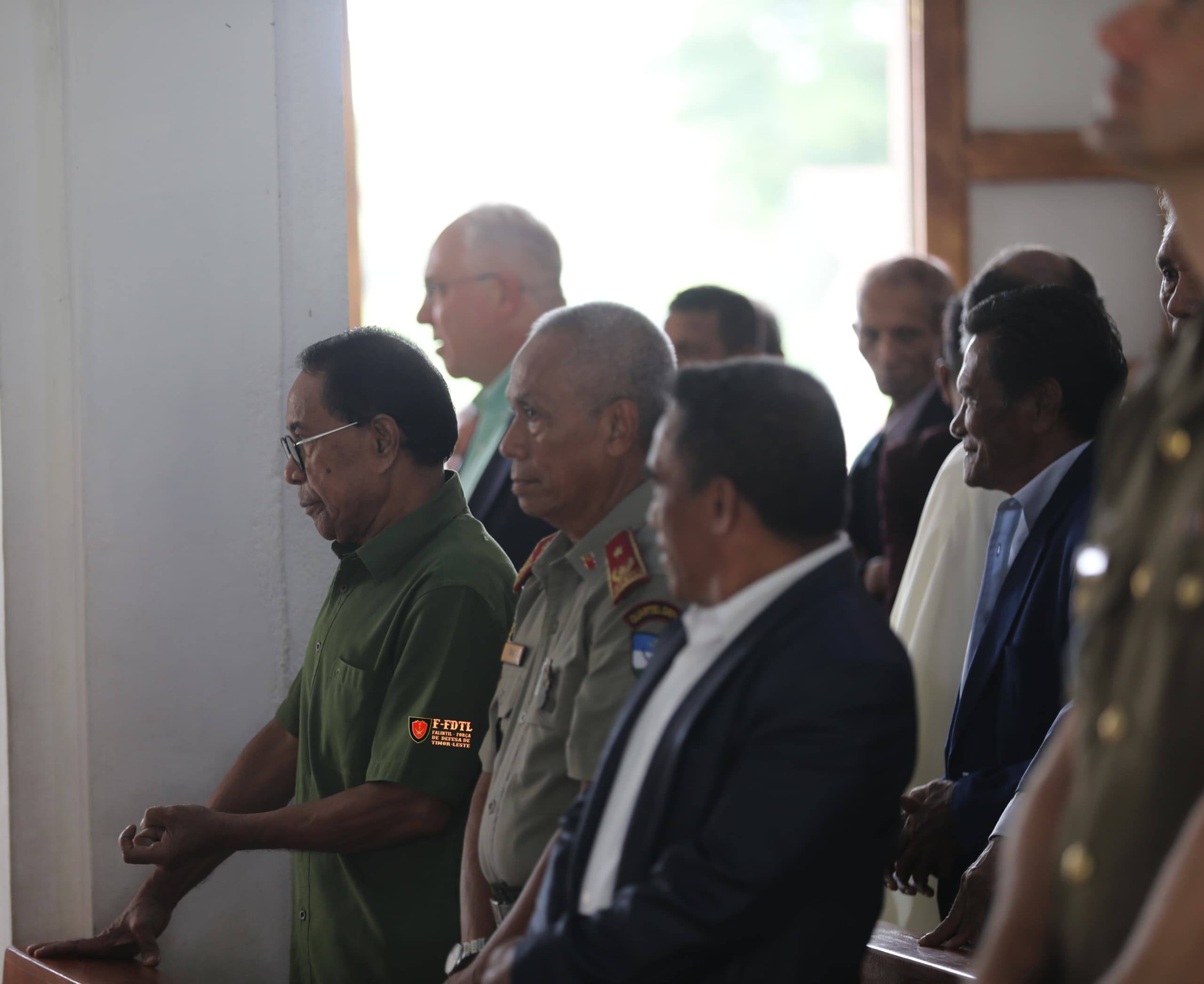 Xefe Estadu Maior F-FDTL Brigadeiro Jenerál José da Costa Soares "TRIX" akompaña mos husi Xefe Gabinete CEMGFA Koronel Marcelino Ximenes "Rizai" no mós Ofisiais Jenerais no Superiores husi FALINTIL-FDTL partisipa misa agradesimentu bá selebrasaun loron Nasionál Veteranus bá dala-9 iha Igreja Parokia Nossa senhora de grasa metinaru.