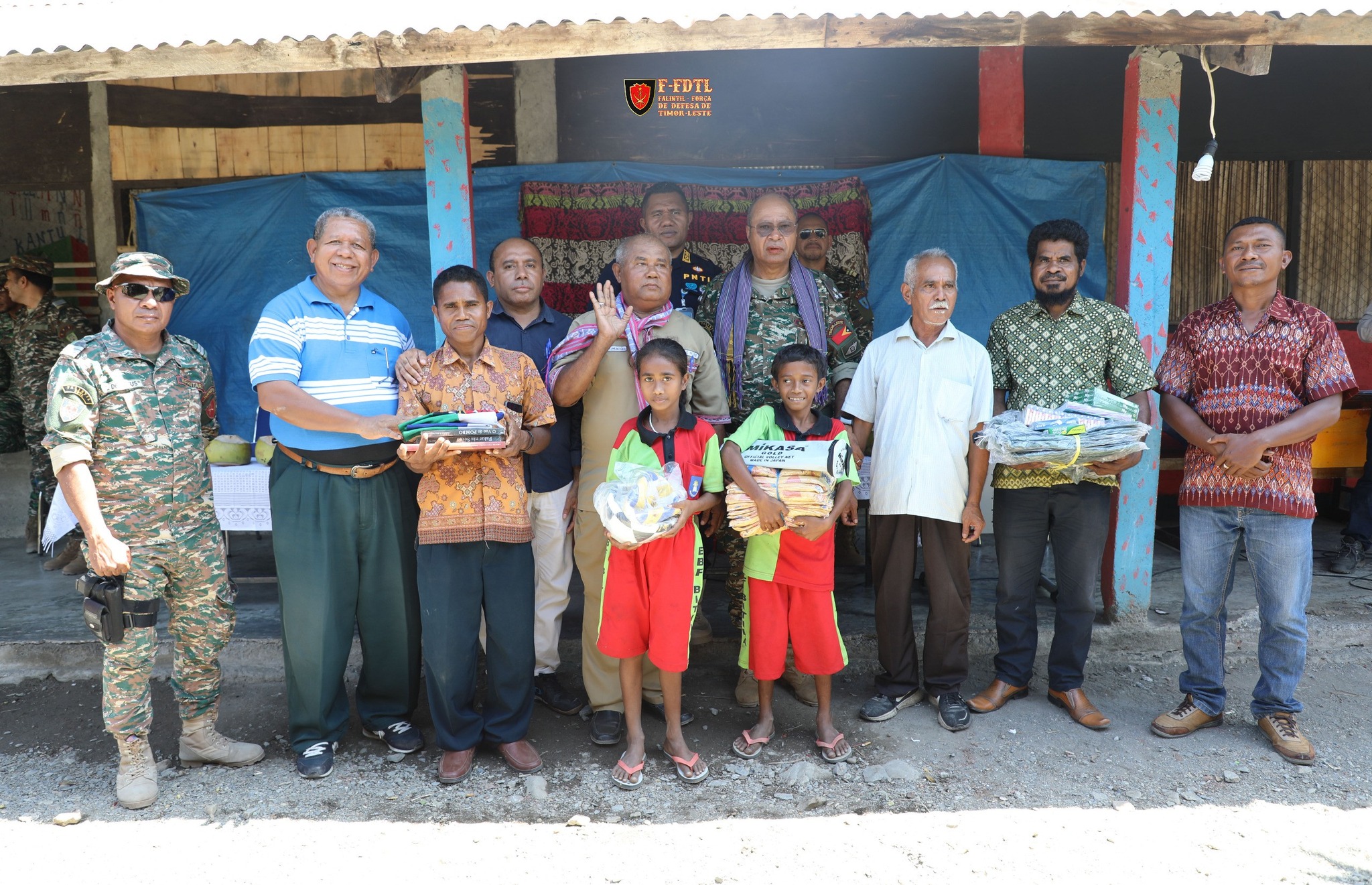 Iha intervista Xefe Estadu Estadu Maior Jenerál FALINTIL-Forsa Defeza Timor-Leste (F-FDTL) Tenente Jenerál Falur Rate Laek hateten, ne’e hola parte iha apoiu kooperasaun Sivil Militár nian, ne’e mak hanesan ohin ita fahe sasan sira ne’e bá estudante sira tamba sira maka futuru bá rai no Nasaun ida ne’e nian.