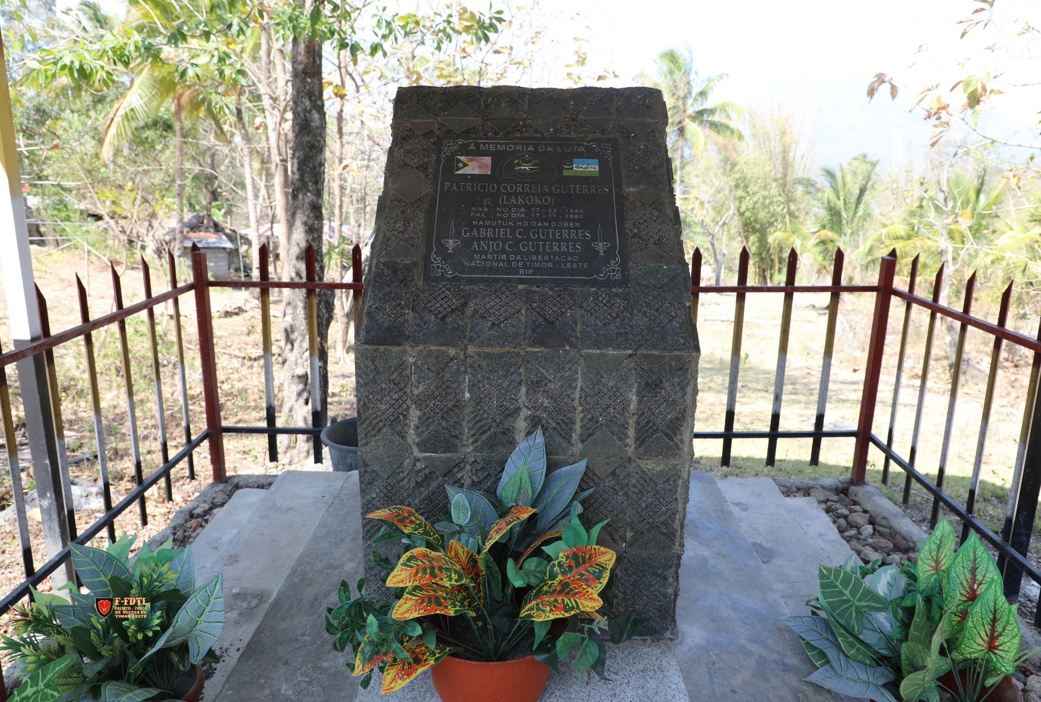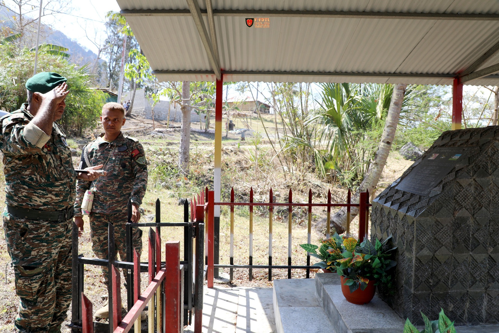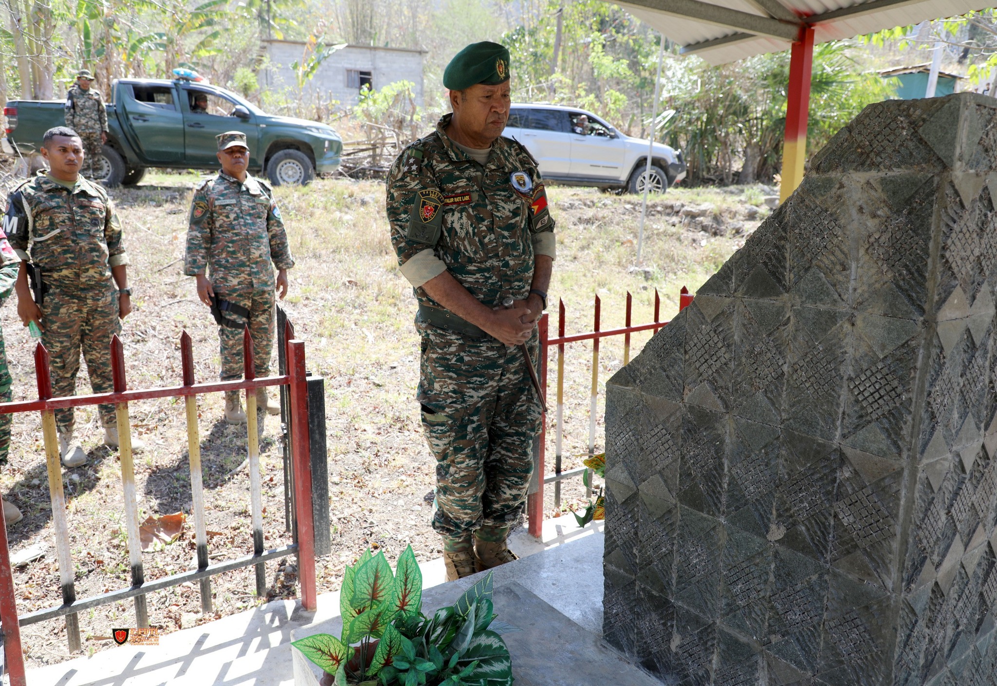 Xefe Estadu Maior Jenerál FALINTIL-Forsa Defeza Timor-Leste (F-FDTL) Tenente Jenerál Falur Rate Laek, fó omenajem no kontinensia bá monumentu Saudozu Patricio Correia Guterres "LAKOKO" iha Bercoli Venilale Munisípiu Baucau, bainhira tuir dalan mai Dili.