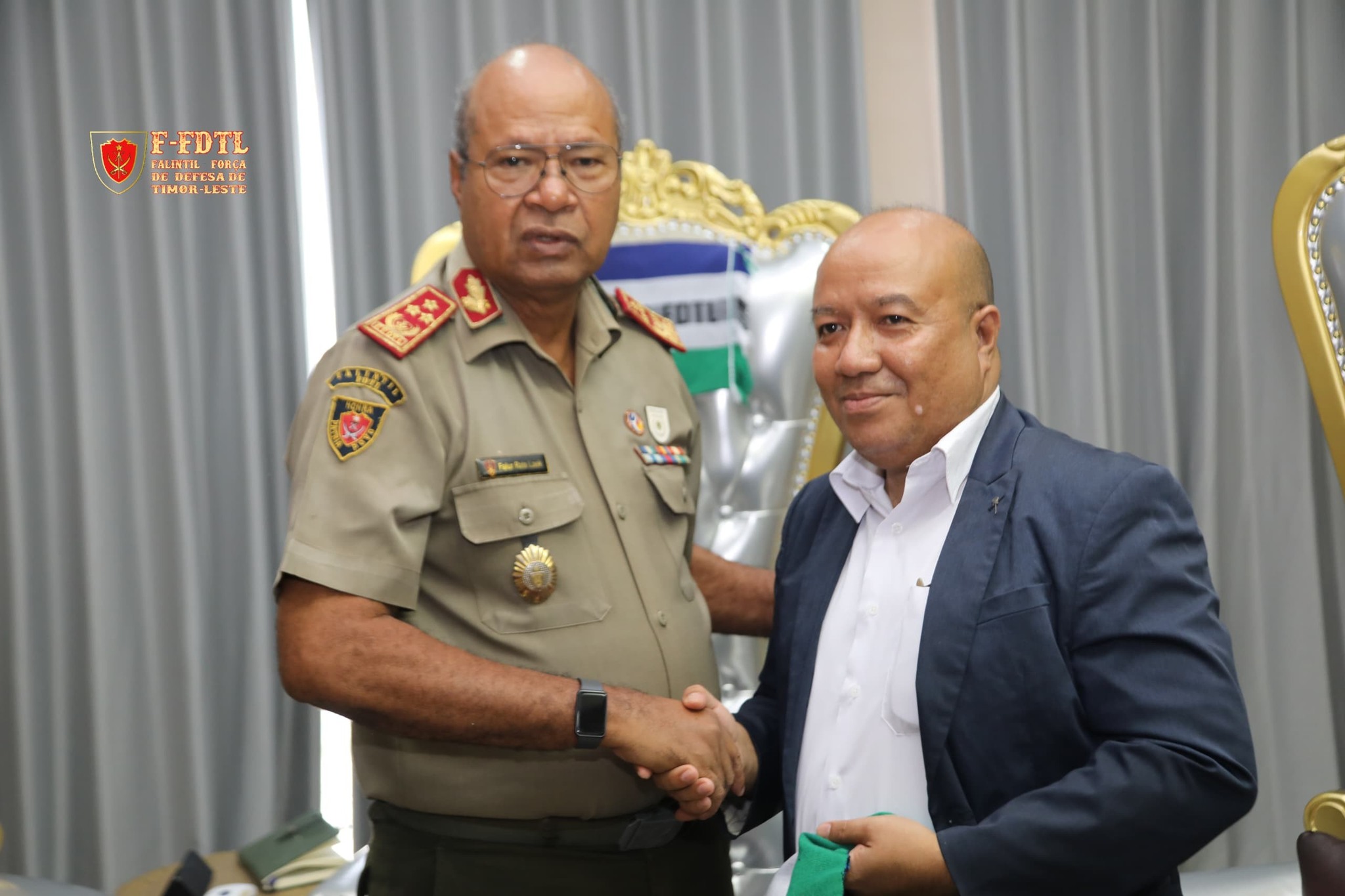 Xefe Estadu Maior Jenerál FALINTIL-Forsa Defeza Timor-Leste (F-FDTL) Tenente Jenerál Falur Rate Laek ohin halo enkontru ho konsellu dirativa husi Hospital Nasionál Guido Valadares (HNGV) Sr. Nuno Vital Soares, S. SPI.M.Psicanalis nu'udar Diretor Executivo e Prezidente HNGV ho delegasaun iha kna'ar fatin Kuartel Jenerál F-FDTL, Fatuhada, Dili.