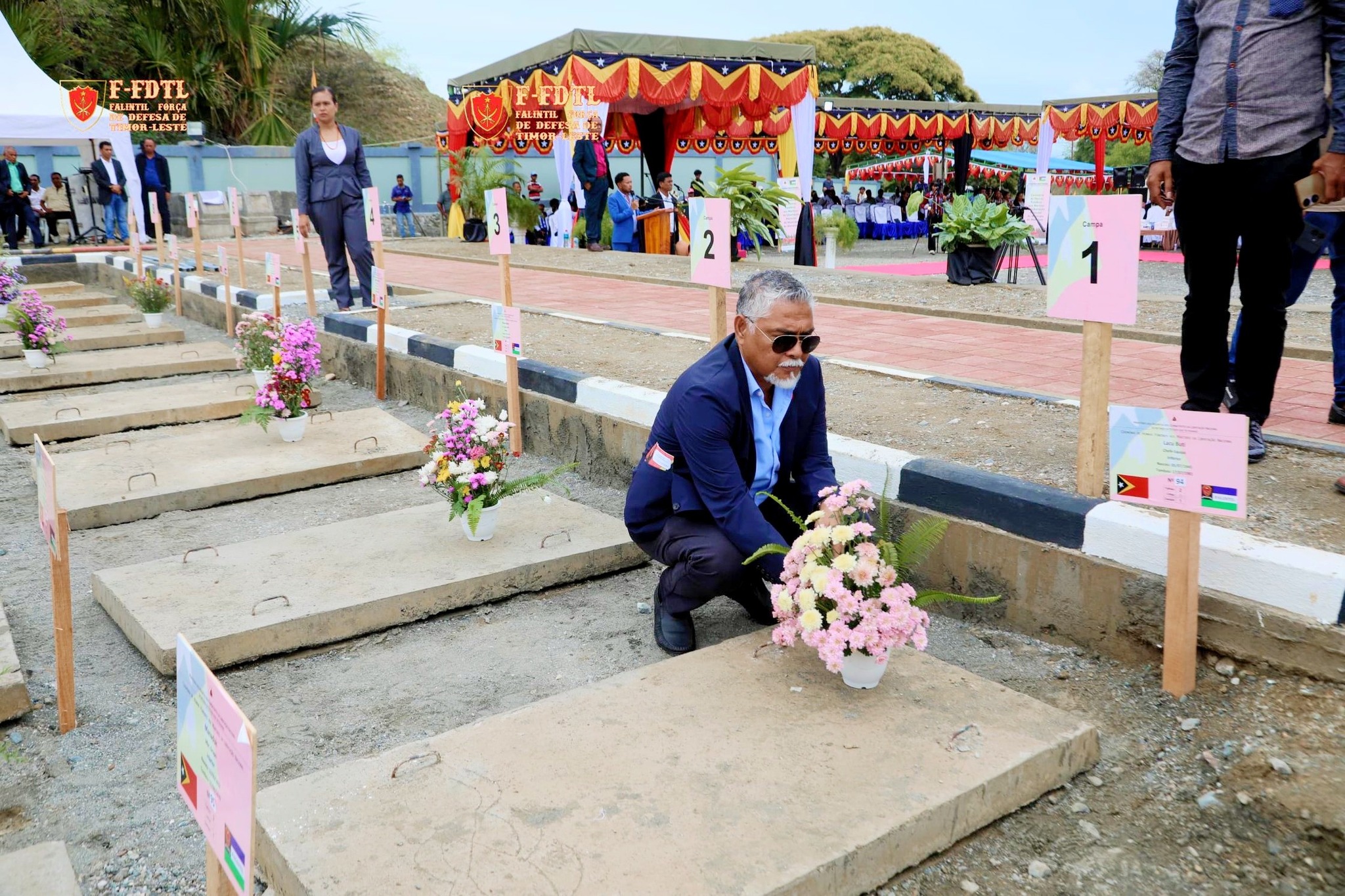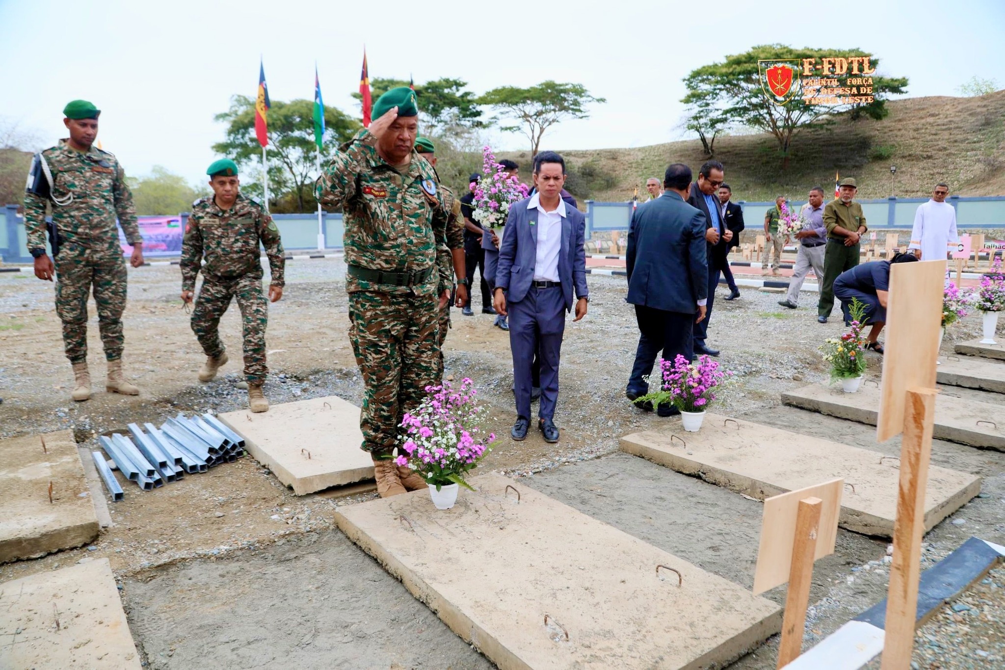 Xefe Estadu Maior Jenerál FALINTIL-Forsa Defeza Timor-Leste (F-FDTL) Tenente Jenerál Falur Rate Laek Partisipa iha serimónia halot Restu mortais mártires Libertasaun Nasionál iha Jardim dos Heróis Munisípiu Manatuto.