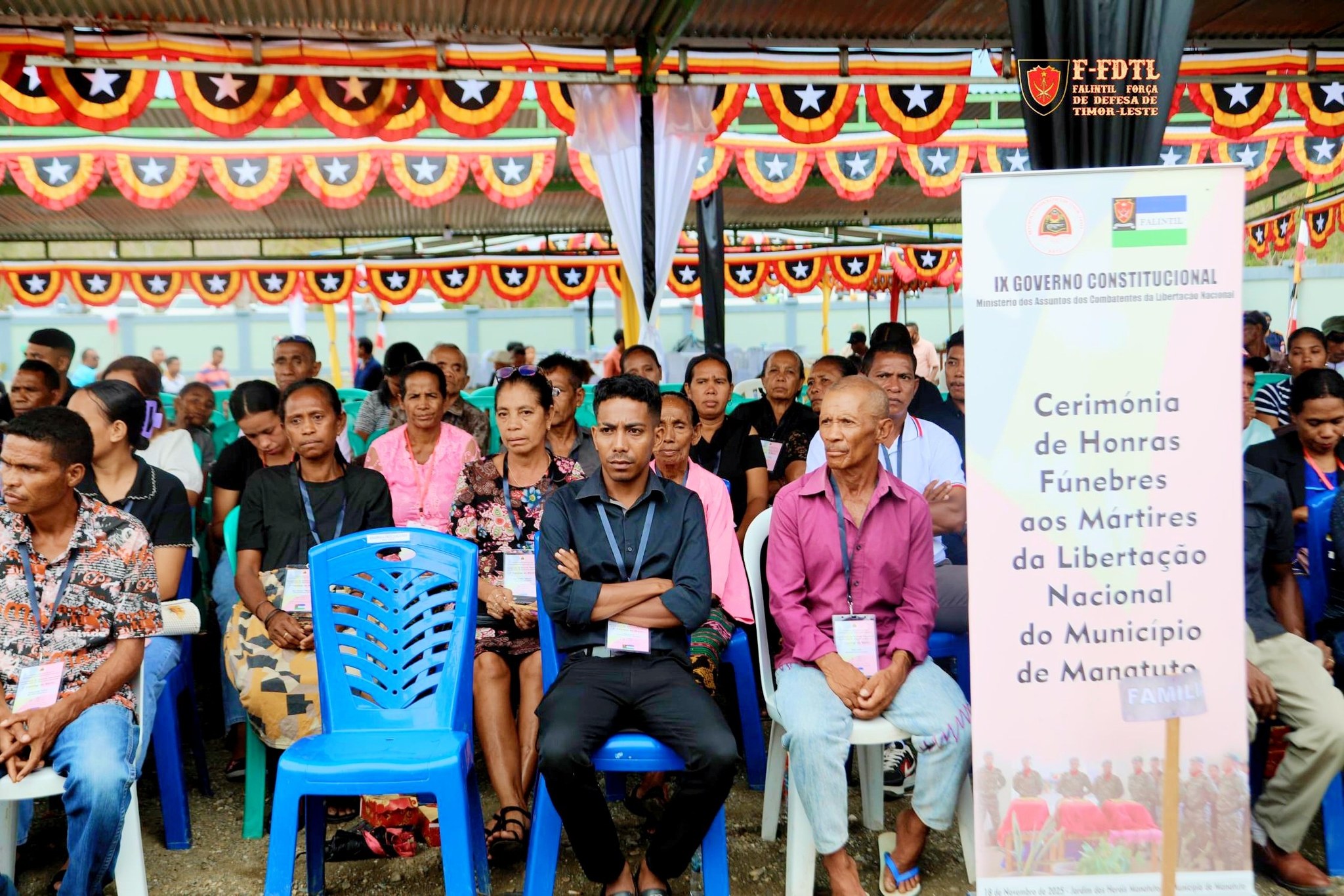Hola parte iha serimónia ne'e hanesan Ministro Assunto Kombatentes Libertasaun Nasionál Sr. Gil da Costa Monteiro 'Oan Soru', Sekeretariu Estadu Veteranus Sr. MERAK, Xefe Estadu Maior Jenerál F-FDTL Tenente Jenerál Falur Rate Laek, Tenente Jenerál (Ref) Lere Anan Timur, Prezidente CCLN, Prokurador Geral, Adjunta Xefe Casa Sivil, PAM Manatuto, Veteranus Munisípiu Manatuto, Administrador Postu sira, F-FDTL, PNTL, Diretor no Diretora sira, Autoridade Lokal sira, inklui mós Família Mártires Libertasaun Nasionál sira nomós komunidade Manatuto tomak.
